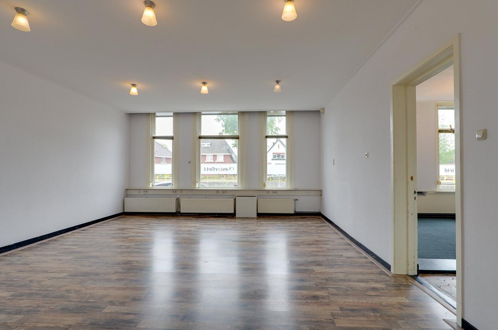 4 grote kantoorruimtes waarvan 1 de voormalige raadzaal van ruim 50 m² en toiletvoorziening.