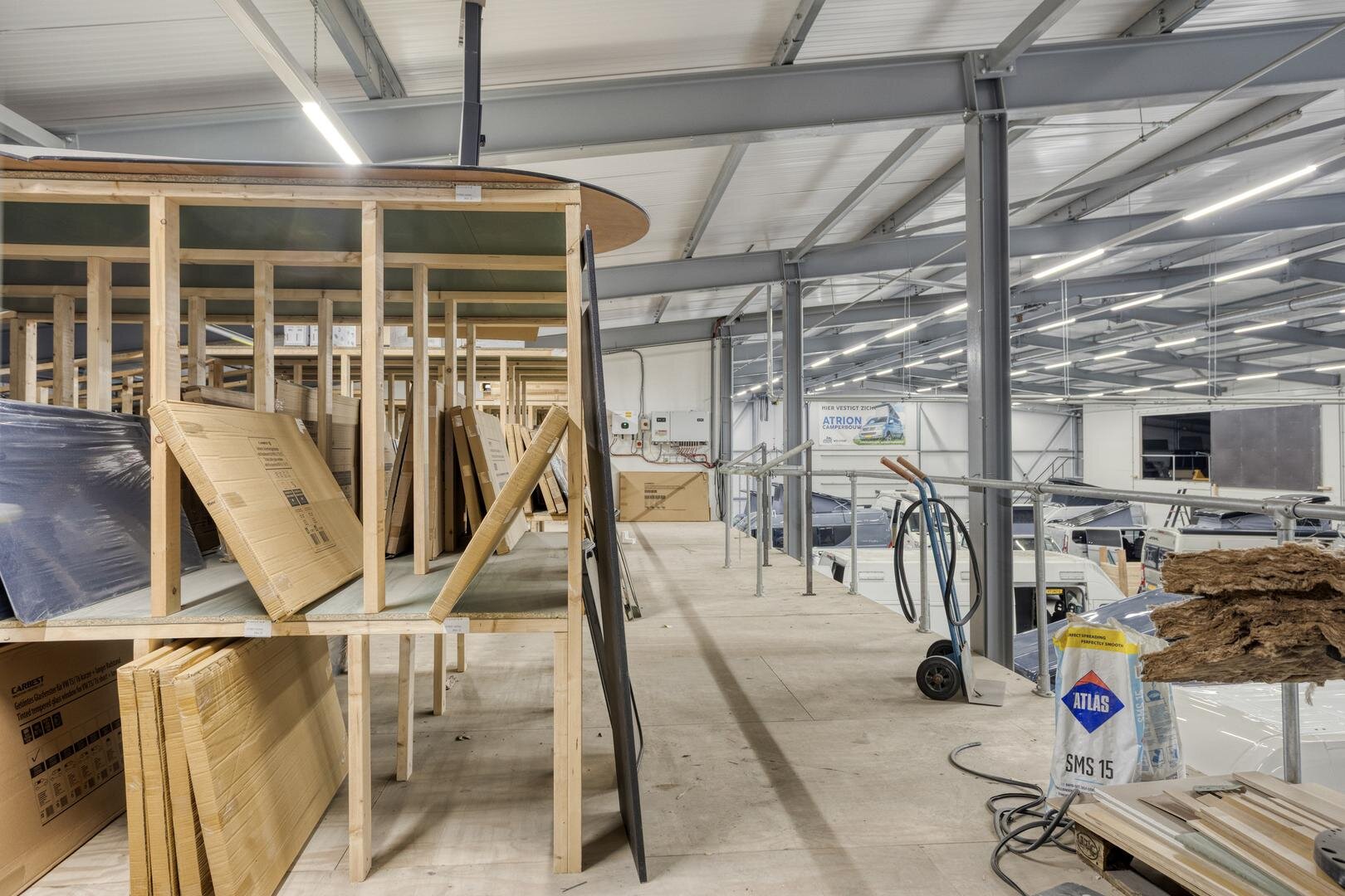 - zonnepanelen (circa 140 stuks op het grote bedrijfspand, circa 100 stuks op het kleine bedrijfspand)