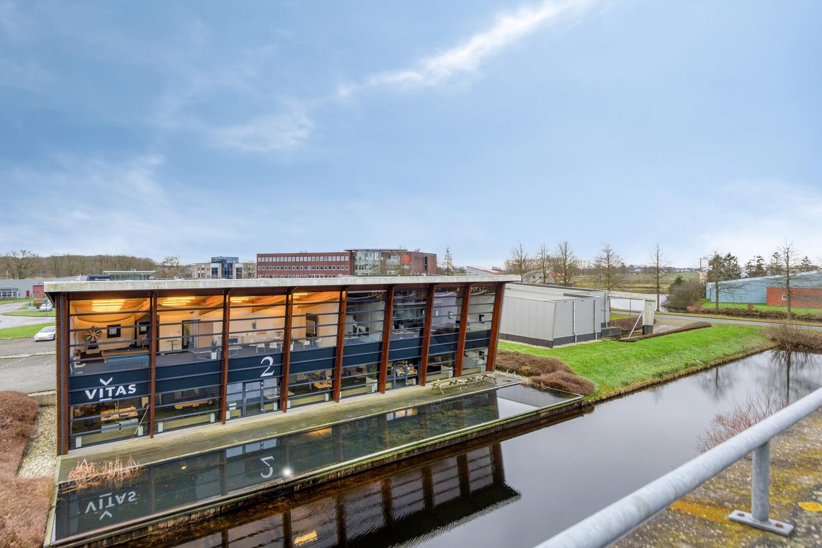 De villa is gelegen op een hoogwaardig en ruim opgezet bedrijvenpark in de nabijheid van knooppunt Joure. De locatie is gesitueerd te midden van water- en groenpartijen en wordt omringd door kantoorvilla’s. Binnen enkele autominuten zijn de op- en afritten van zowel de A6 als de A7 te bereiken.