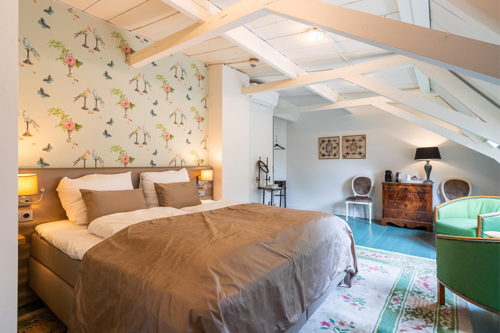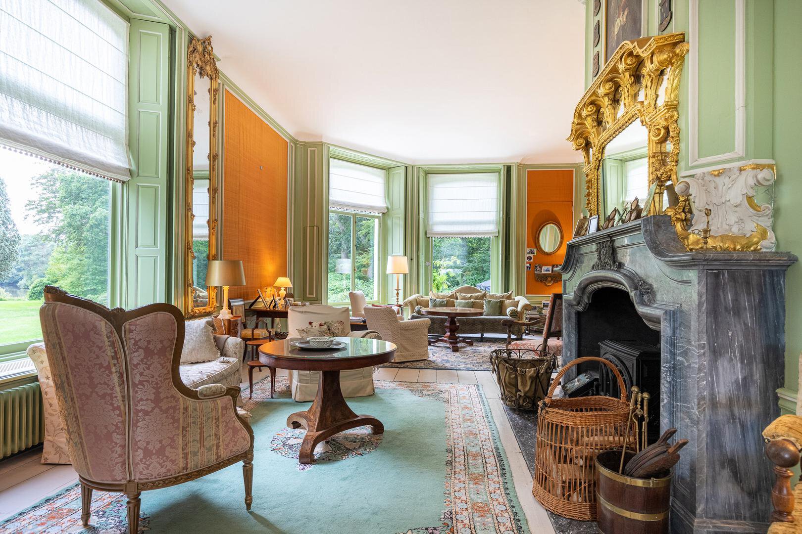 In de afgelopen jaren is het huis liefdevol gerestaureerd en gemoderniseerd. Oud en nieuw gaan moeiteloos samen en veel van de verduurzaming zit onder de motorkap. De ambiance is authentiek en neemt ons mee naar de glorieuze 19e eeuw, waar romantiek troef was. Dit buitenhuis is doorspekt met fraaie details zoals gouden acanthusbladeren rond de trapleuning, een marmeren bassin met een dolfijn, fraaie haardpartijen, kleurrijke damasten wandbespanning en krullerige sierlijsten.