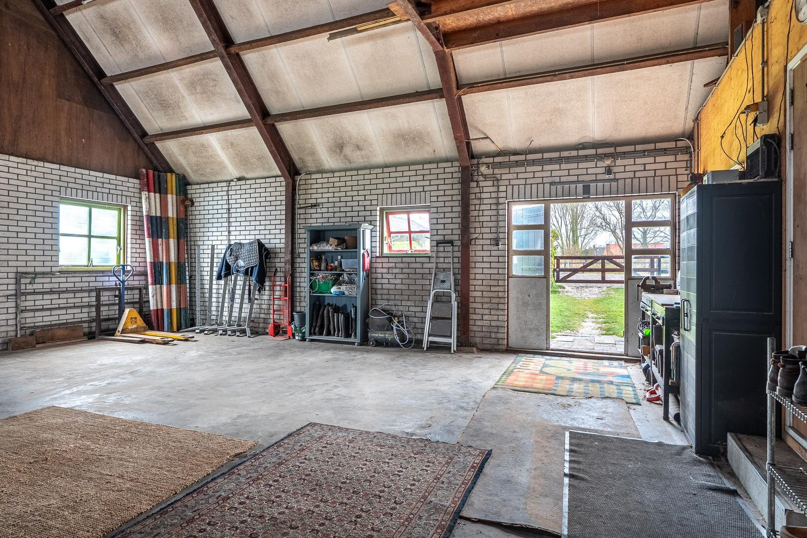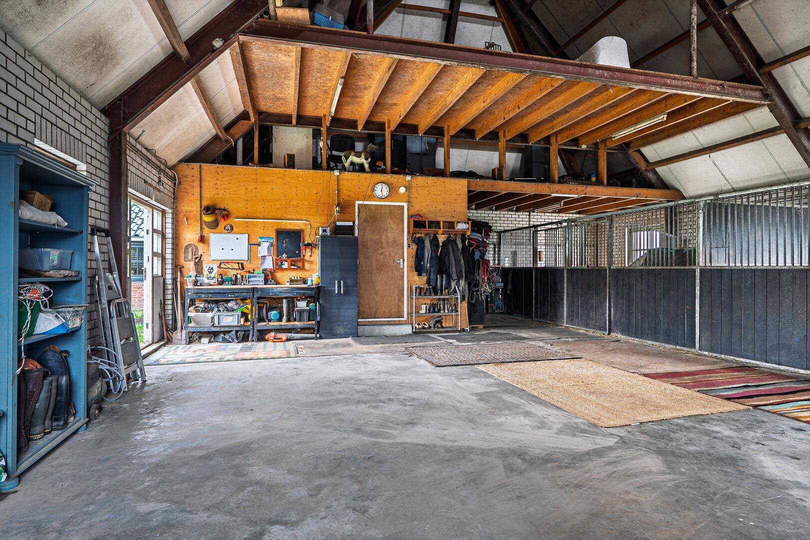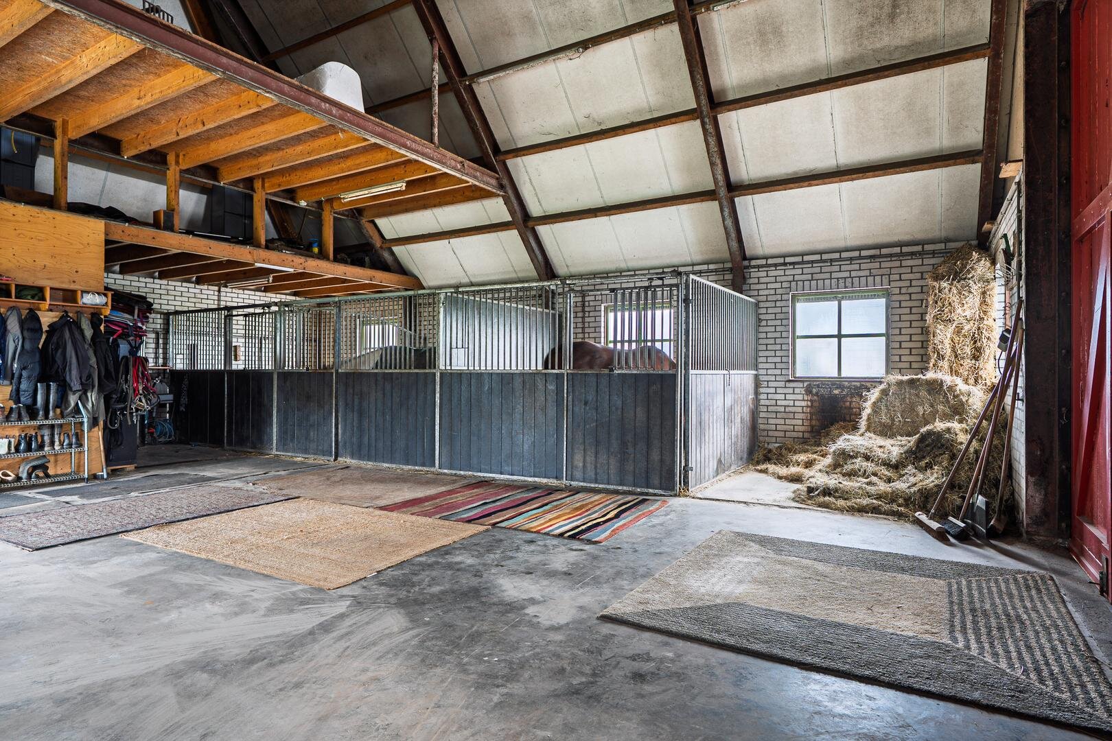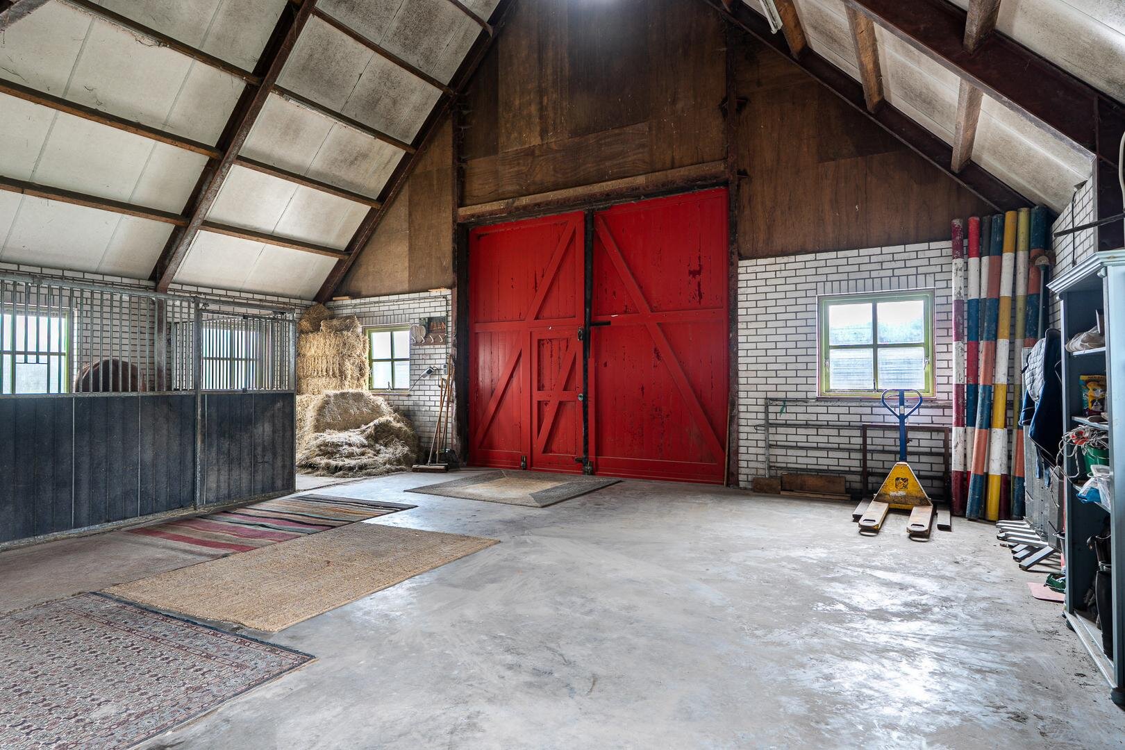 - Het grootste pluspunt van dit object is de grote geïsoleerde schuur. Deze is te betreden met zwaar materiaal door de hoge, brede staldeuren en een betonvloer bestand tegen zware belasting. Verder zijn er ruime opslagmogelijkheden en paardenboxen voor circa drie paarden, met zelfs optie voor uitbreiding. Krachtstroom, drinkbakken en kranen zijn aanwezig. Daarnaast is er een hooizolder en een multifunctionele ruimte, momenteel in gebruik als kantoor.