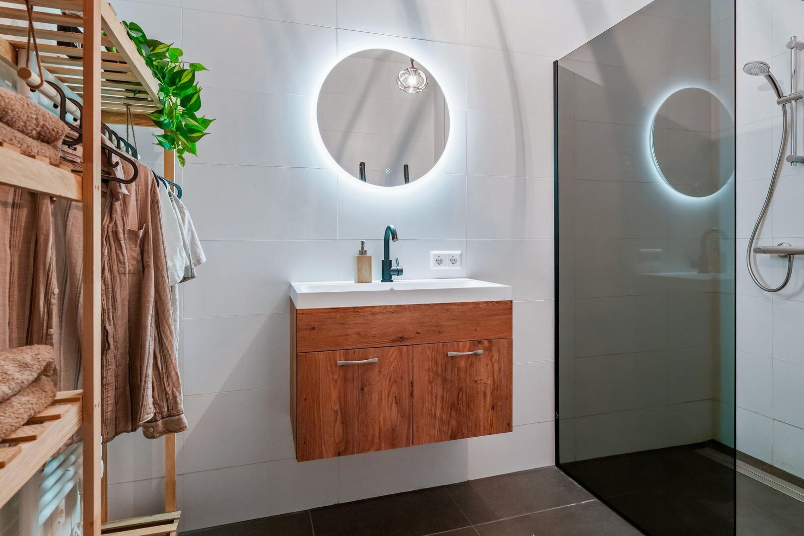 Op de verdieping start je op de overloop, die toegang geeft tot alle vertrekken. Aan de ene zijde vind je een kamer die perfect dienstdoet als kleding-, werk- of logeerkamer. De master bedroom is royaal opgezet (16 m2) en biedt voldoende ruimte voor een royaal tweepersoonsbed en kasten. Centraal op de verdieping bevindt zich de badkamer, uitgerust met een inloopdouche, wastafelmeubel en toilet.