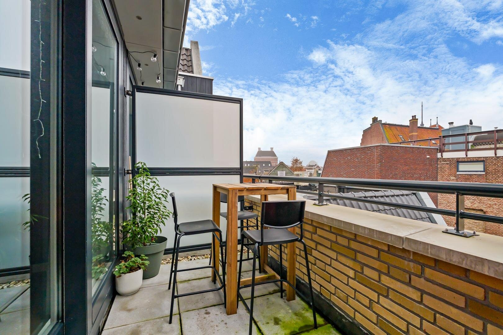 Je komt binnen via de entree en stapt direct de keuken in, een prettige leefruimte met volop ruimte om te koken en samen te eten. De luxe keuken is voorzien van diverse moderne inbouwapparatuur. Aan de rechterzijde is het balkon, een fijne buitenruimte waar je uitkijkt over de binnenstad en heerlijk kunt ontspannen, terwijl je aan de linkerzijde doorloopt richting de woonkamer. Deze is aan de voorzijde gesitueerd en voorzien van dakramen met uitzicht op de Sint Bonifatiuskerk. De keuken en woonkamer zijn warm en stijlvol ingericht met een mooie visgraatvloer. De praktische berging biedt ruimte aan de cv-ketel en hier is plaats voor de wasmachine en droger. Vanuit de hal heb je toegang tot een separaat toilet en de trap naar de verdieping.