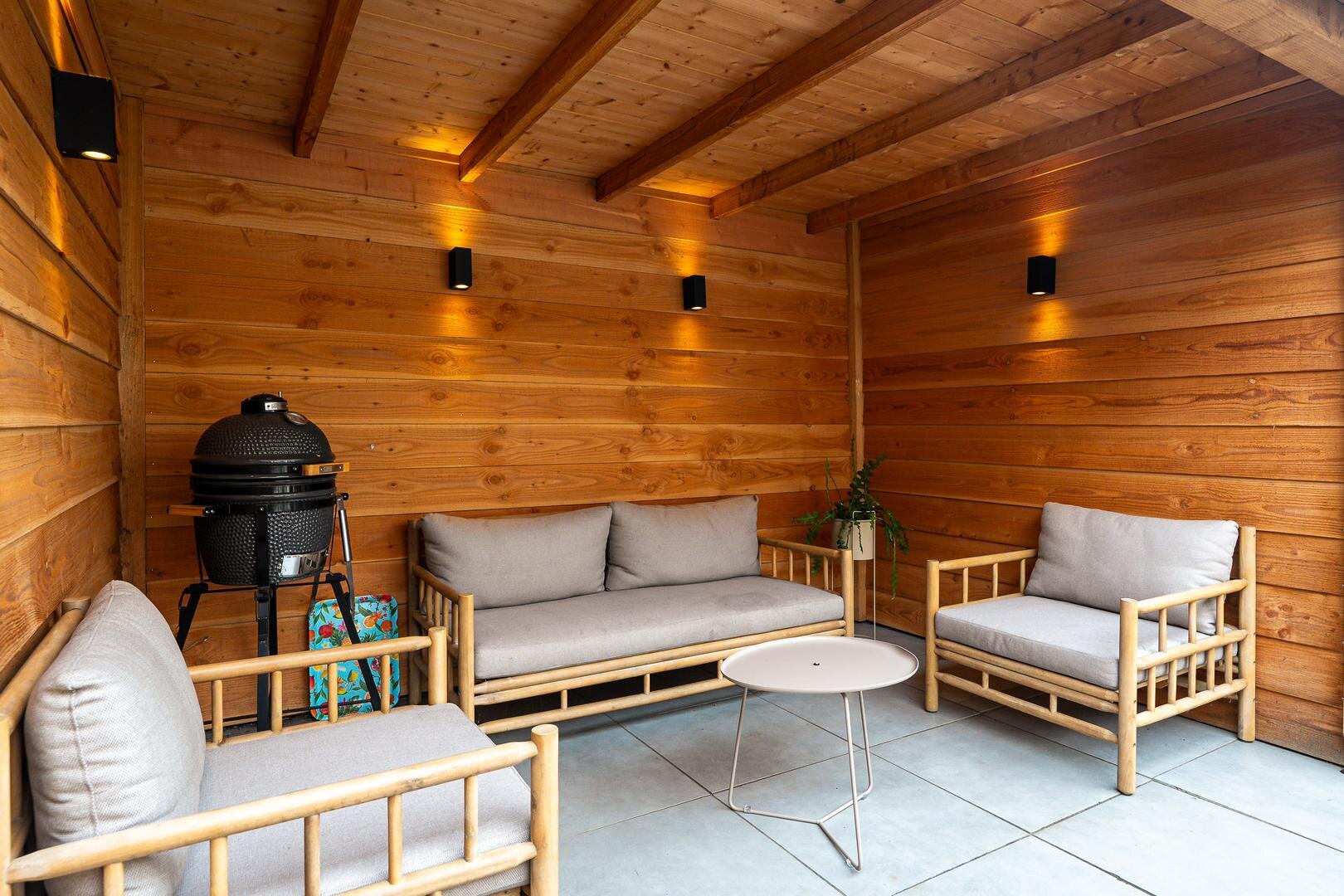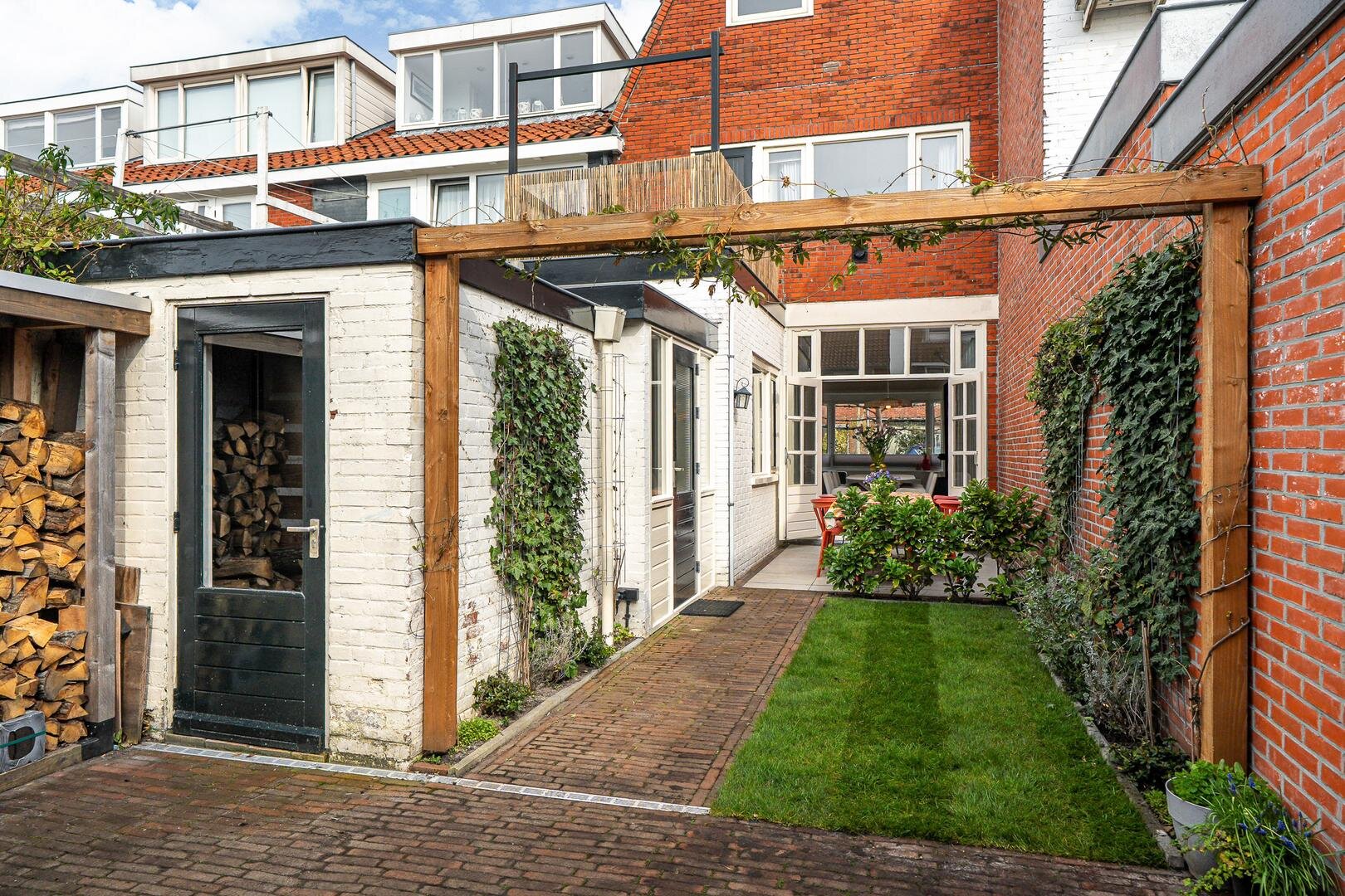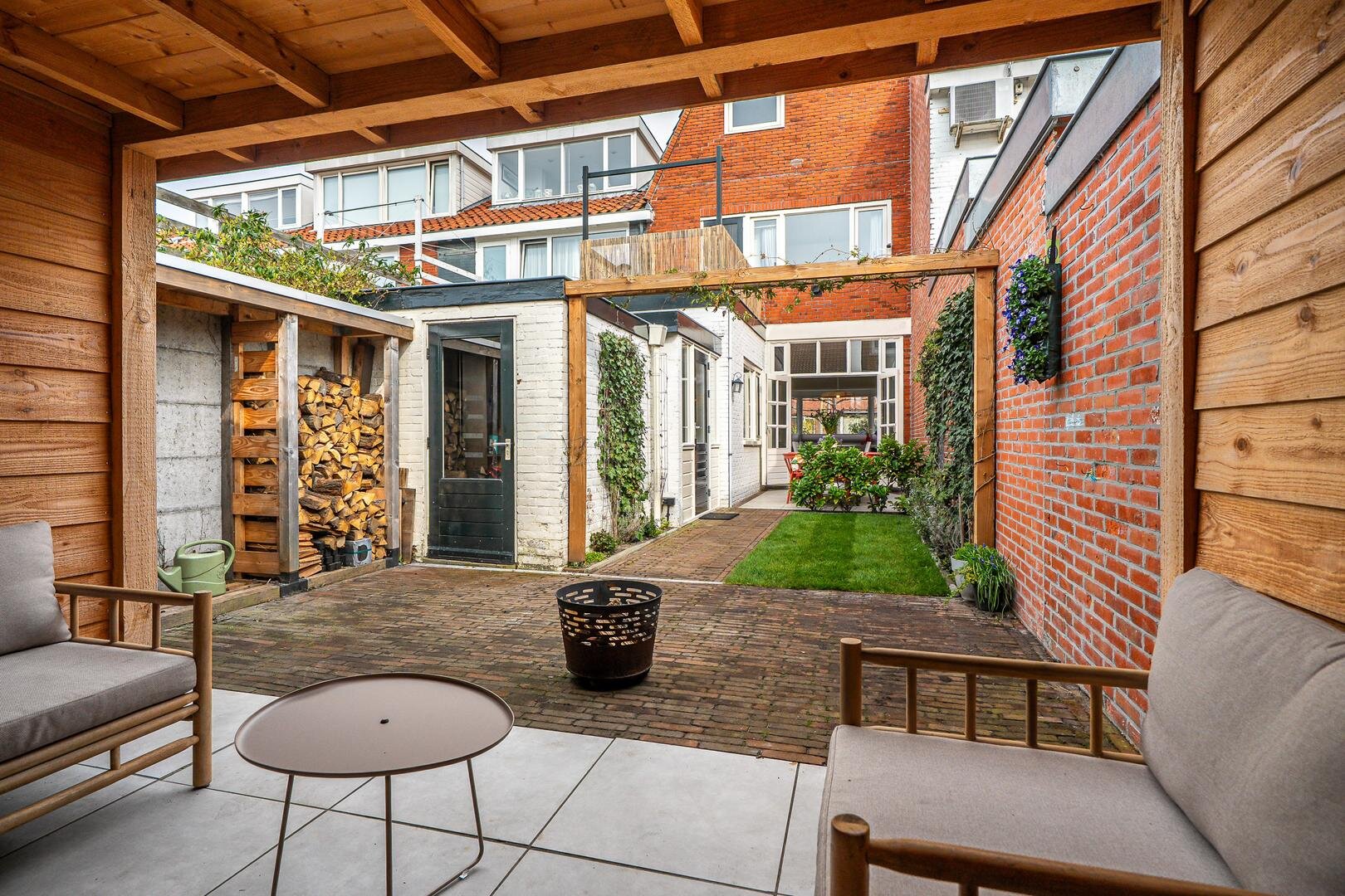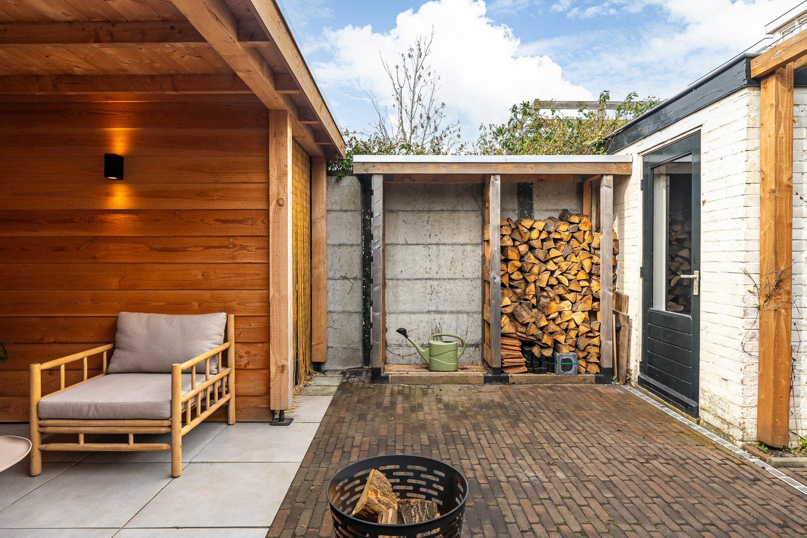 De woning beschikt over een praktische indeling en een fijne lichtinval. De woonkamer aan de voorzijde is voorzien van een houthaard, hoog balkenplafond en een erker, wat zorgt voor extra ruimte en sfeer. Aan de achterzijde geven openslaande deuren direct toegang tot de tuin welke gelegen is op het zuiden. De tuin is gelegen op het zuiden en is voorzien van een nieuwe overkapping. De half open keuken is voorzien van inbouwapparatuur en sluit aan op de royale bijkeuken met wasmachineopstelling en stookruimte.