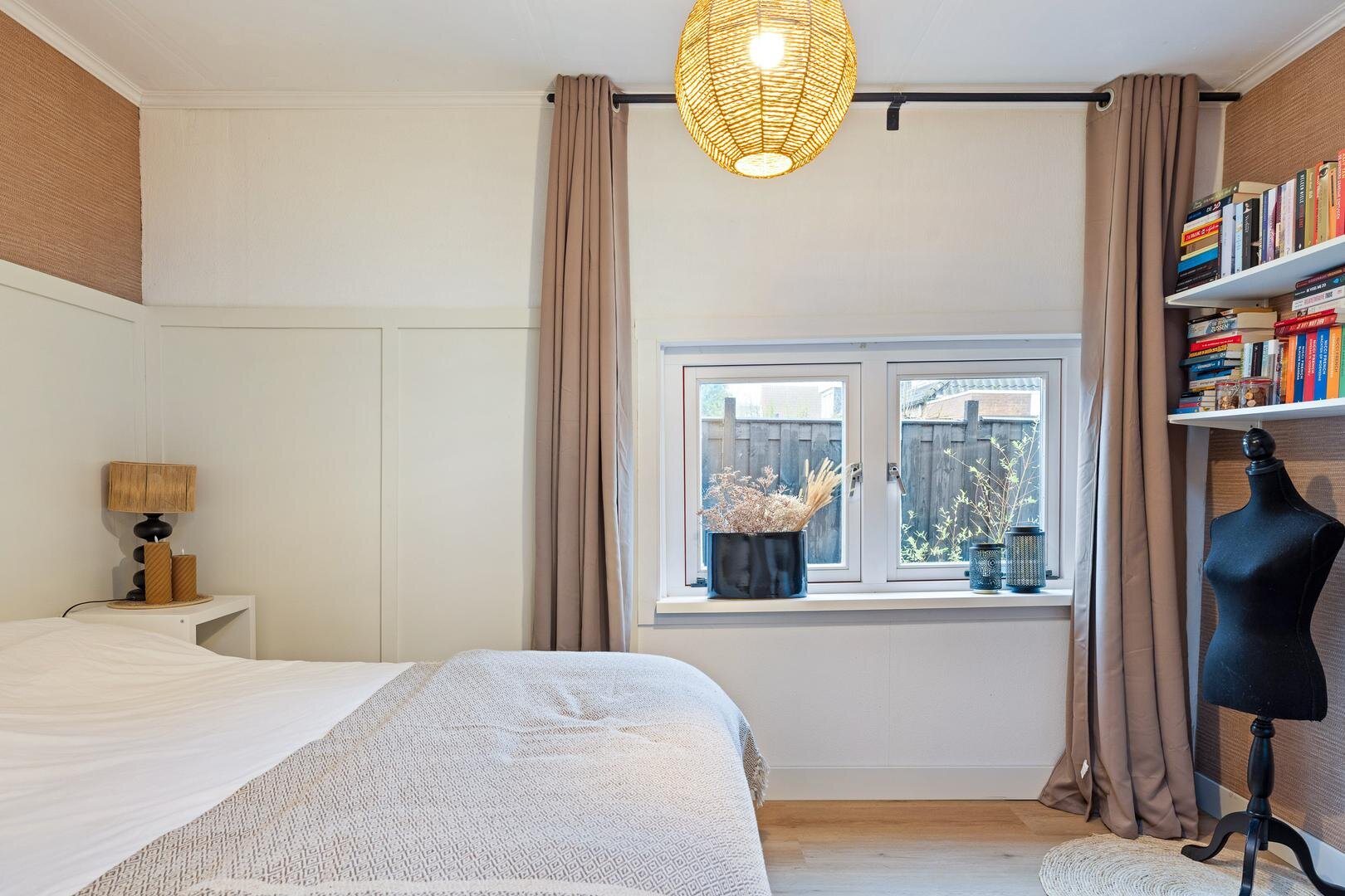 Op de verdieping vind je twee ruime slaapkamers, beide voorzien van dakkapellen voor extra licht. De slaapkamer aan de achterzijde heeft toegang tot het platte dak, dat kan dienen als droogplatform of compact dakterras. De zonnepanelen liggen op de rest van het platte dak en zijn gunstig op het zuiden gericht.