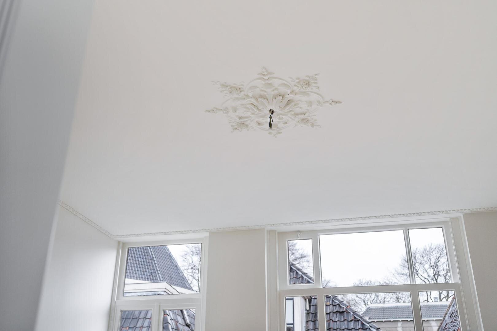 Het monument zelf heeft zijn allure volledig teruggekregen. De achttiende eeuwse gepleisterde gevel met warme gele tint is zorgvuldig gerestaureerd, met behoud van alle originele details. Binnen word je verrast door een prachtig stucplafond met ornamenten, een elegante herinnering aan het rijke verleden van dit pand.