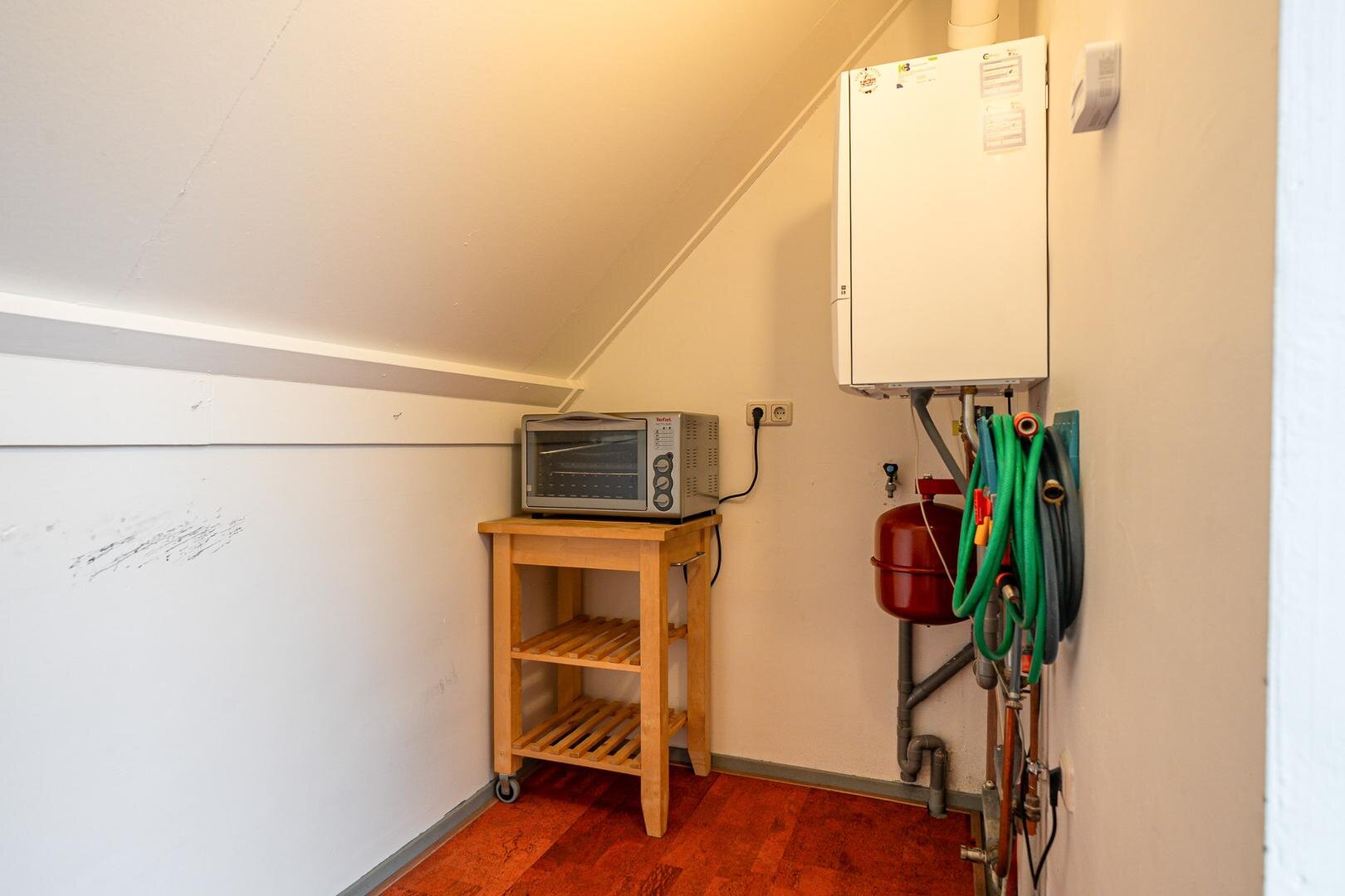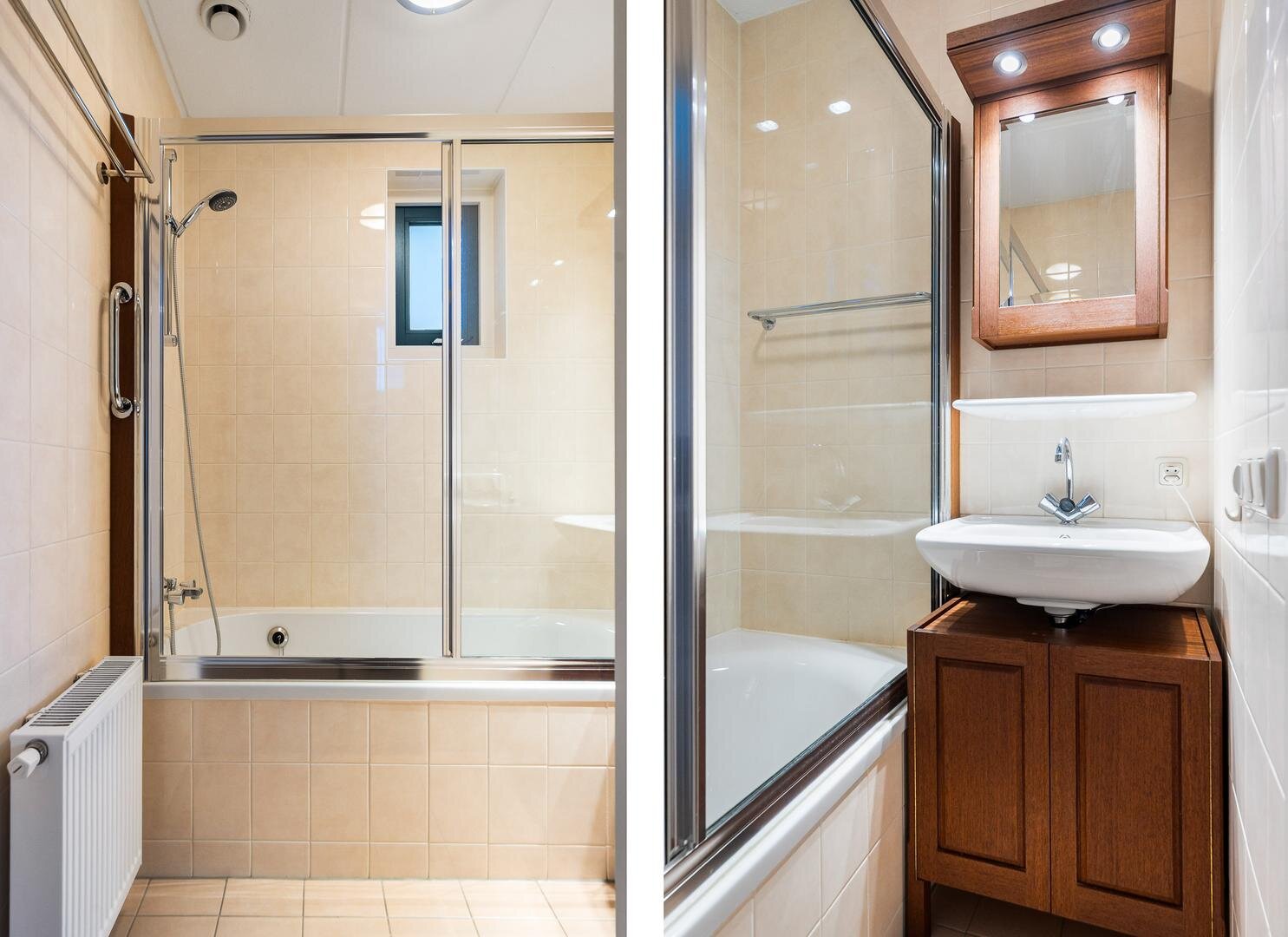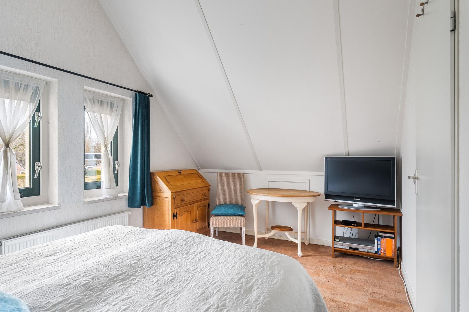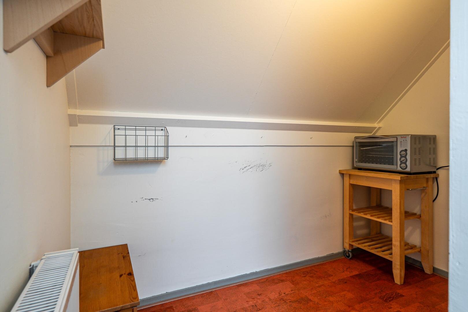 Via de vaste trap bereik je de overloop op de verdieping. Hier bevinden zich twee slaapkamers en een extra kleedkamer. Dankzij de dakramen komt er prettig daglicht binnen en zijn de ruimtes goed te ventileren.