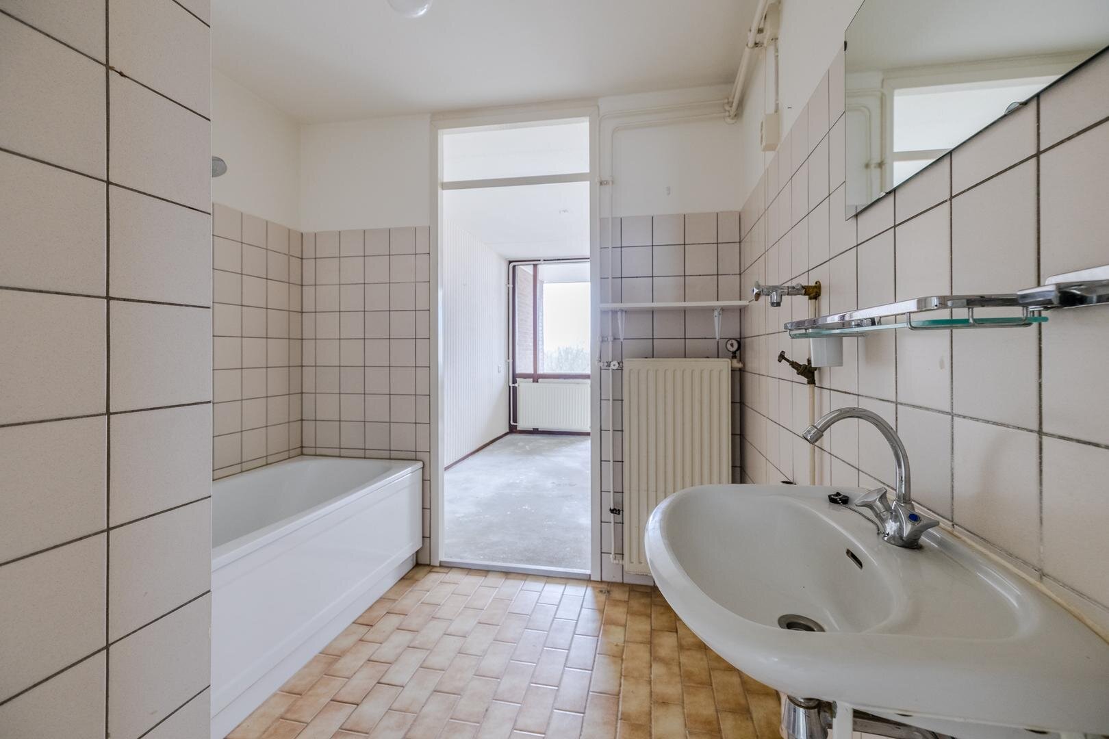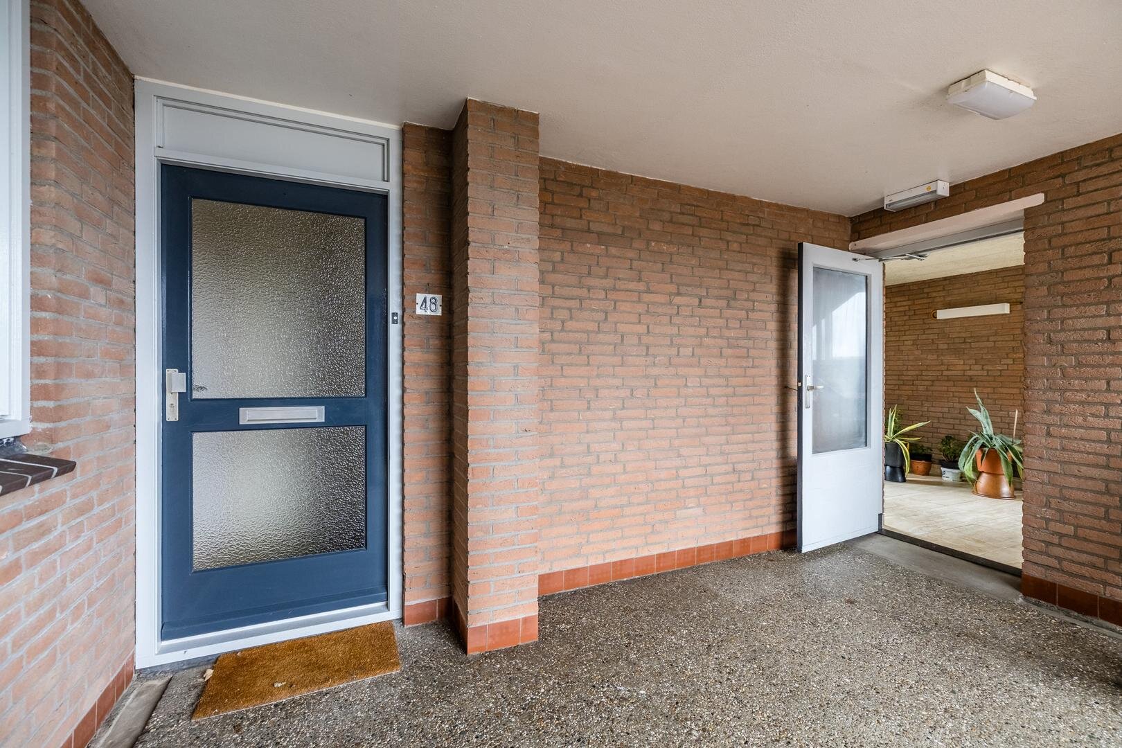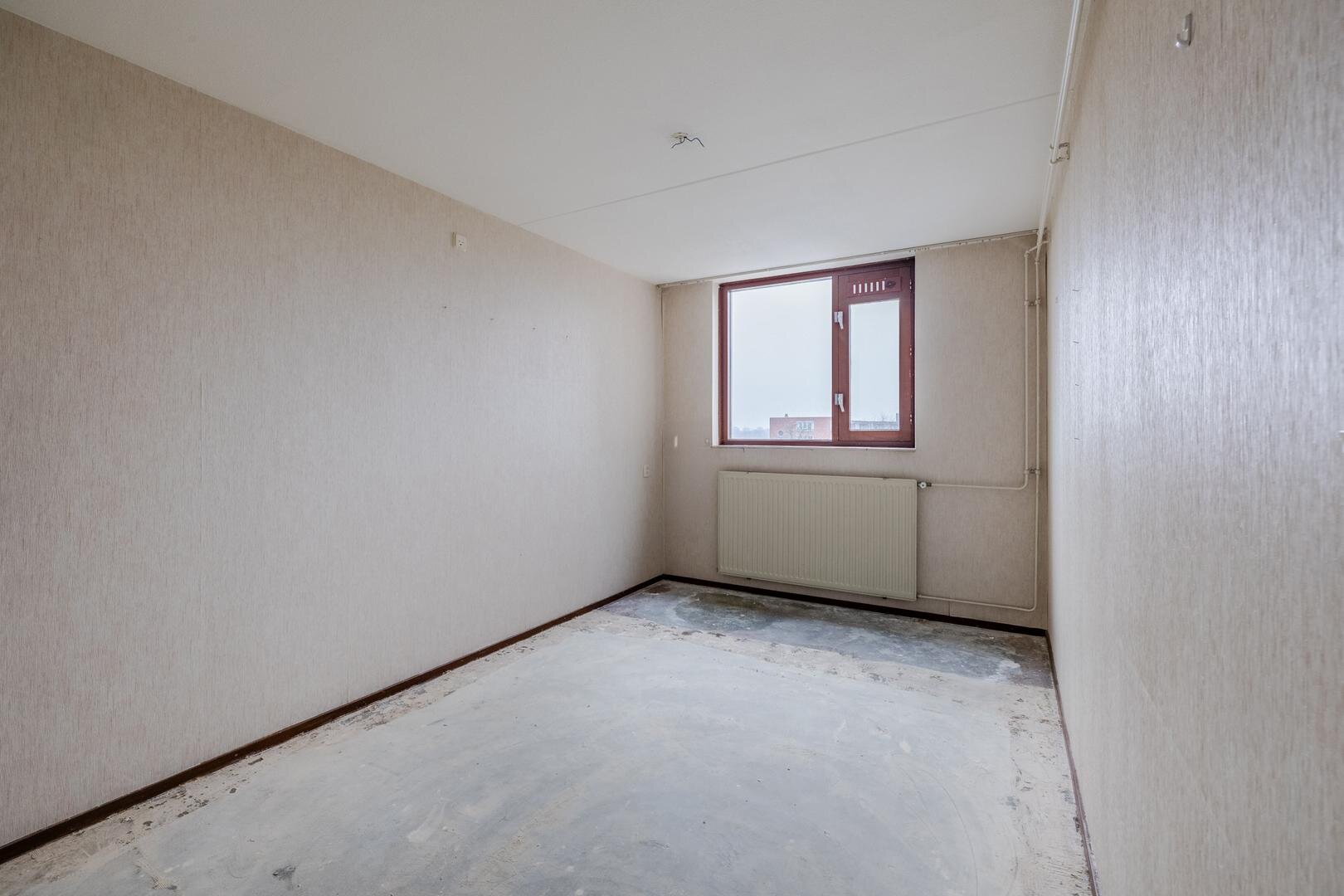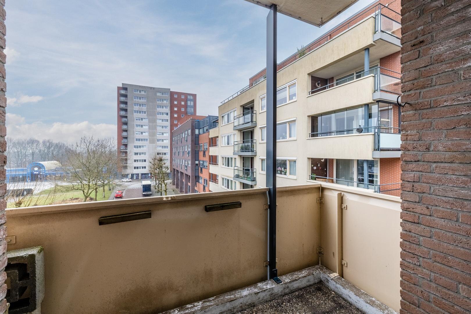 Dit appartement is gelegen op de vierde verdieping. Via de centrale entree kom je binnen in de hal van het appartement. Hier bevinden zich een apart toilet, een handige vaste kast en de toegang tot de gesloten keuken. De keuken is praktisch ingericht met een rechte opstelling met inbouwapparatuur. Het appartement beschikt over twee slaapkamers, waardoor er ruimte is voor zowel een hoofdslaapkamer als een logeer- of werkkamer. De voorste slaapkamer heeft 2 deuren naar de aangrenzende woonkamer zodat deze eventueel ook als bijv. eetkamer gebruikt kan worden. De badkamer is voorzien van een ligbad waar je ook ik kan douchen, een wastafel en een aansluiting voor de wasmachine.