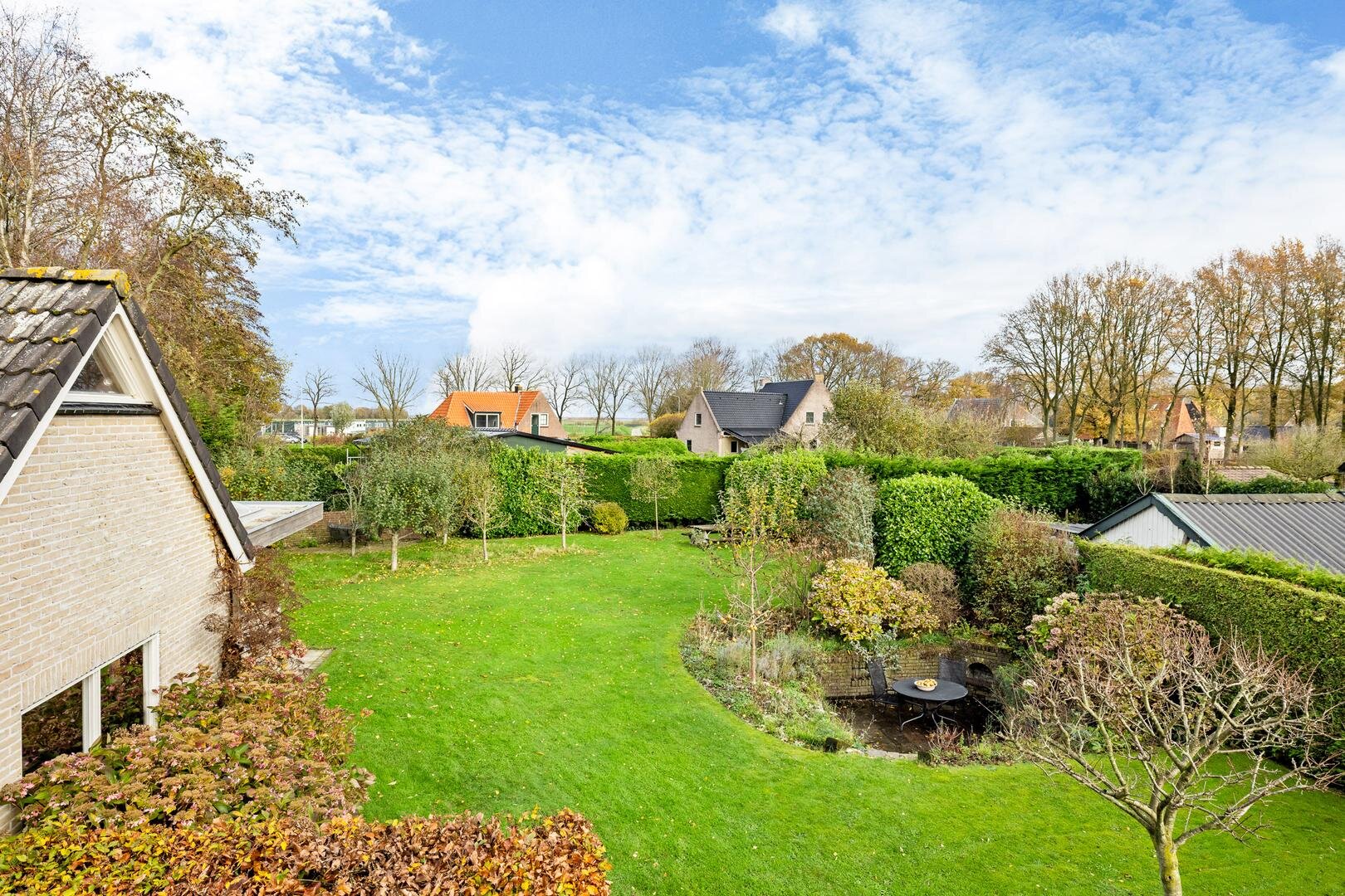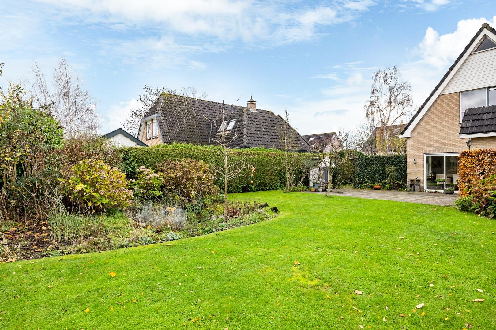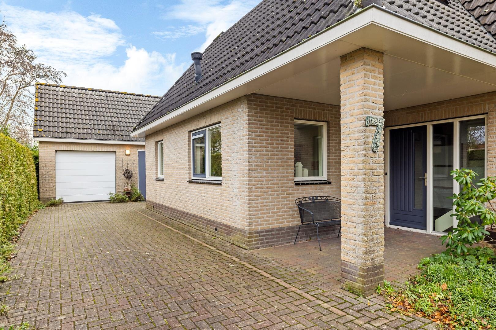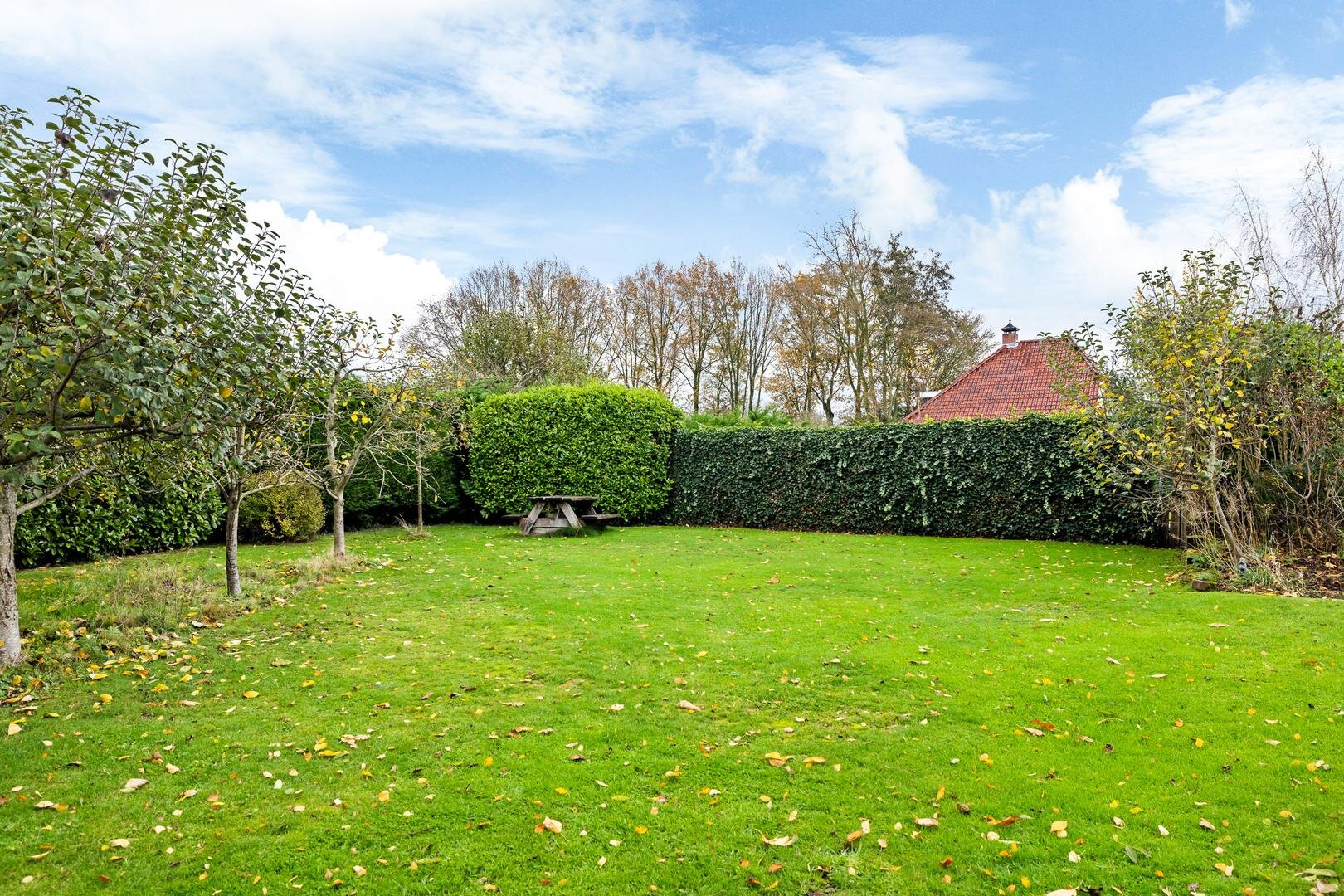 Dan de vrijstaande garage. Deze is voorzien van een betonnen vloer, elektrische deur en een vliering die via een vlizotrap bereikbaar is. Perfect voor de auto, hobby’s of extra opslag.