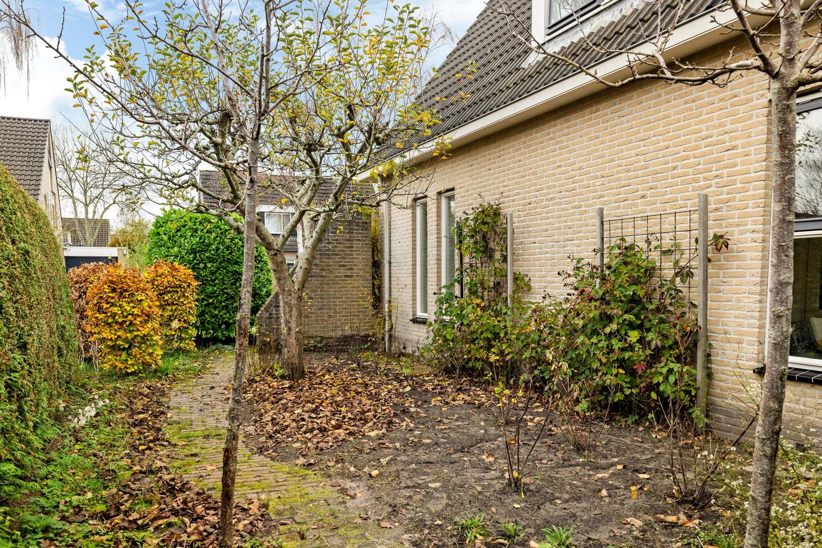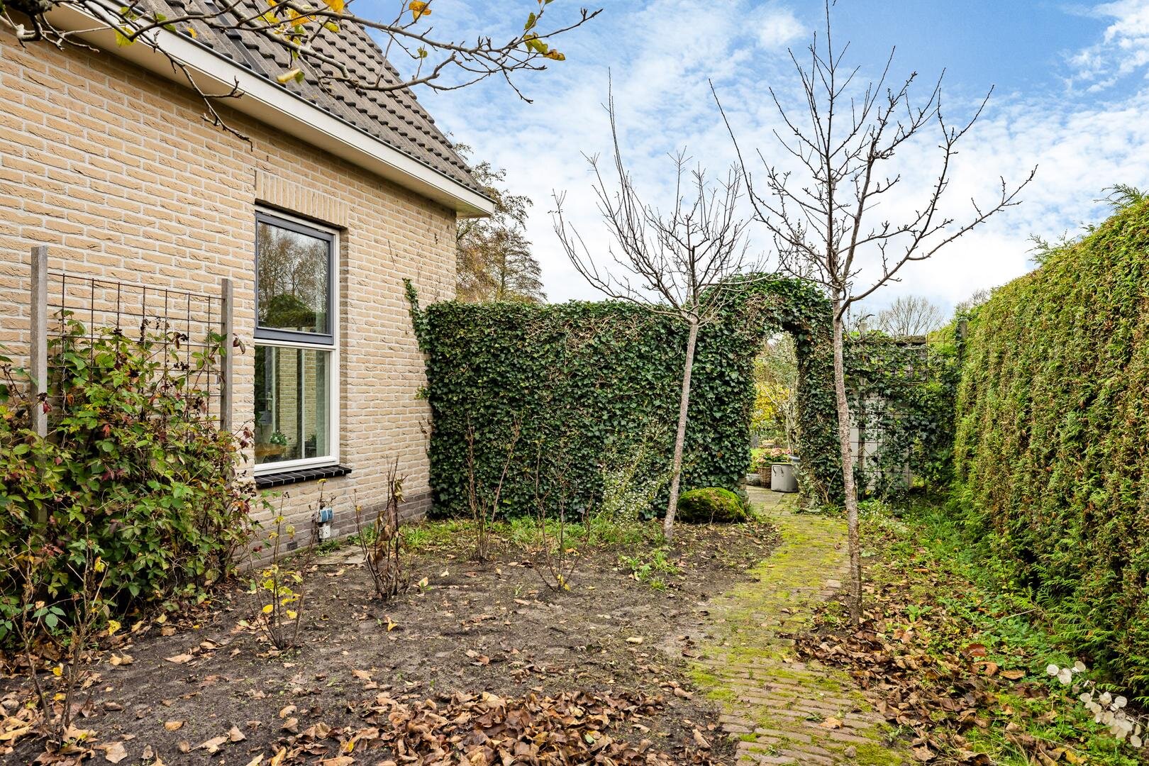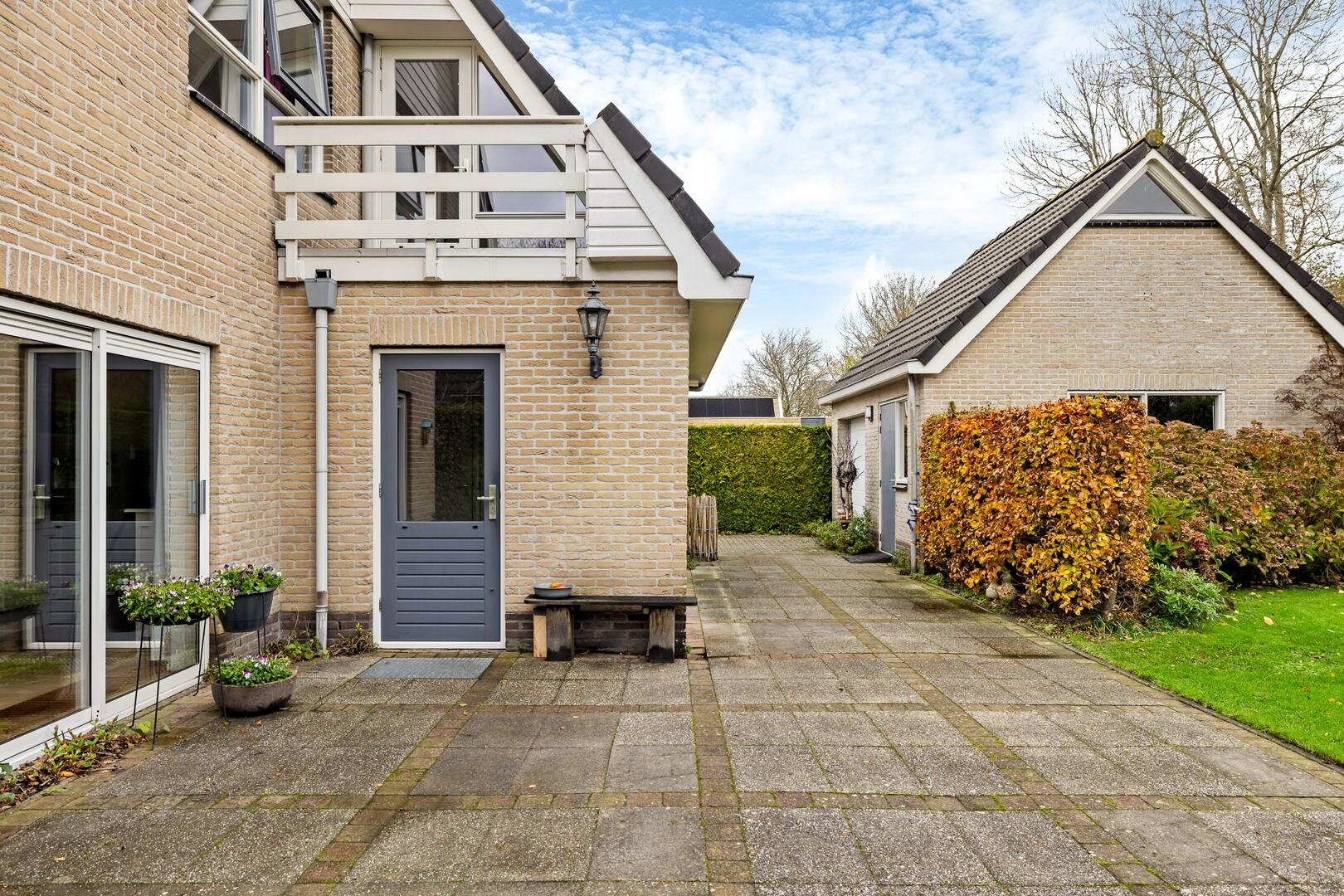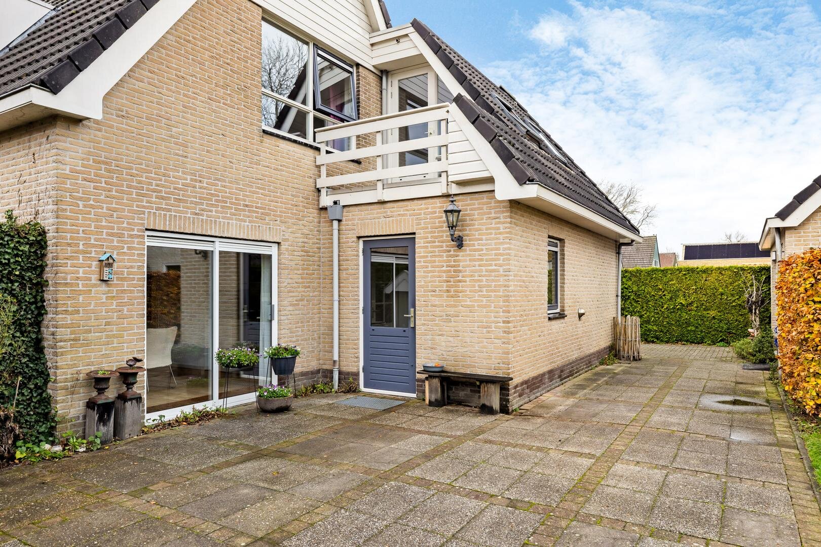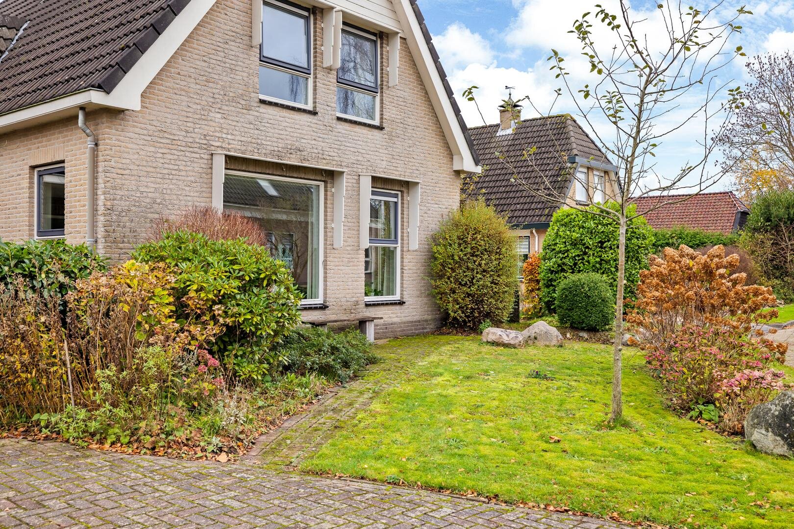Dan de vrijstaande garage. Deze is voorzien van een betonnen vloer, elektrische deur en een vliering die via een vlizotrap bereikbaar is. Perfect voor de auto, hobby’s of extra opslag.