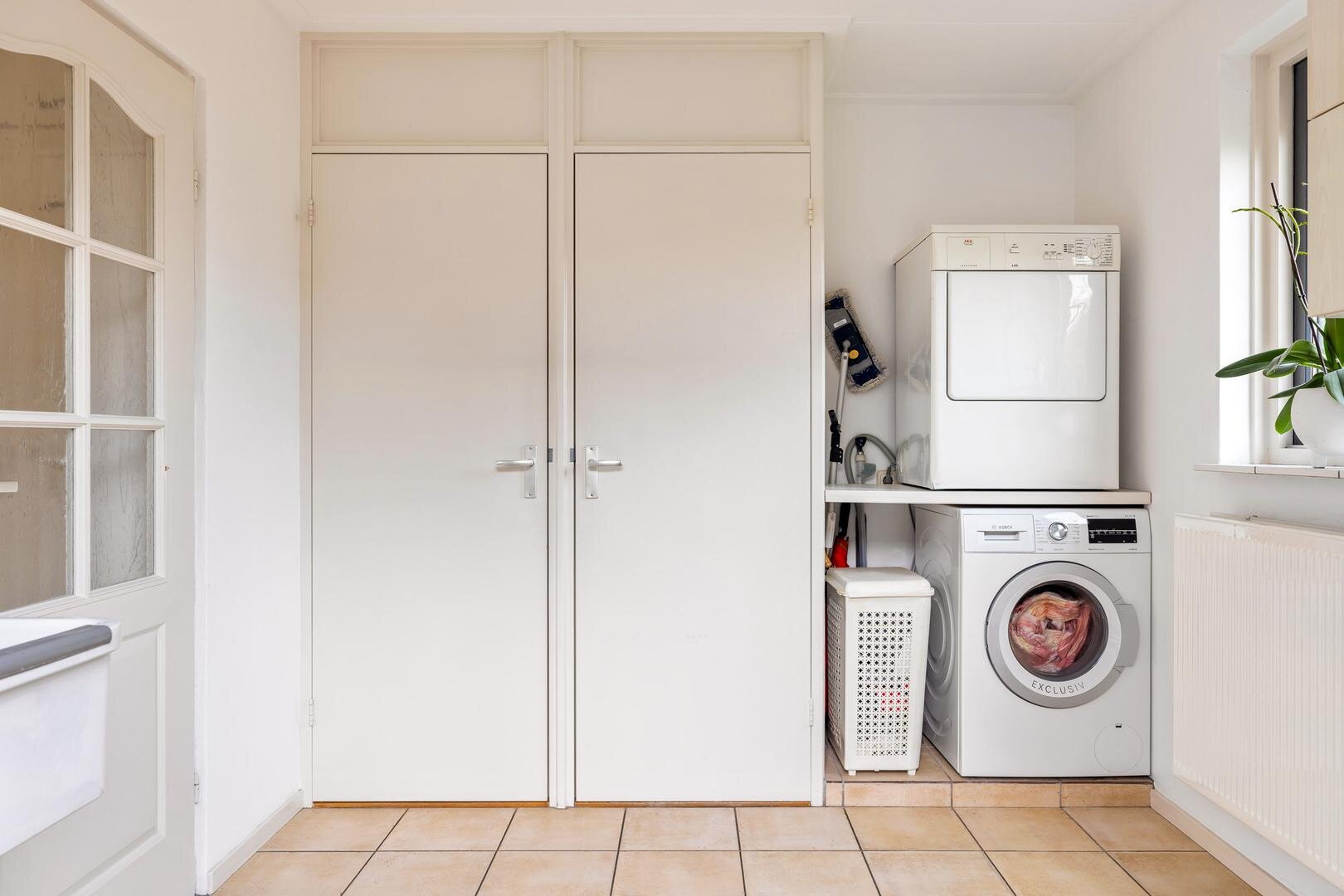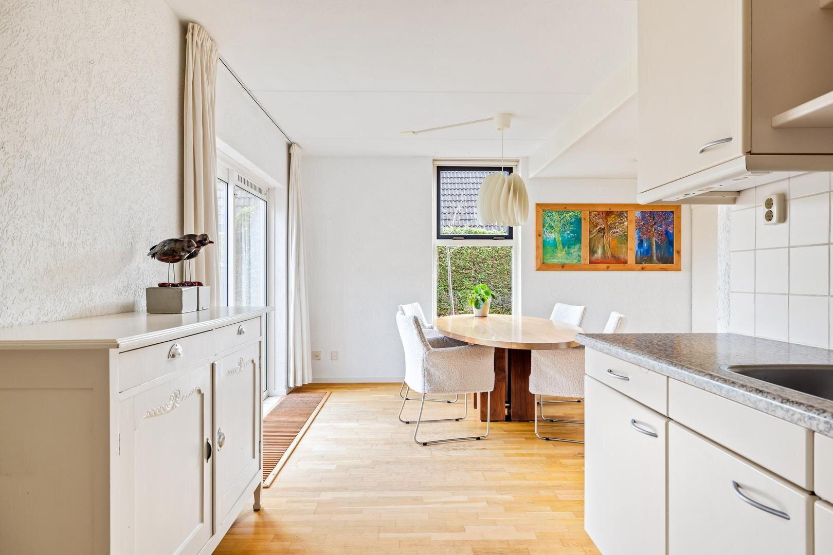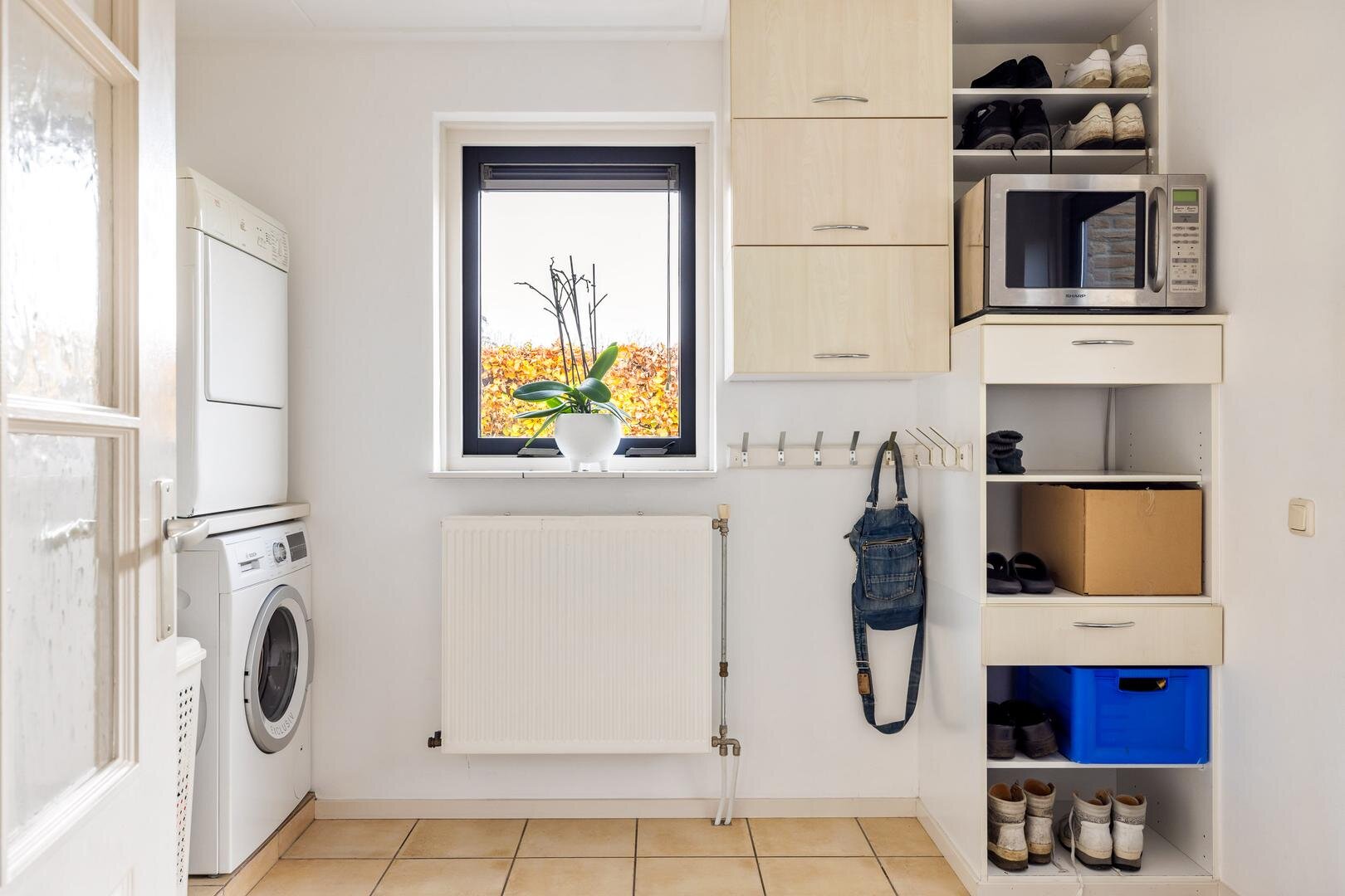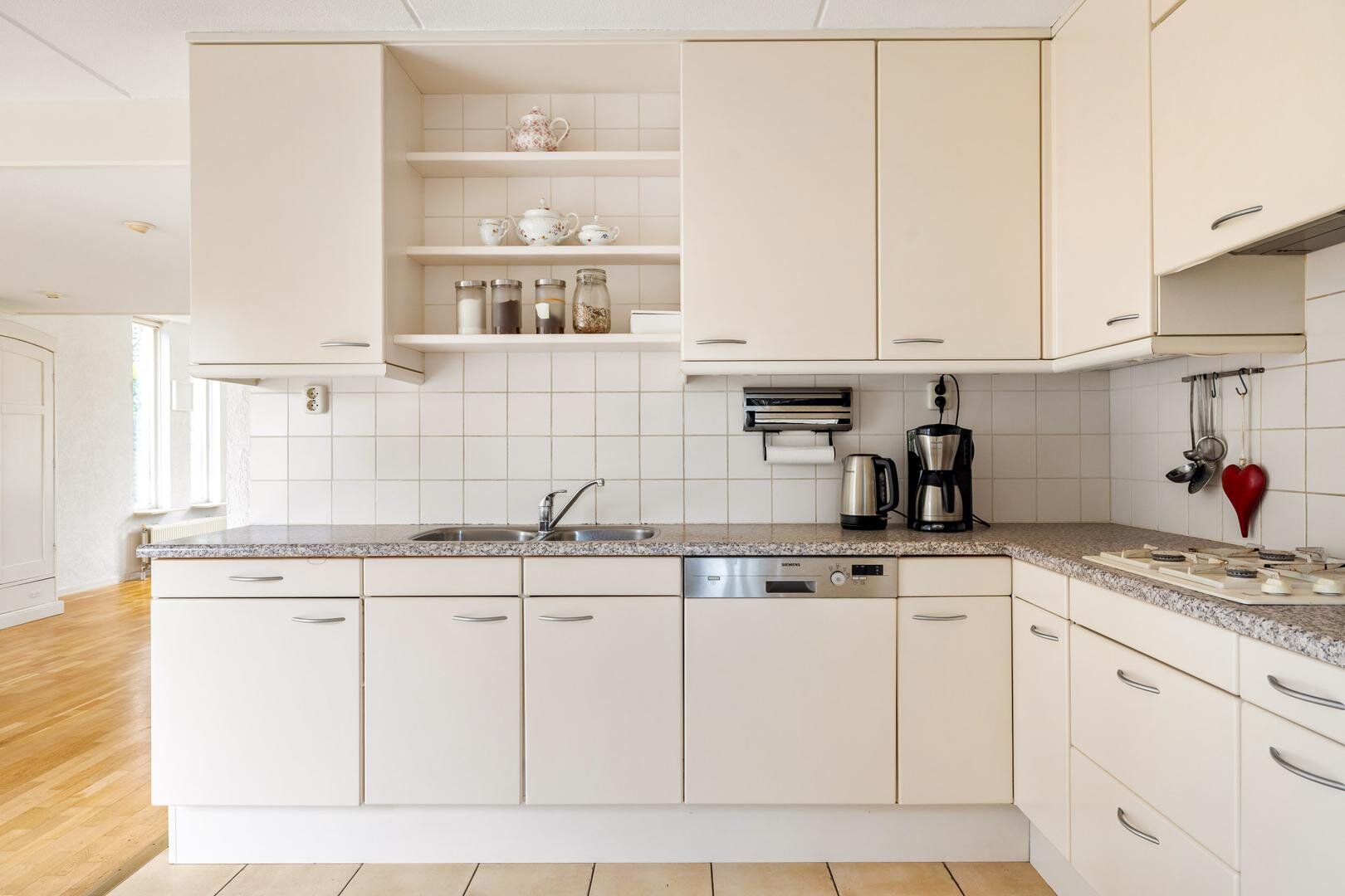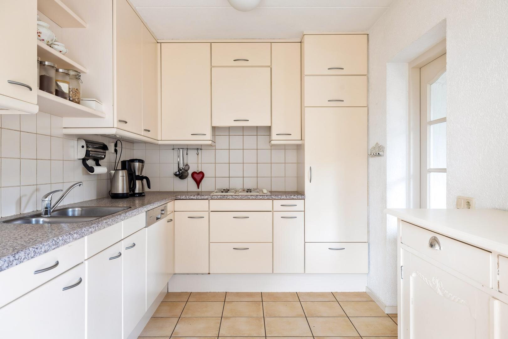 De keuken (bouwjaar 1994) is degelijk en functioneel, met een gaskookplaat, inbouwkoelkast en vaatwasser. Aangrenzend bevindt zich de bijkeuken met witgoedaansluitingen, vaste kasten en een extra wastafel. Praktisch en netjes afgewerkt.