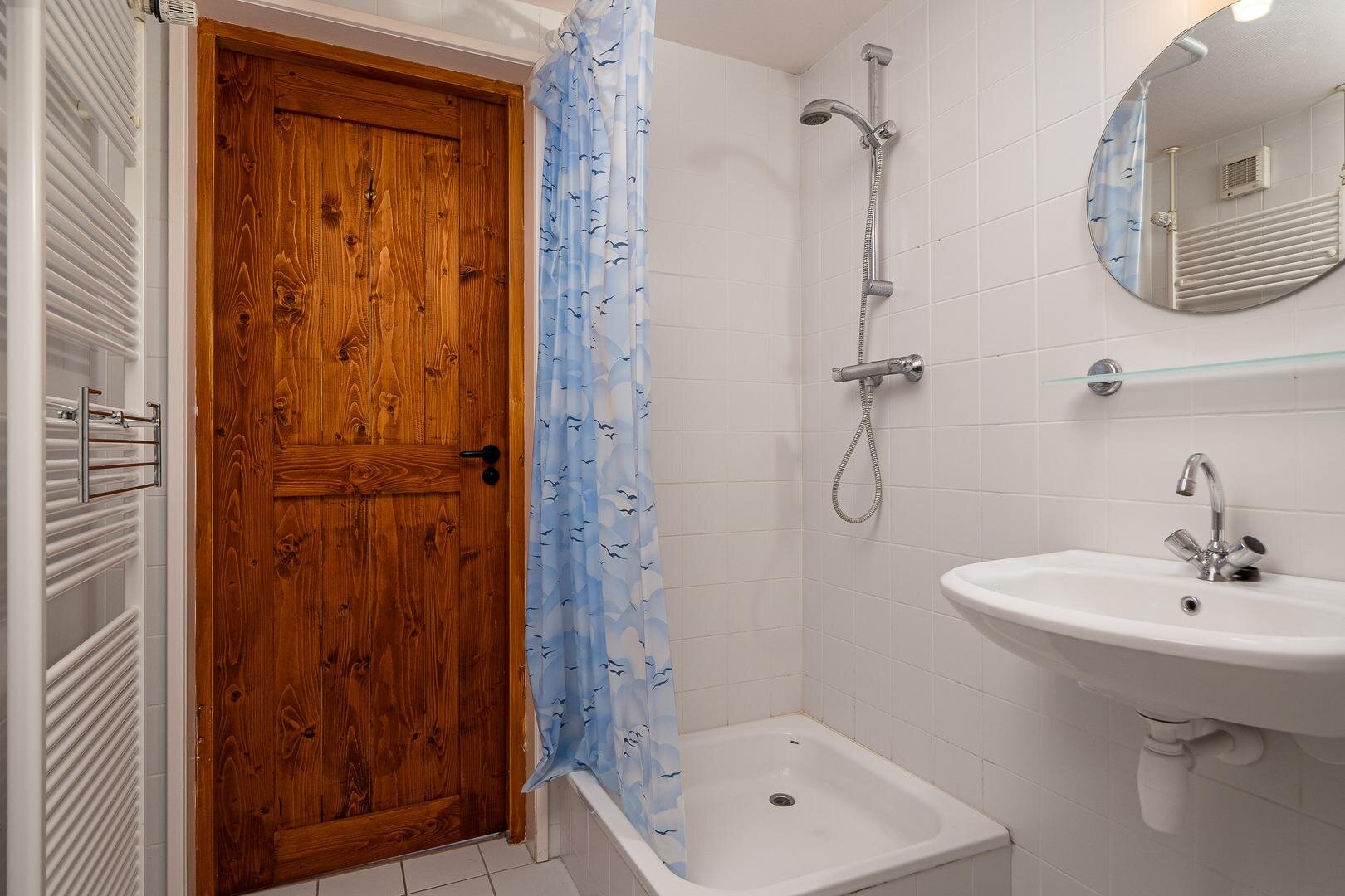 Twee volwaardige slaapkamers en een badkamer met douche, toilet en wastafel bieden een comfortabel onderkomen, gescheiden van het hoofdverblijf.