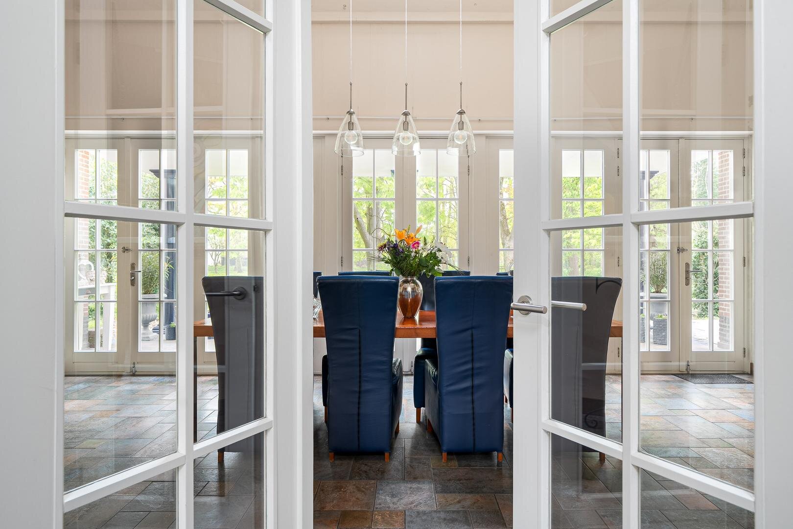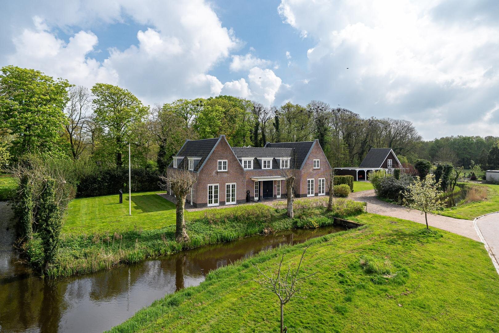 Een exclusief woonensemble midden in Friesland, grenzend aan de historische Epemastate, met ongekende rust, ruimte en mogelijkheden. In het hart van Friesland, op slechts een paar minuten van het bruisende Sneek en met de Friese meren én Waddeneilanden binnen bereik, ligt dit magnifieke landgoed aan De Finne 7. Een plek waar comfort, stijl en rust samenvloeien tot een thuis van uitzonderlijke klasse. Achter de markante entree met eigen oprijlaan ontvouwt zich een onder architectuur gebouwde villa met een woonoppervlakte van bijna 400 m², aangevuld met een volledig zelfstandig guesthouse van 65 m². Een perceel van 2.700 m², omringd door een eigen gracht, biedt volledige privacy, een landelijke tuin met minimalistisch onderhoud en uitzicht op eeuwenoud groen. Hier geniet je van vrijheid en beschutting tegelijk – in alle seizoenen. Binnen een uur rijden sta je in de Randstad, terwijl je thuis het gevoel hebt ver weg van alles te zijn. Een plek om tot rust te komen, te genieten, te leven.