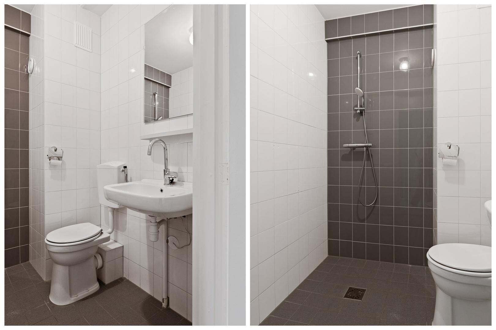 - volledig betegelde badkamer met douche, wastafel en toilet;