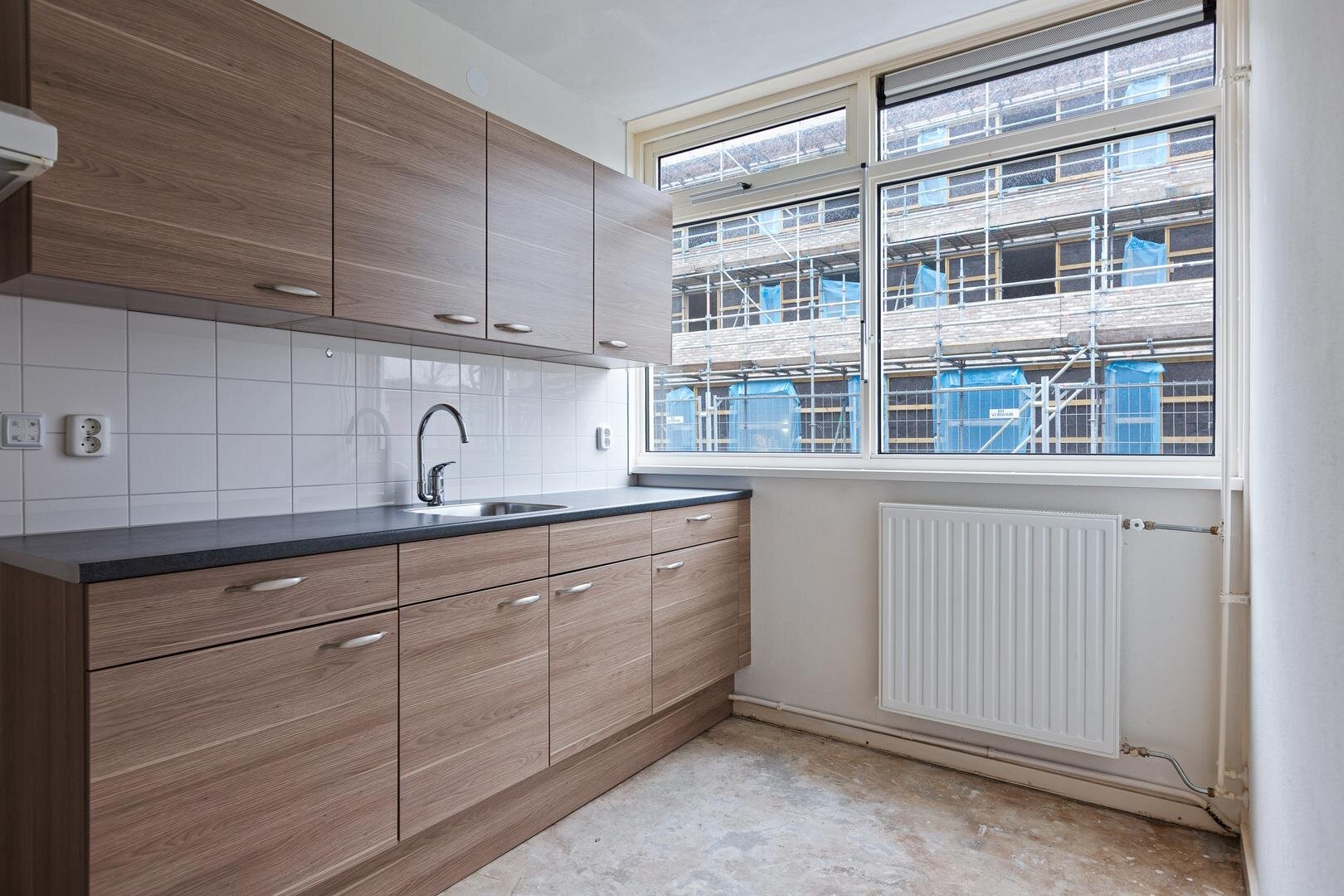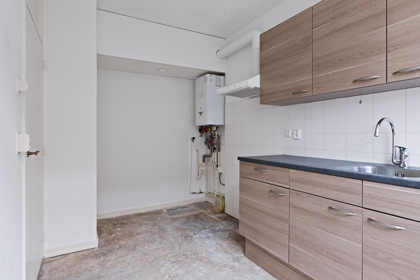 - straatgerichte keukenruimte met eenvoudig keukenblok en CV opstelling;