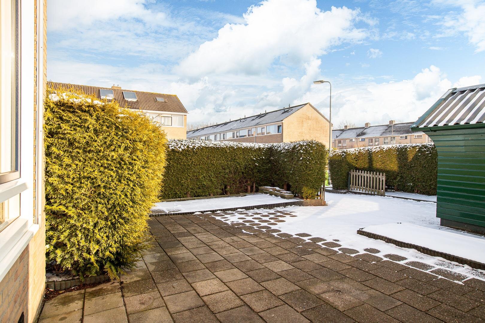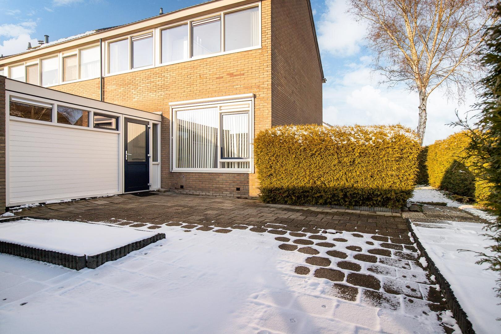 De woning heeft een beschutte achtertuin met achterom en ligt op een hoek, waardoor je kunt genieten van extra ruimte en privacy. De auto parkeren kan op de eigen oprit.