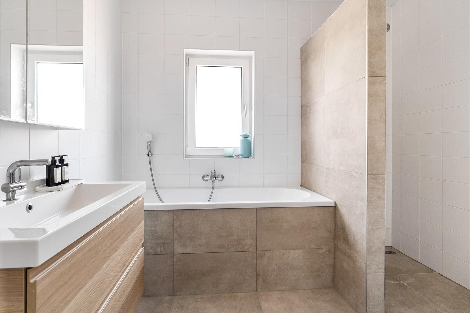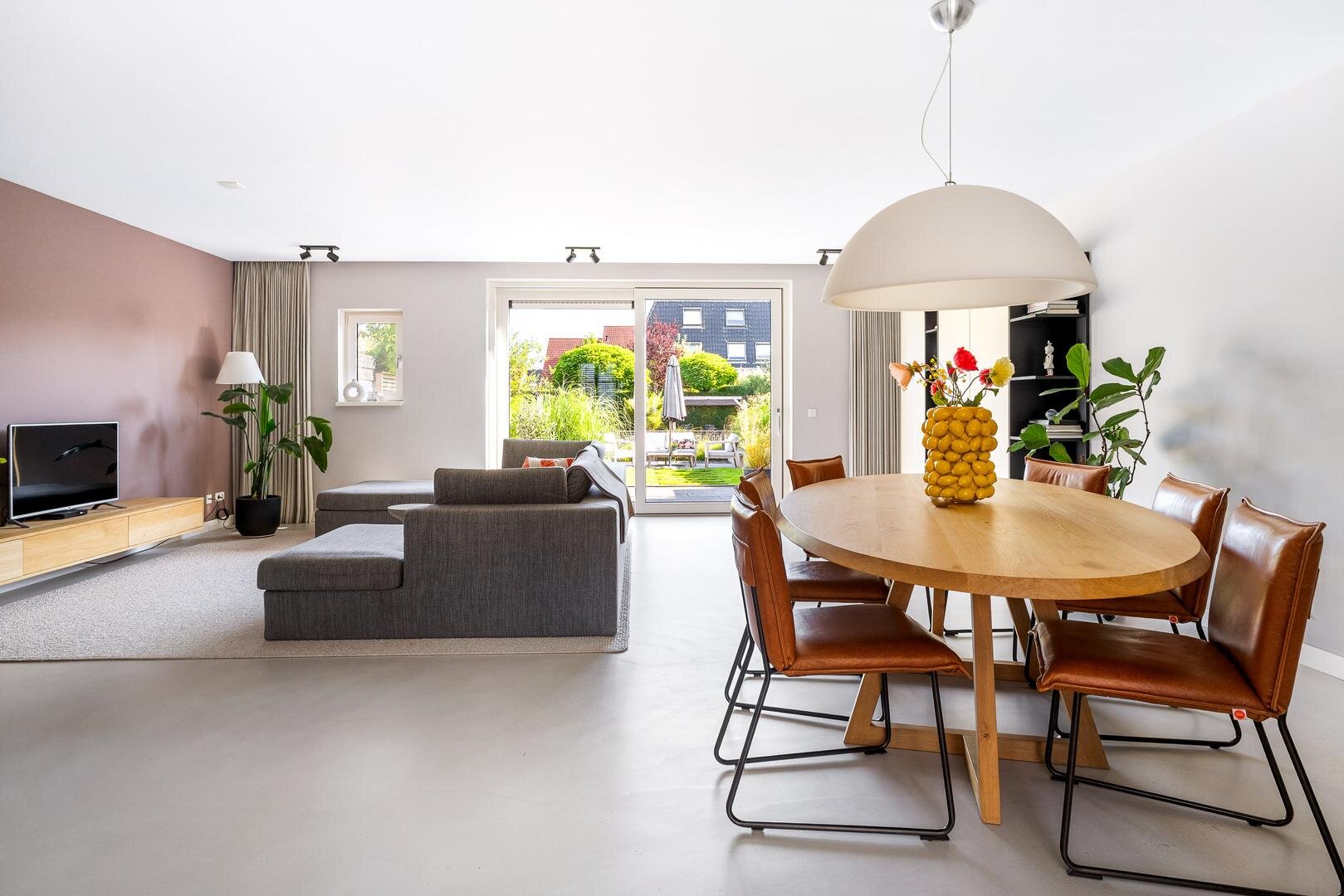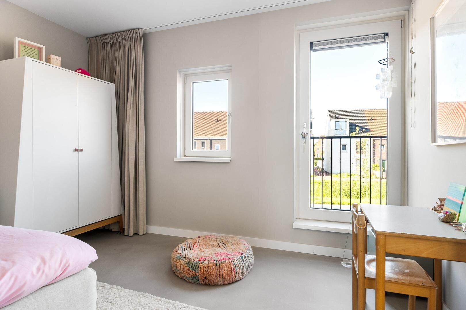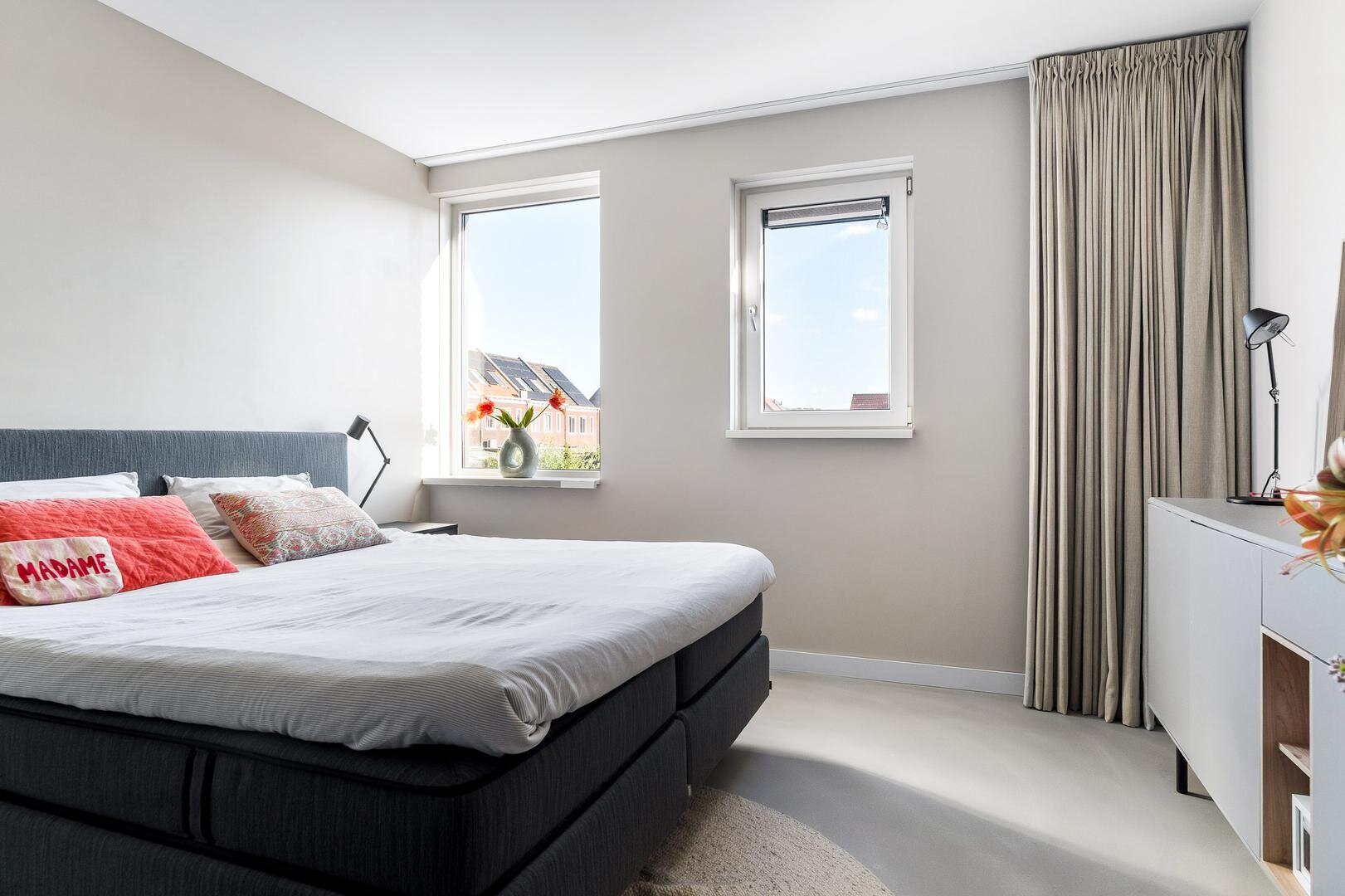 We gaan via de trap naar de overloop op de eerste verdieping. Hier is de strakke badkamer met inloopdouche, ligbad, wastafelmeubel en het tweede toilet. Verder vind je op de eerste verdieping drie ruime slaapkamers waarvan twee aan de achterzijde en een aan de voorzijde van de woning. De master bedroom heeft een ruime inbouwkast Ook hier weer overal vloerverwarming