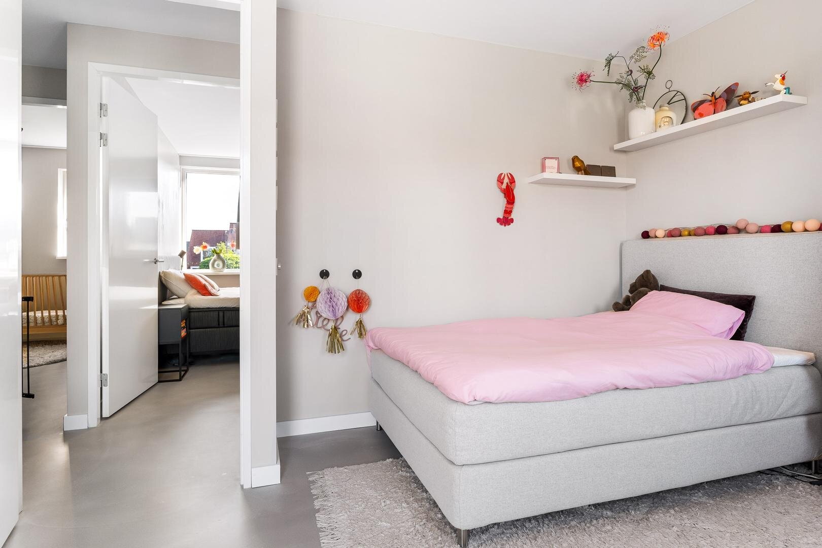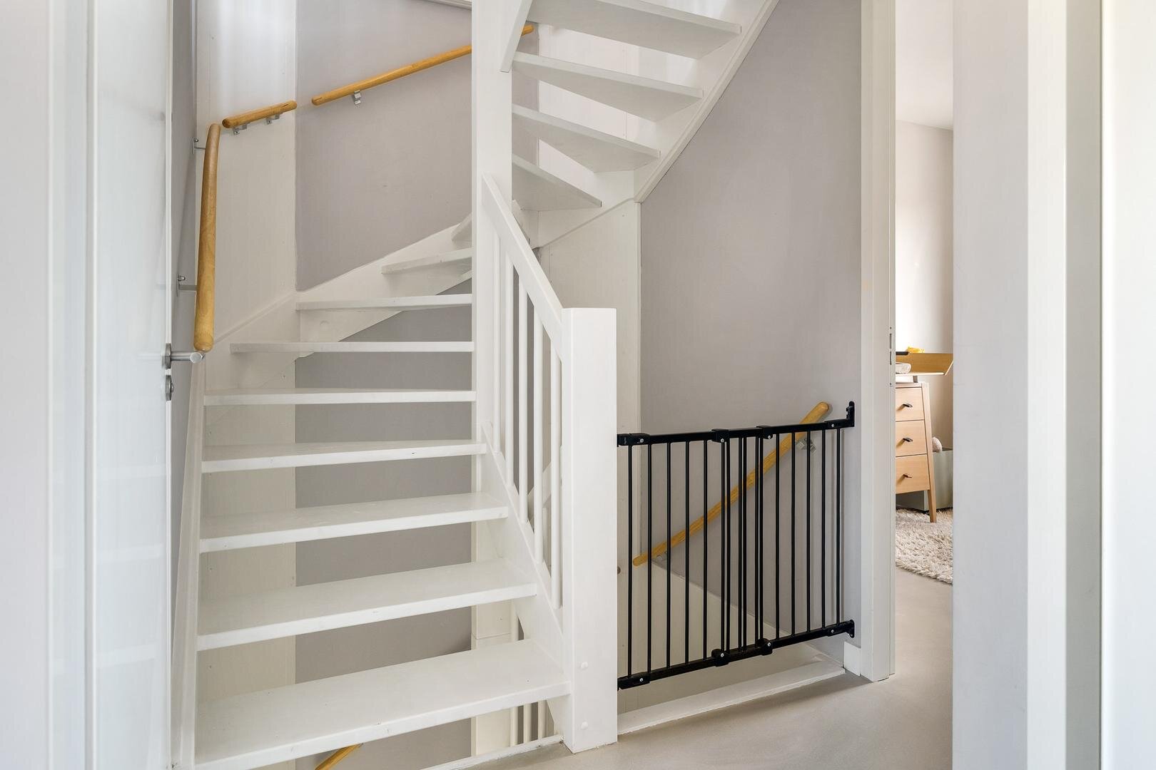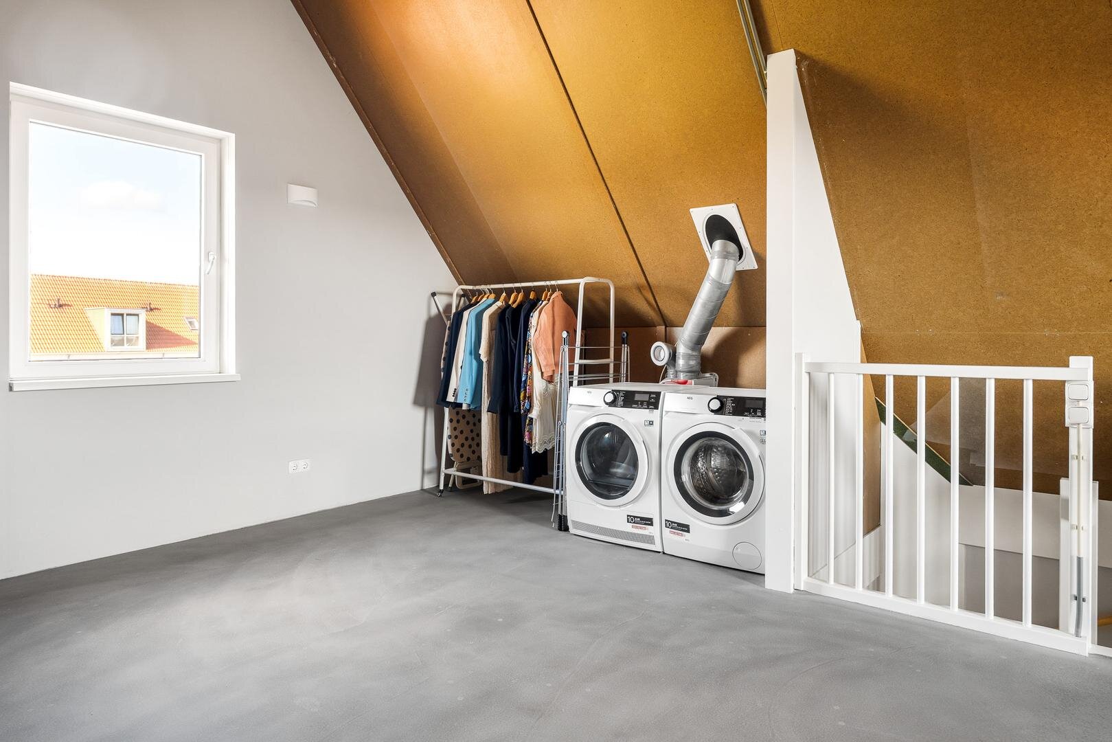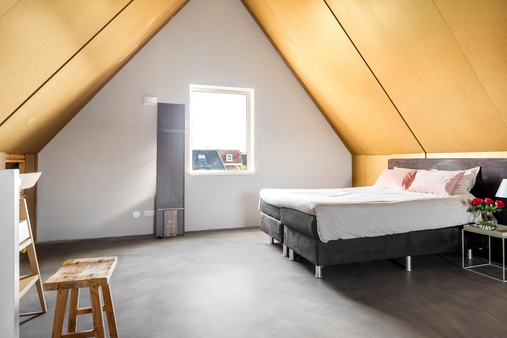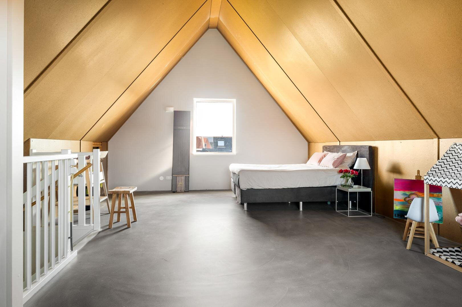 Via de vaste trap komen we op de tweede verdieping. Wat een mooie ruimte is dit! Door het grote oppervlakte kun je hier met een kleine aanpassing nog wel twee of drie slaapkamers realiseren. Mede hierdoor is deze woning uitermate geschikt voor grote gezinnen en thuiswerken is ook geen enkel probleem.