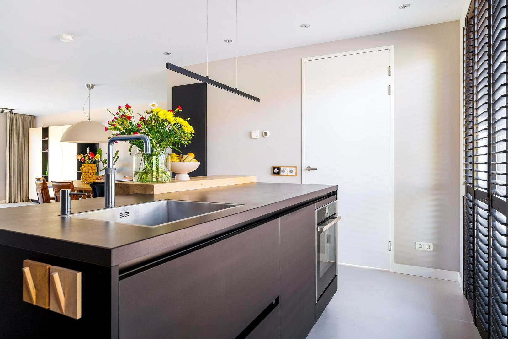 Je komt aanrijden bij de woning en je parkeert de auto voor de woning. Via de voordeur kom je binnen in de hal. Hier vind je de garderobe, meterkast en het eerste toilet. Als je doorloopt, kom je terecht in de ruime uitgebouwde woonkamer. De speelse indeling en moderne inrichting zorgen hier voor een bijzonder sfeervol geheel. De zitkamer geeft een knus gevoel en heeft een prachtig vrij uitzicht over de aan het vaarwater grenzende tuin. De open keuken is voorzien van alle gemakken en geeft zicht op De Nije Daam. De moderne keuken is onder andere voorzien van een kookeiland met bar, Quooker, inductiekookplaat, oven, koel-vriescombinatie en vaatwasser. Wat hier verder opvalt is de prachtige manier waarop de koelkast en voorraadkasten in de wanden zijn weggewerkt. Hier bereid je dan ook met gemak de lekkerste gerechten! De fraai gekozen opstelling zorgt ervoor dat je tijdens het koken fijn in contact staat met de gasten. Aan de achterzijde stap je via de schuifpui zo de heerlijke achtertuin in. De gehele begane grond is voorzien van vloerverwarming en een strakke gietvloer en onder de trap bevindt zich een ruime en praktische trapkast. Alle wanden en plafonds zijn net als in de rest van de woning strak afgewerkt.