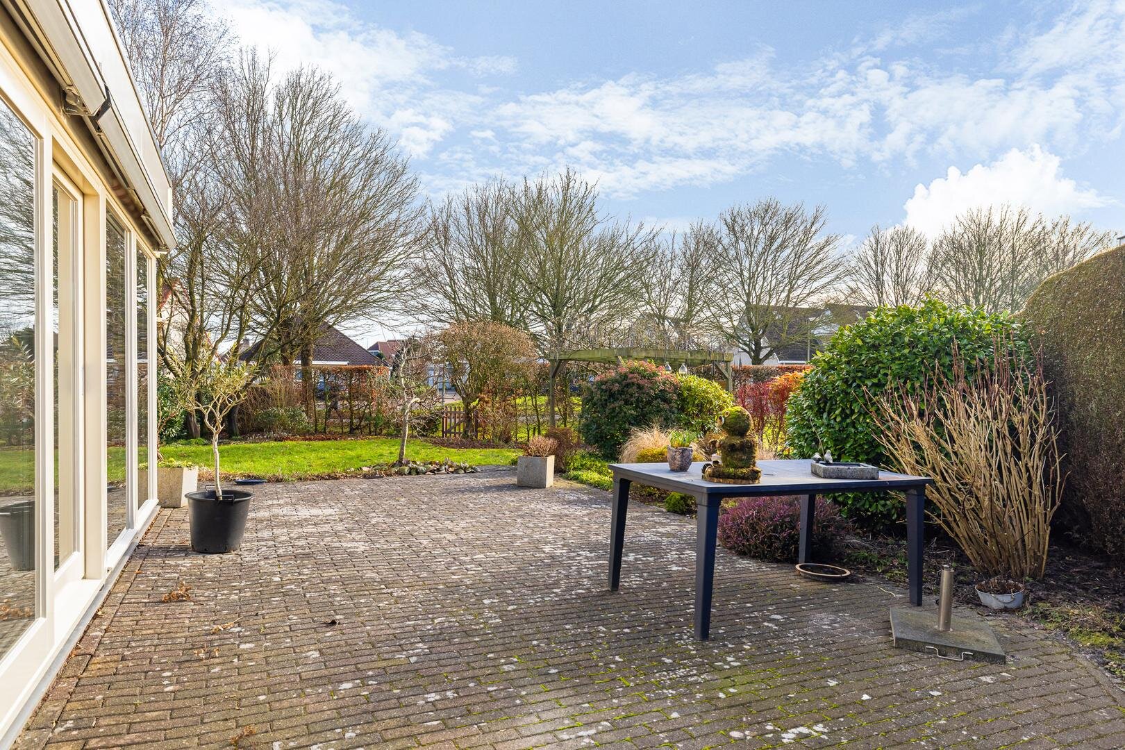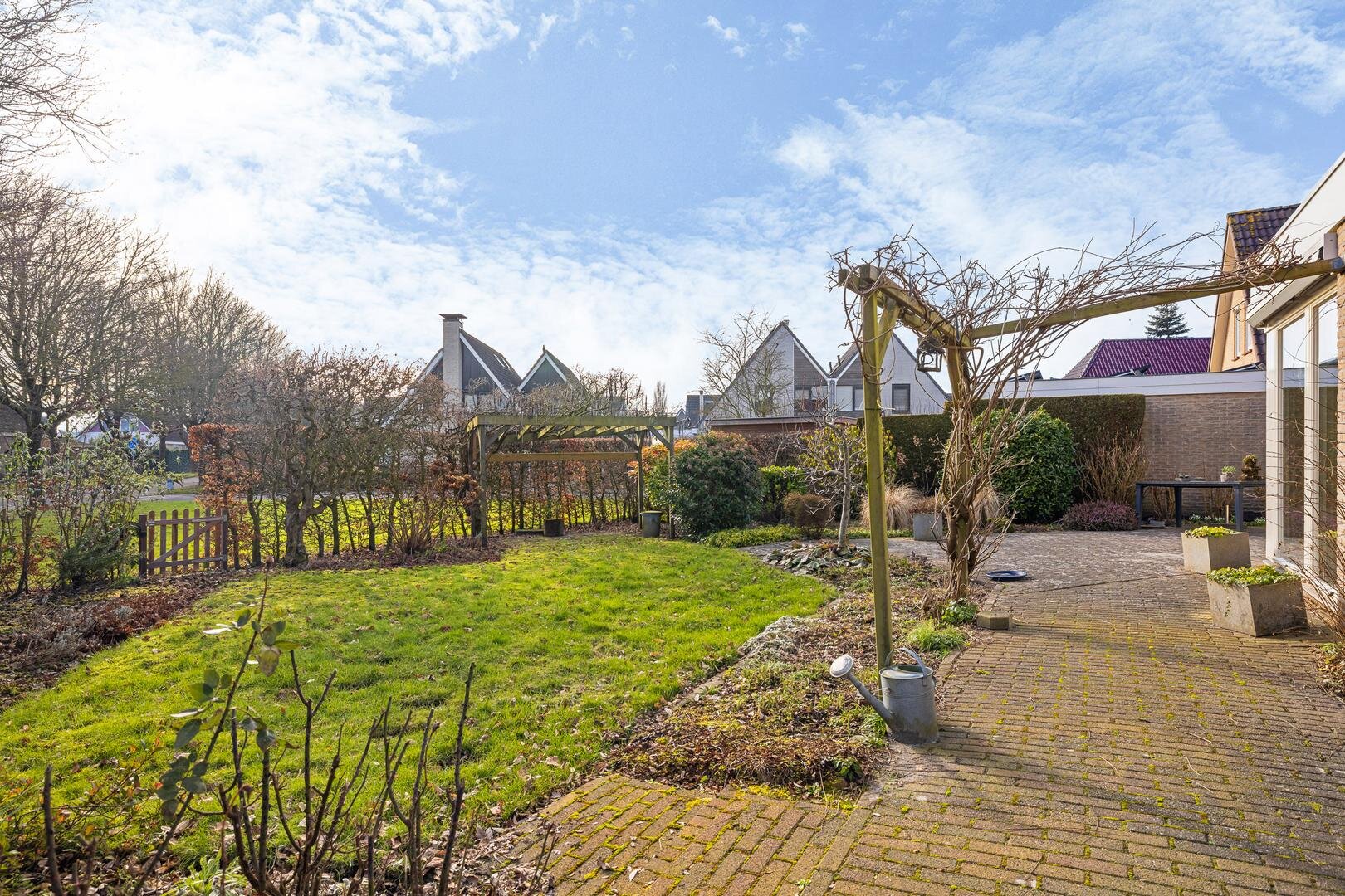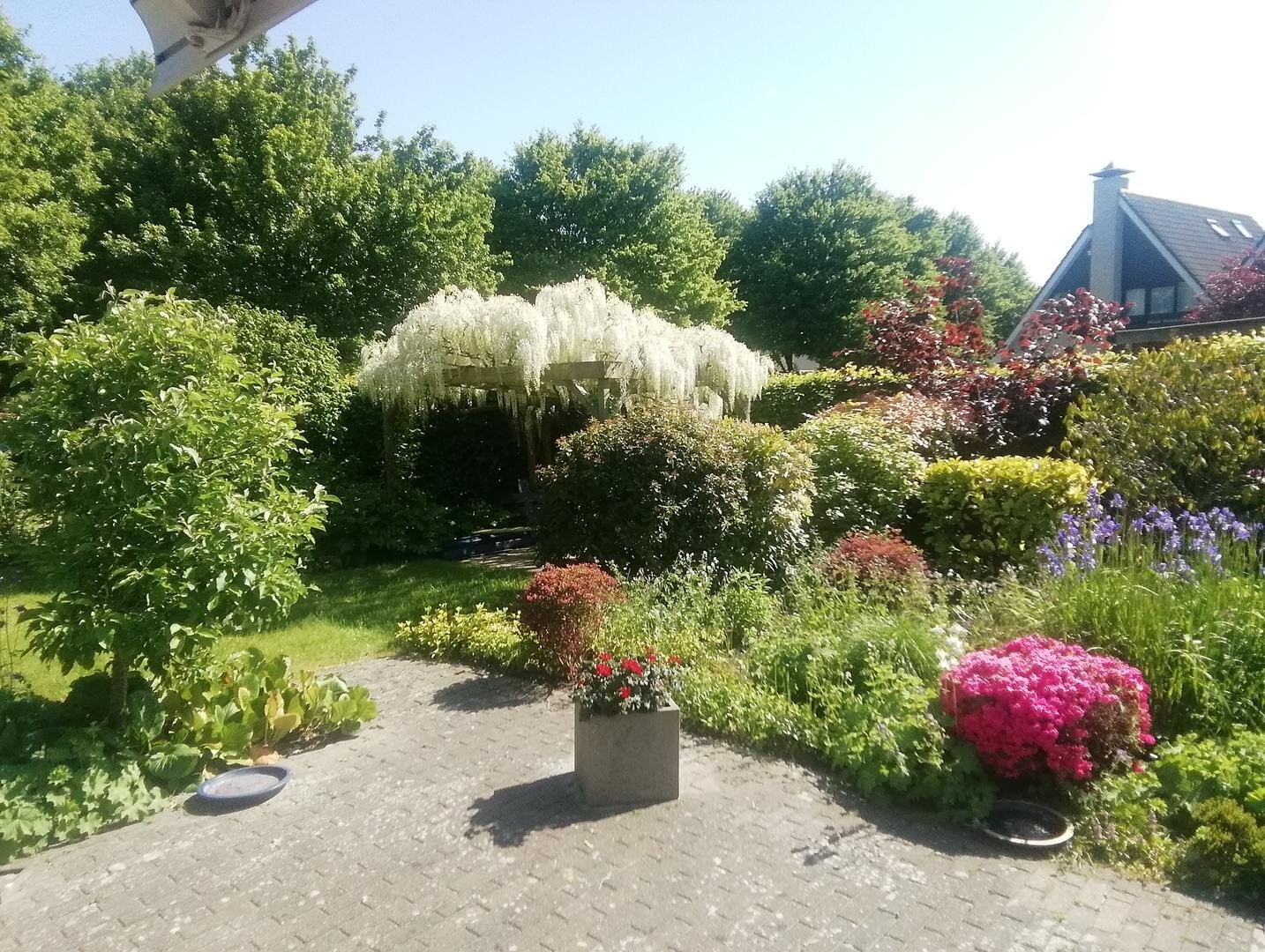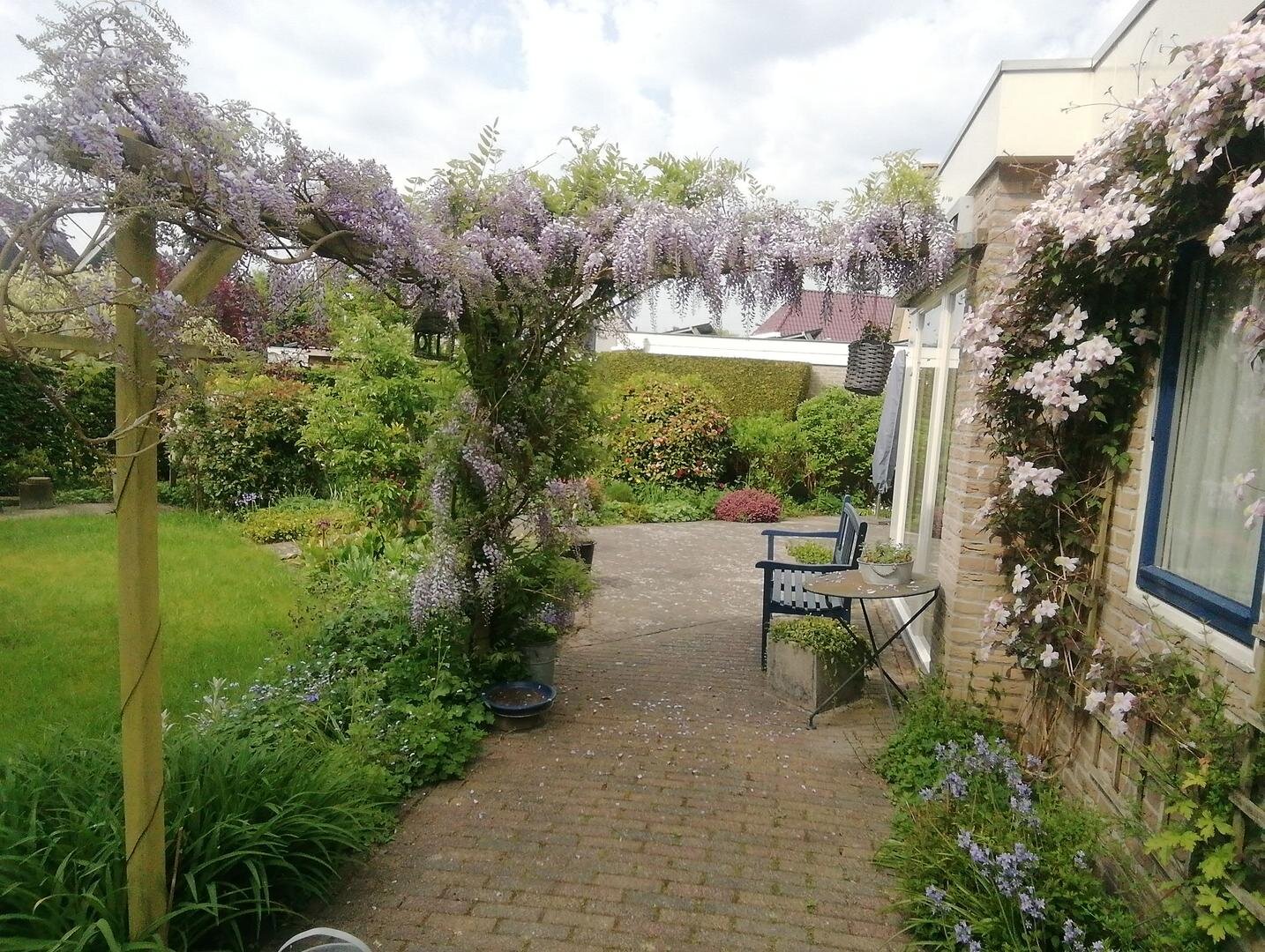 De tuin is ontworpen en aangelegd door Van der Bom (Haskerdijken) en ligt gunstig op het zuiden. In het voorjaar komt de beplanting prachtig tot zijn recht. Dankzij de ligging en het perceel geniet je hier van rust, privacy en volop zon.