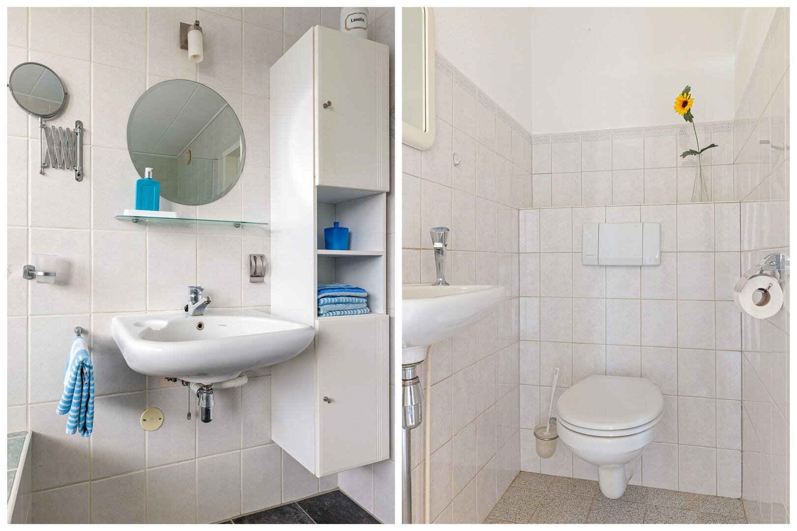 Op de verdieping bevinden zich drie slaapkamers, waaronder een ruime master bedroom. De complete badkamer beschikt over een wastafel, douche, ligbad en toilet (douchehoek vernieuwd in 2012).