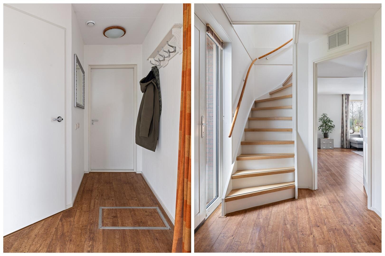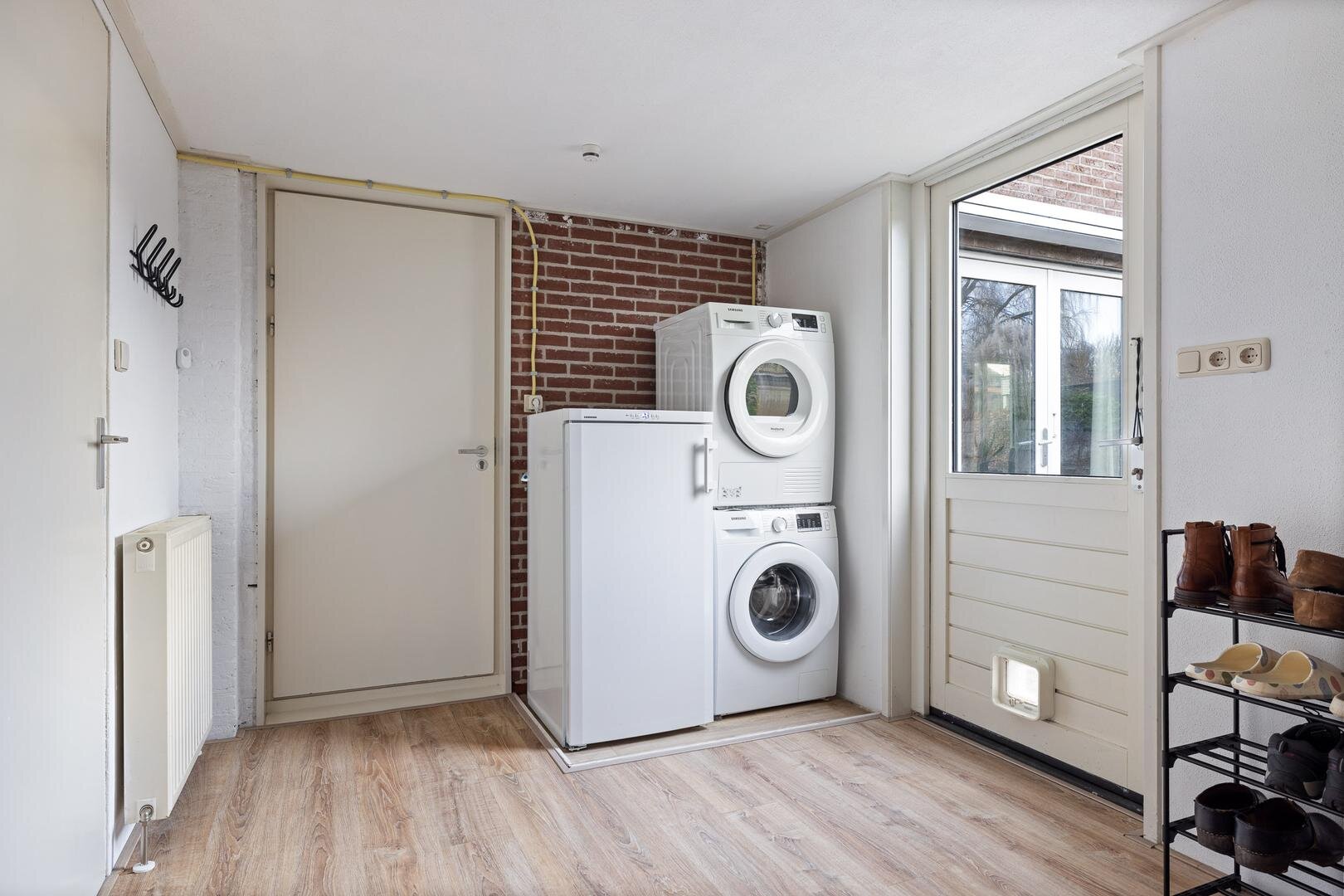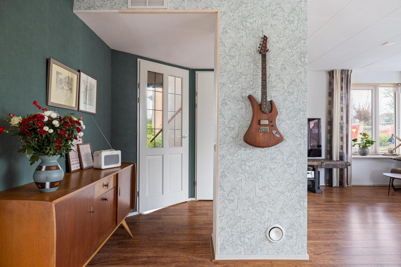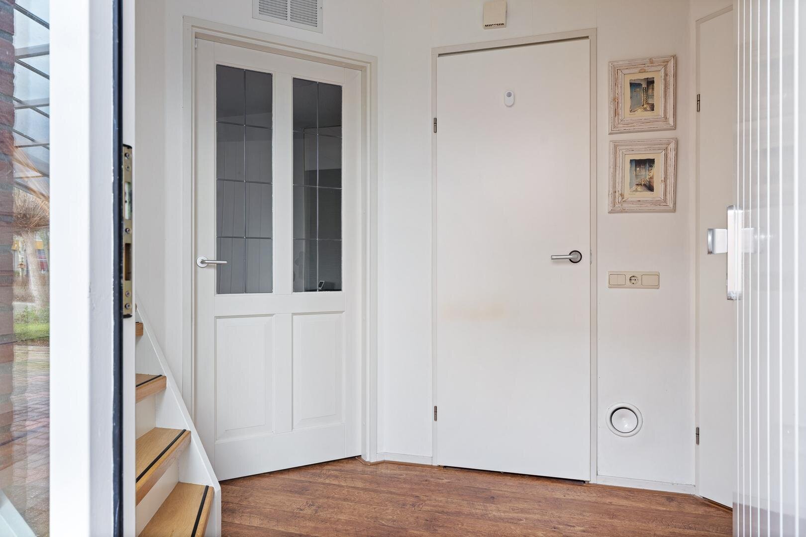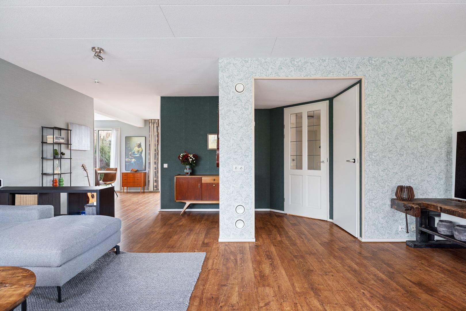 Via de zij-entree komt u in de hal met toilet (fonteintje) en mechanische ventilatie. De lichte woonkamer heeft een prettige sfeer en een nette laminaatvloer. De uitgebouwde woonkeuken beschikt over tuindeuren naar de zonnige achtertuin (west) en een moderne Bruynzeel keuken (2017) in hoekopstelling met inbouwapparatuur.