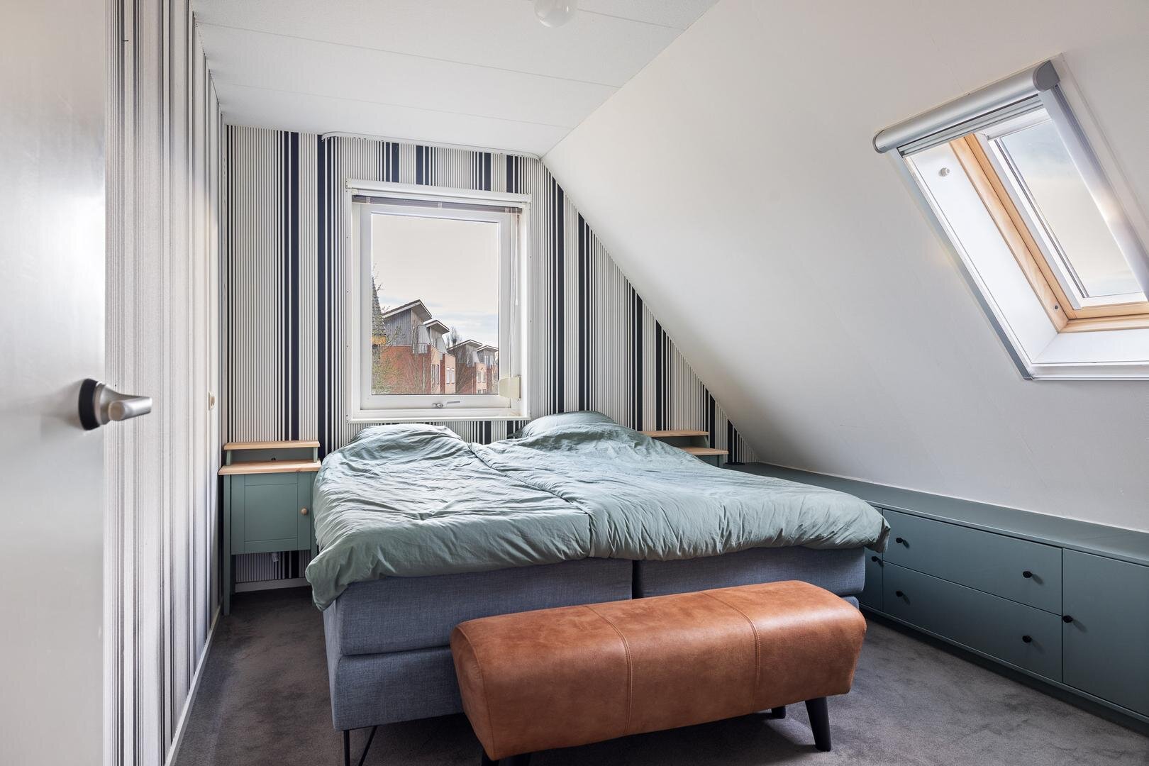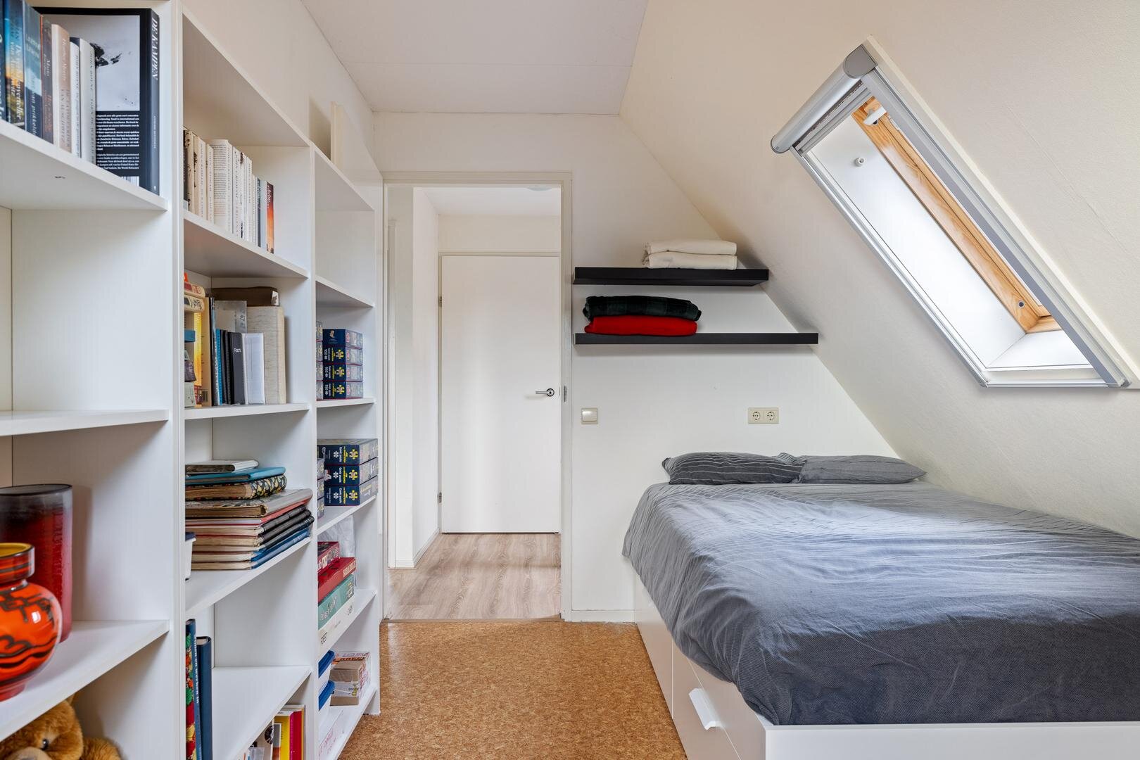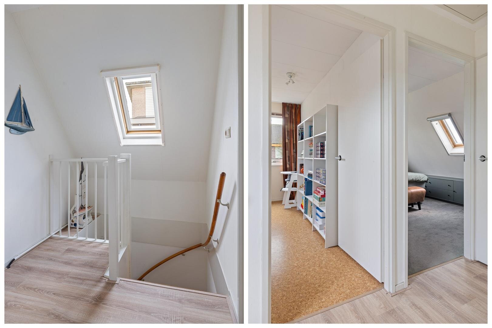 De tweede verdieping biedt een praktische zolderberging, bereikbaar via een vlizotrap.