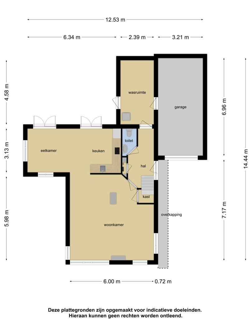 Aansluitend vindt u de bijkeuken met witgoedaansluiting en toegang tot de enkelsteens garage met openslaande deuren.