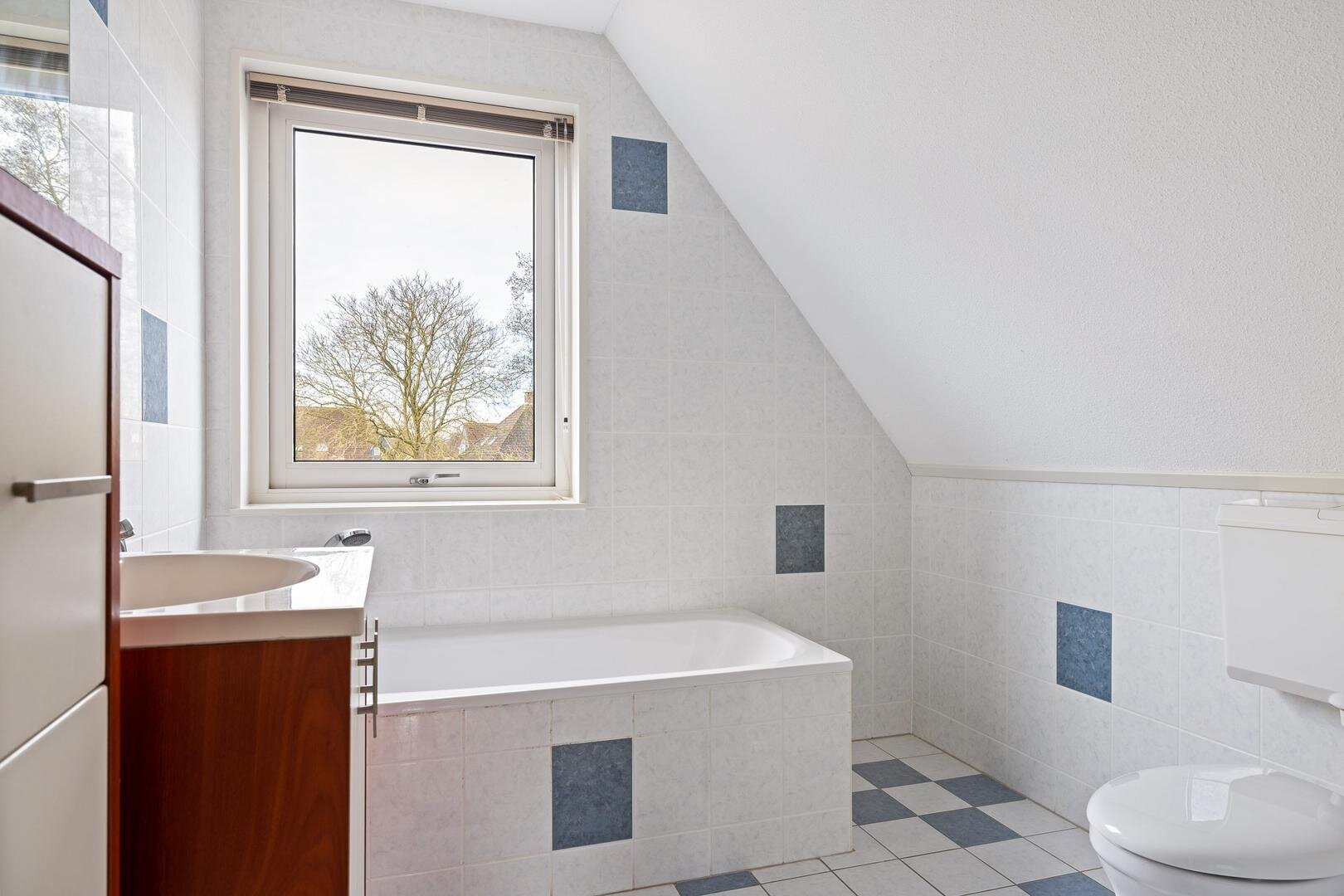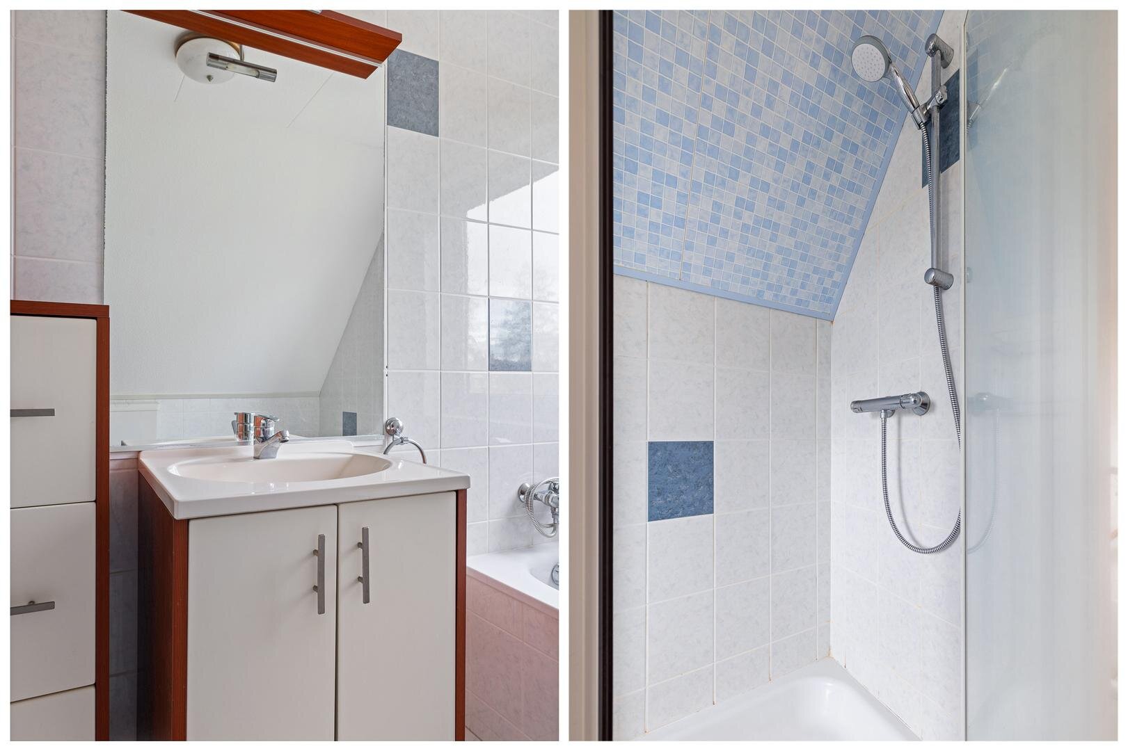Op de eerste verdieping zijn drie ruime slaapkamers en een complete badkamer met ligbad, douche, toilet en wastafelmeubel, eveneens voorzien van mechanische ventilatie.
