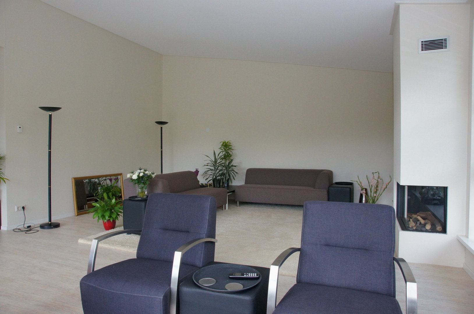 Riante entree met brede trapopgang, toilet en garderobehoek. Z-vormige living van bijna 70 m2 met veel lichtinval, vide, sfeervolle gashaard en schuifpui naar het zonneterras. Moderne en luxe keuken in een L-opstelling met veel inbouwapparatuur. Slaapkamer van 17 m2 met inloop garderobekast en het raam kan geblindeerd worden middels een screen aan de buitenzijde. Vanuit de slaapkamer is de halfopen luxe badkamer toegankelijk welke is v.v. douche, toilet en 2 wastafels. Inpandige bijkeuken met witgoedaansluitingen en zij-entree naar de carport.