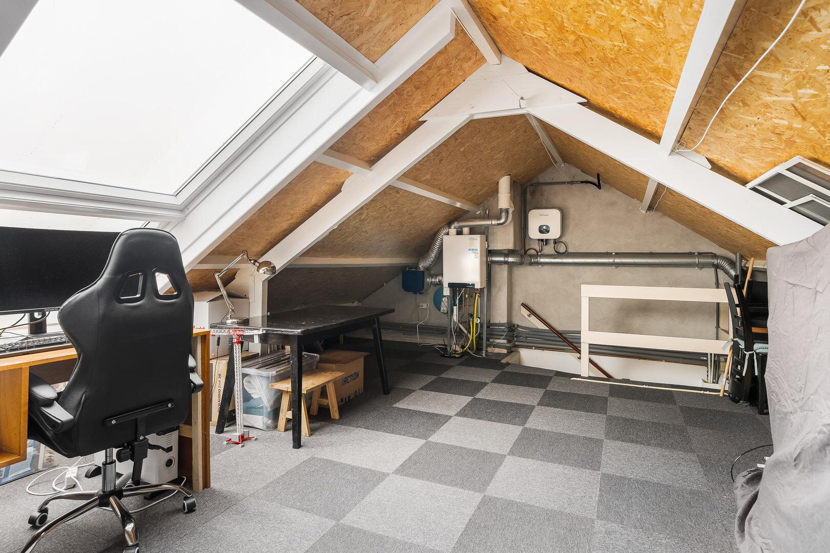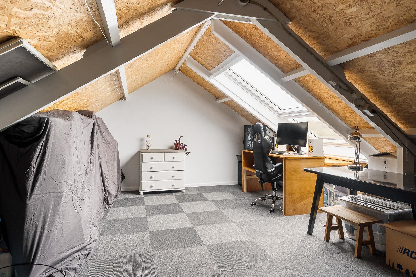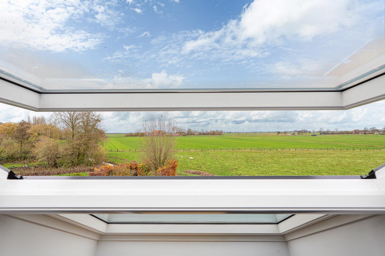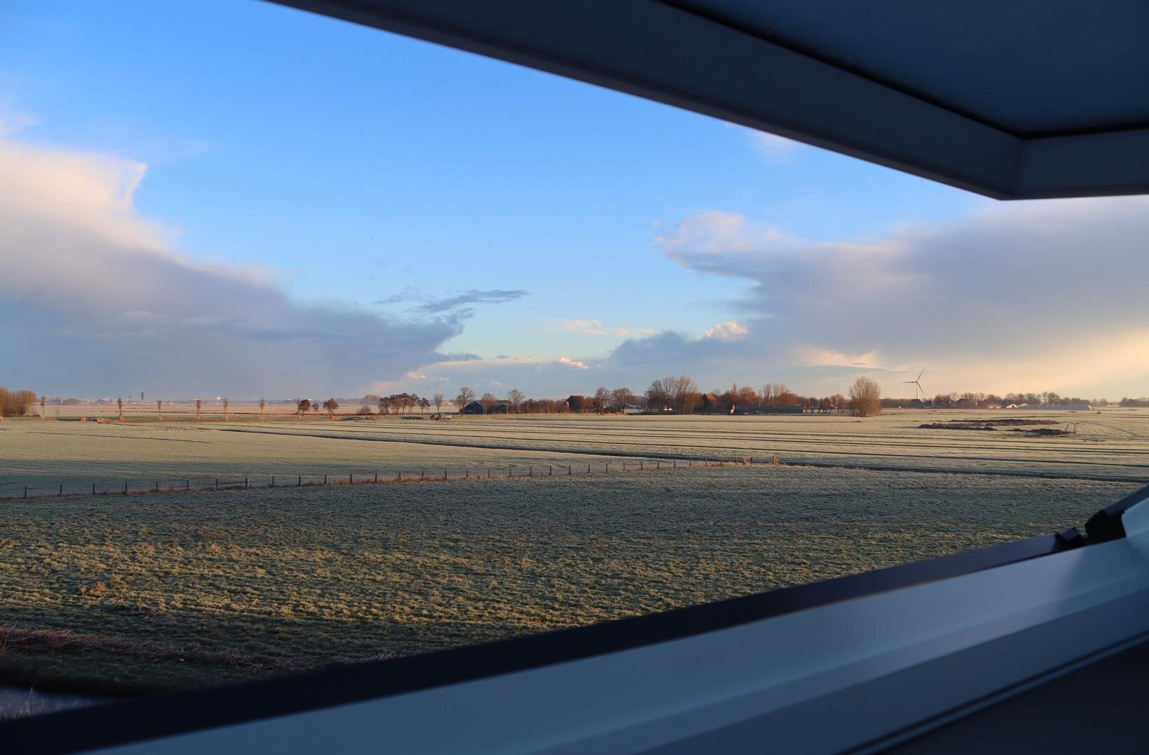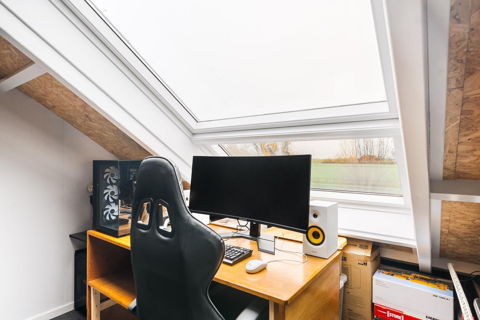 De tweede verdieping biedt een vierde slaapkamer of ideale werkruimte. In oktober 2025 is hier een groot kunststof Velux dakraam geplaatst. Het uitzicht over de landerijen is nóg mooier geworden met extra lichtinval.