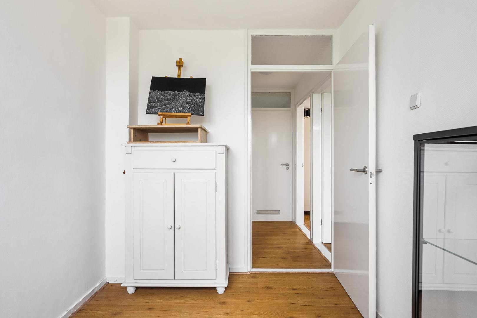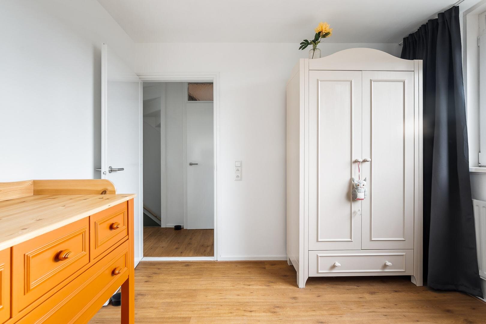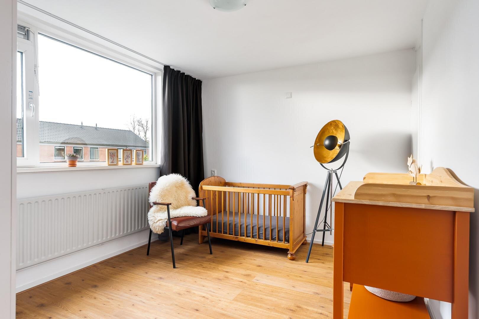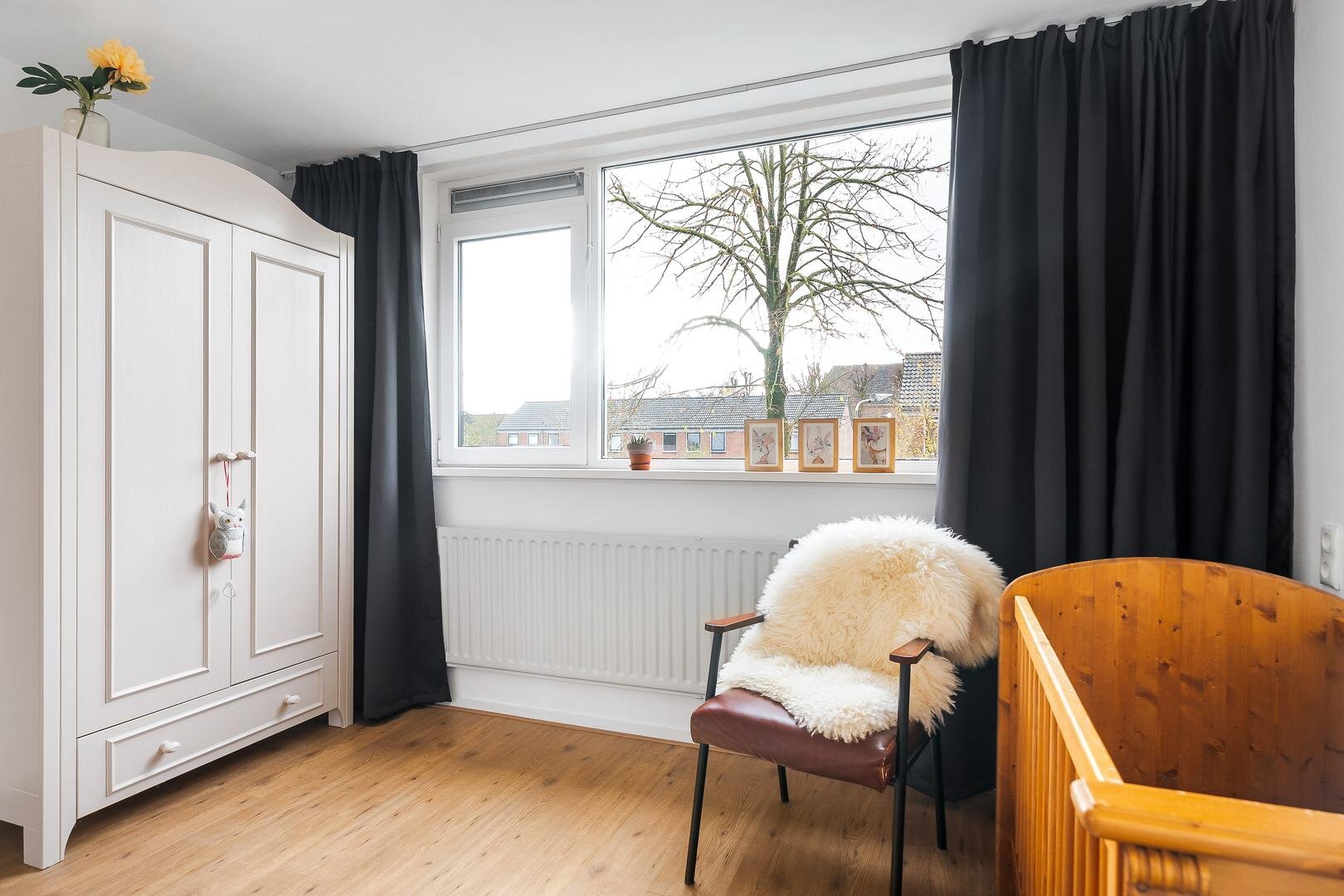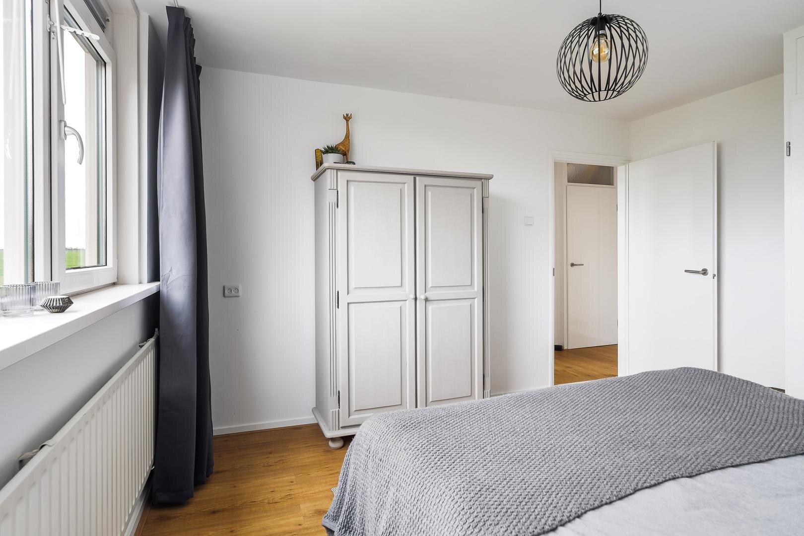 De tweede verdieping biedt een vierde slaapkamer of ideale werkruimte. In oktober 2025 is hier een groot kunststof Velux dakraam geplaatst. Het uitzicht over de landerijen is nóg mooier geworden met extra lichtinval.