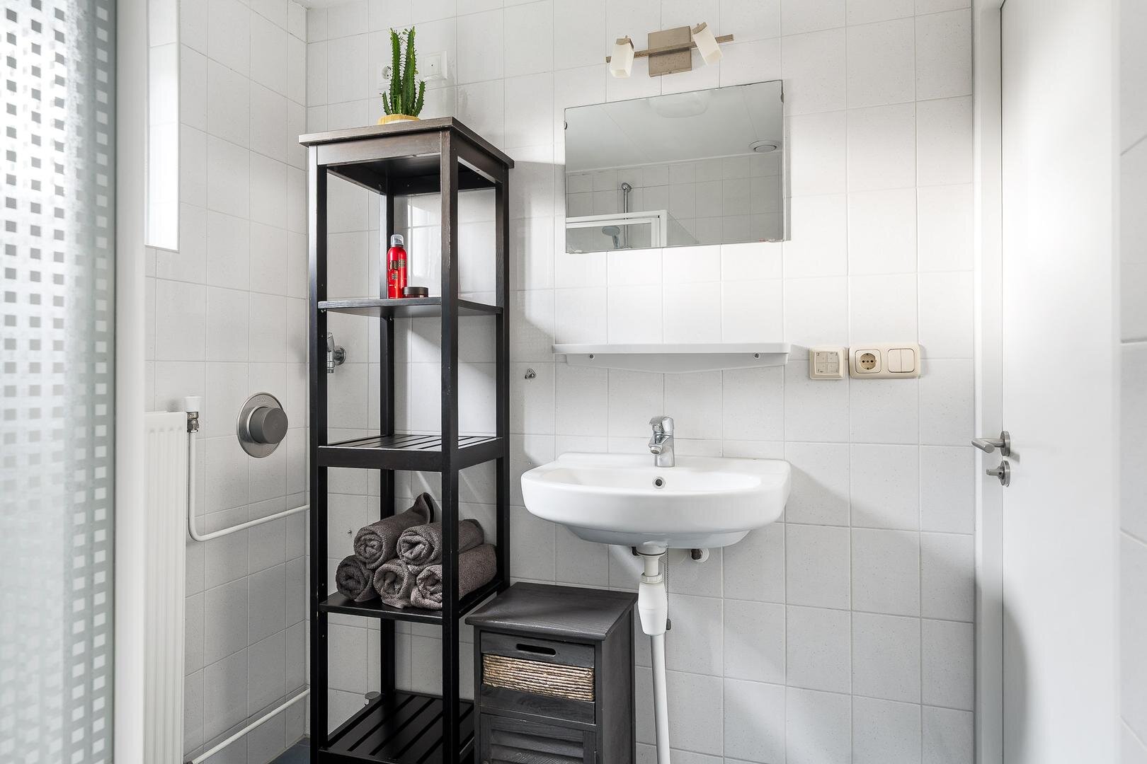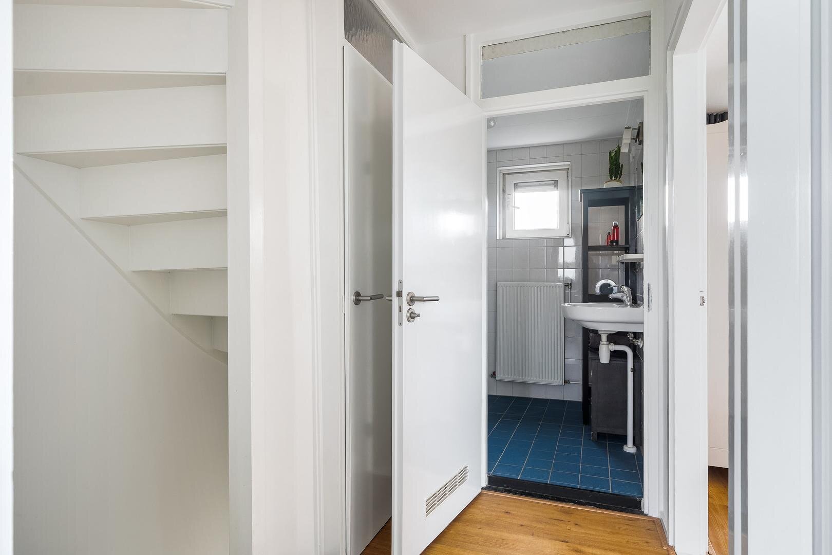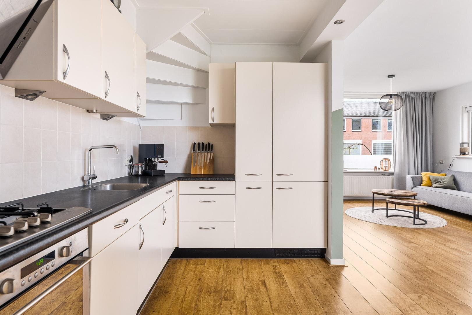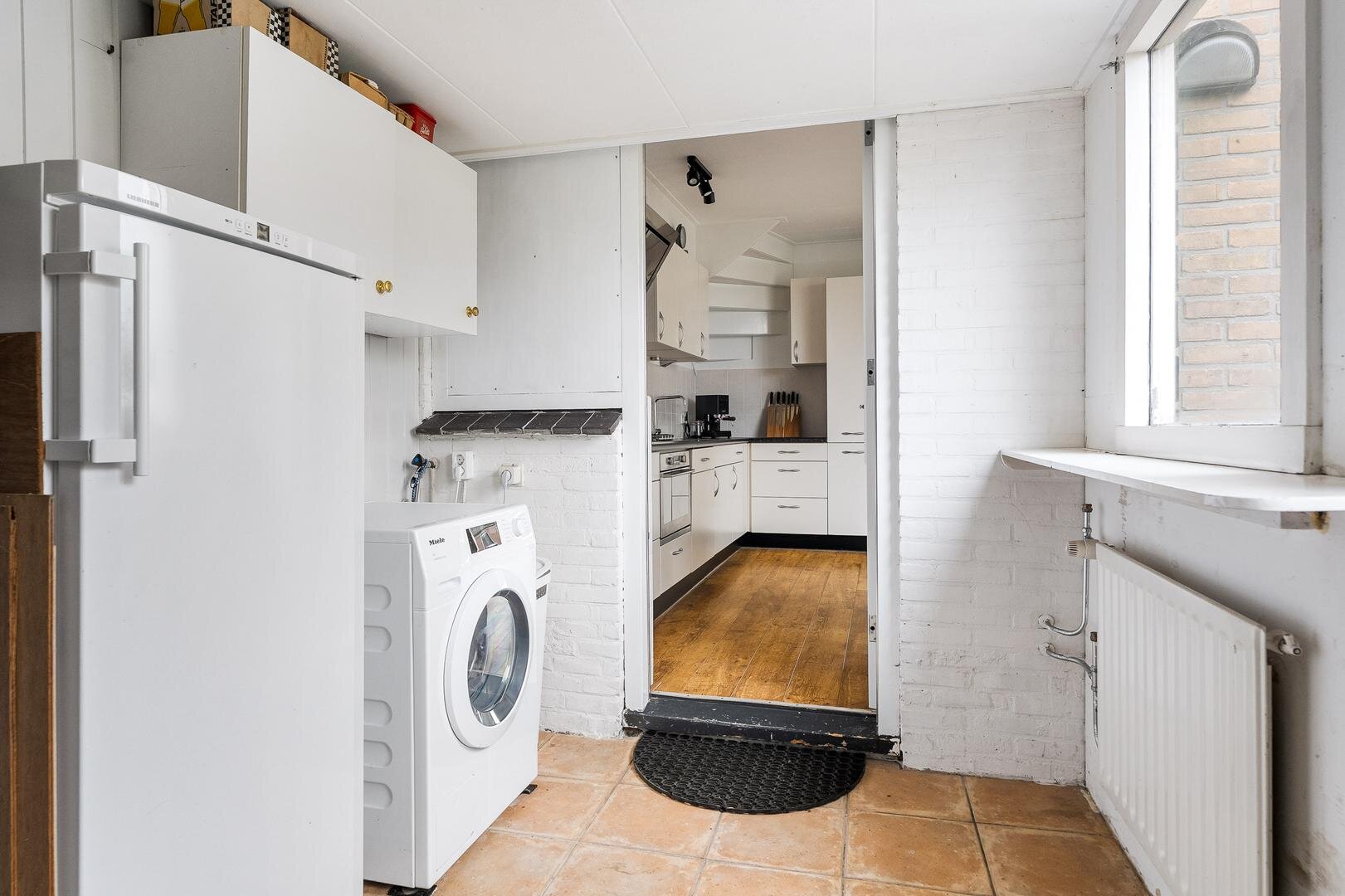 Via de verzorgde voortuin bereik je de voordeur. De entree biedt toegang tot de hal met meterkast, toiletruimte met fonteintje, trapopgang naar de verdieping en een praktische opbergkast. Vanuit de hal stap je de lichte doorzonwoonkamer binnen, met aansluitend de open keuken. Deze moderne keuken is uitgerust met diverse inbouwapparatuur, waaronder een koelkast, afzuigkap, vaatwasser en een combi-oven/magnetron. Vanuit de keuken bereik je de handige bijkeuken/tussenbouw naar de stenen aangebouwde berging.
