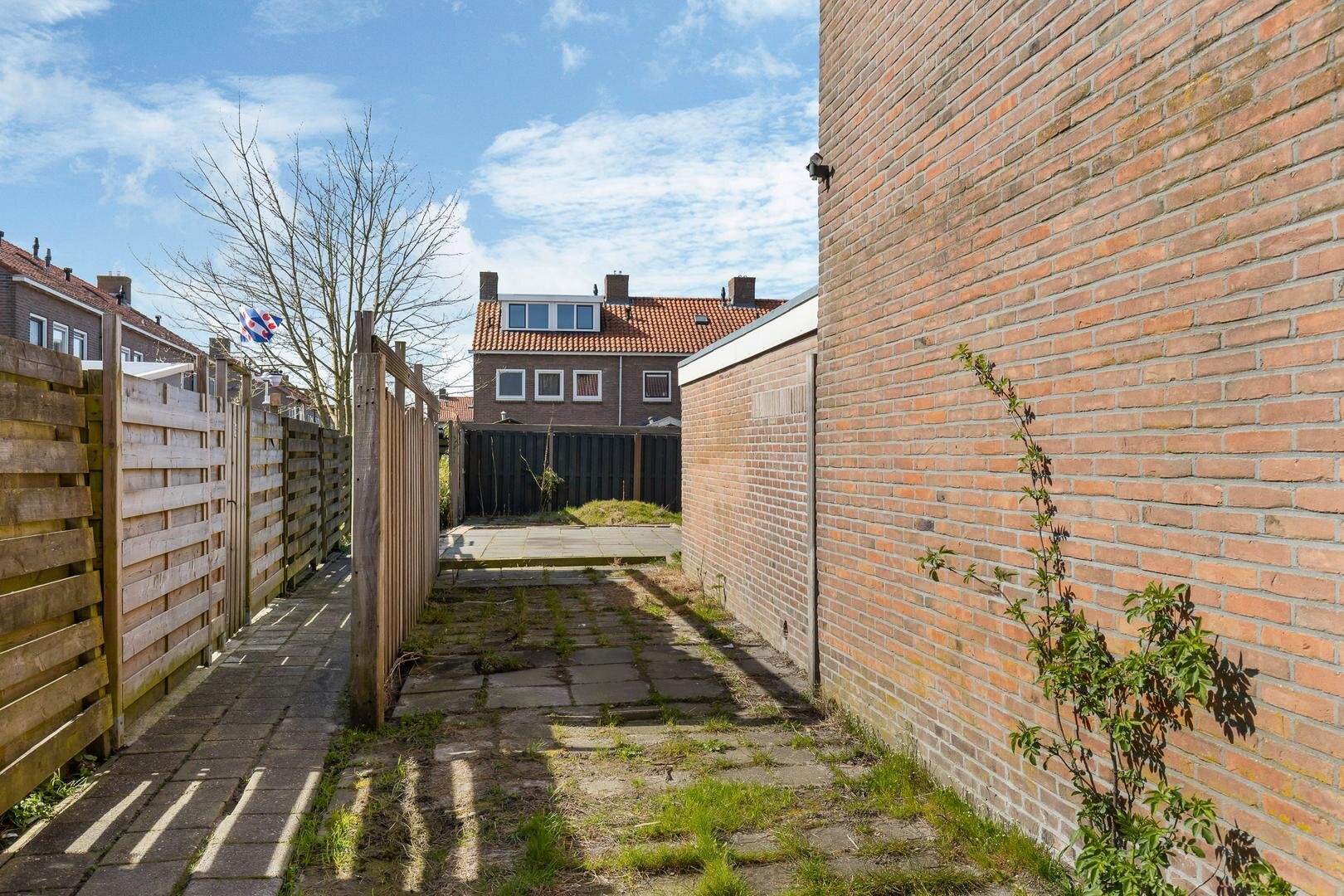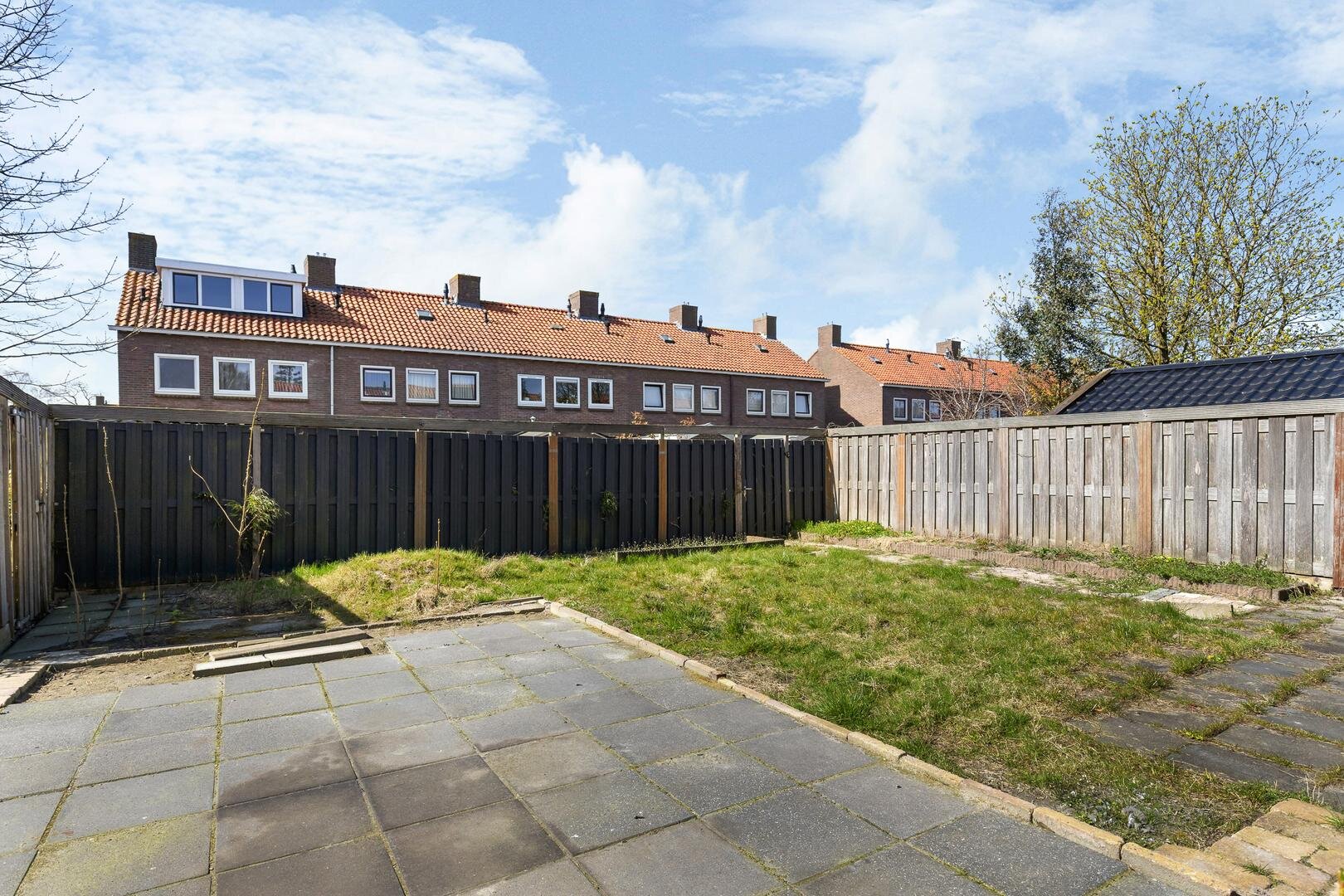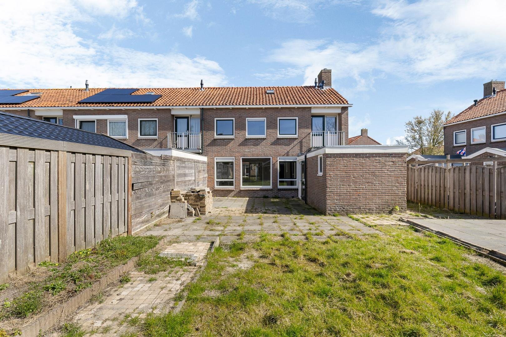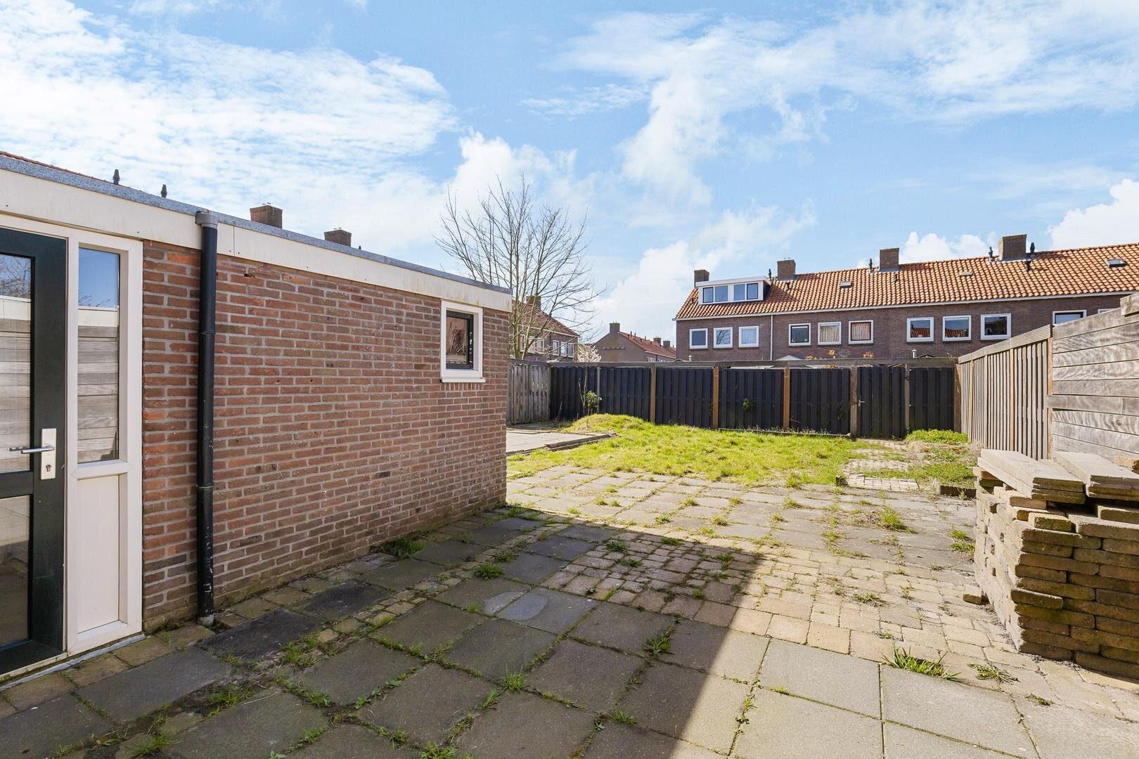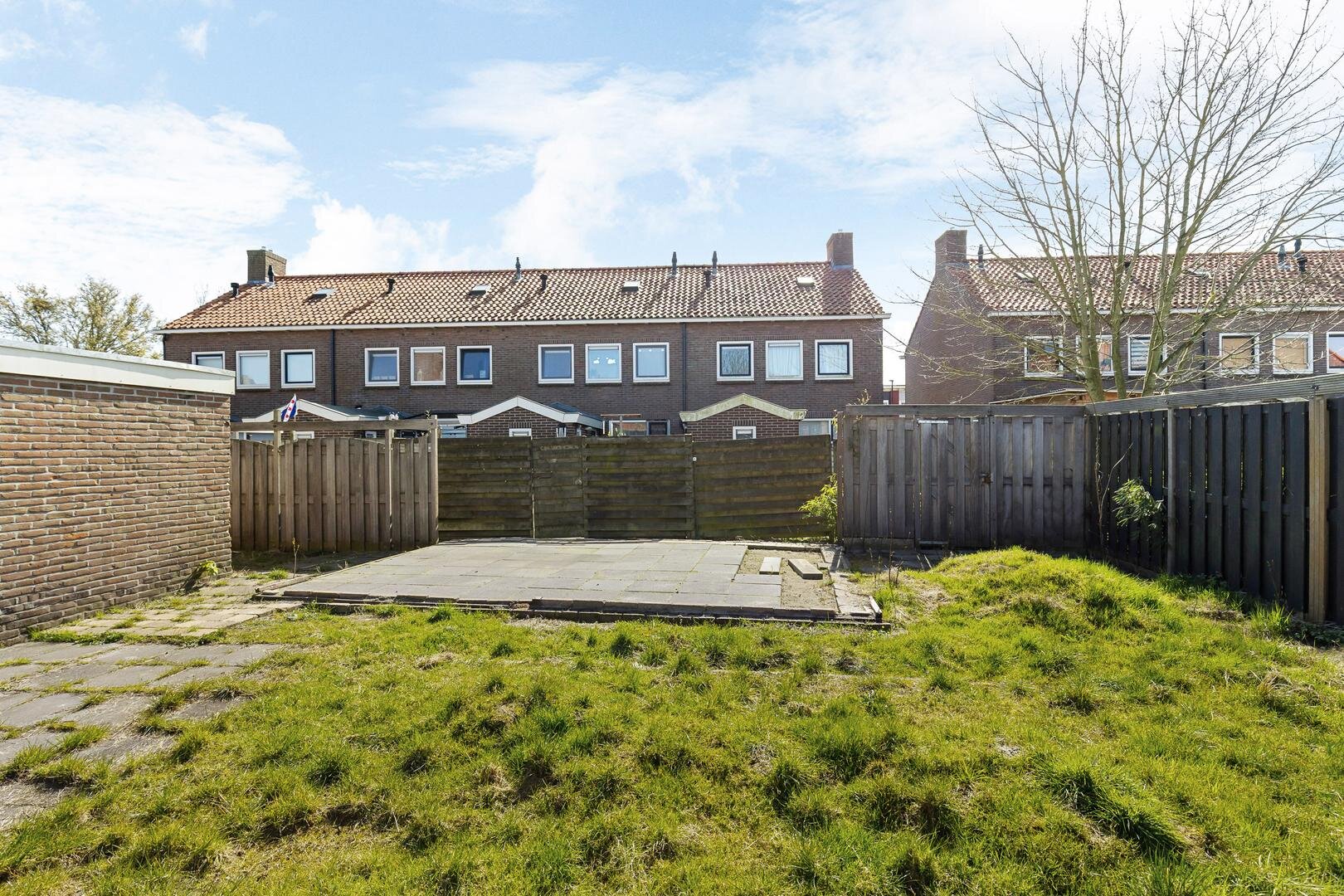 De woning beschikt over een onderhoudsvriendelijke achtertuin met achterom en een eenvoudige overkapping. Door de hoekligging is er extra privacy. Hier kun je heerlijk zitten en genieten van de buitenlucht. De woning is daarnaast voorzien van buitenzonwering.