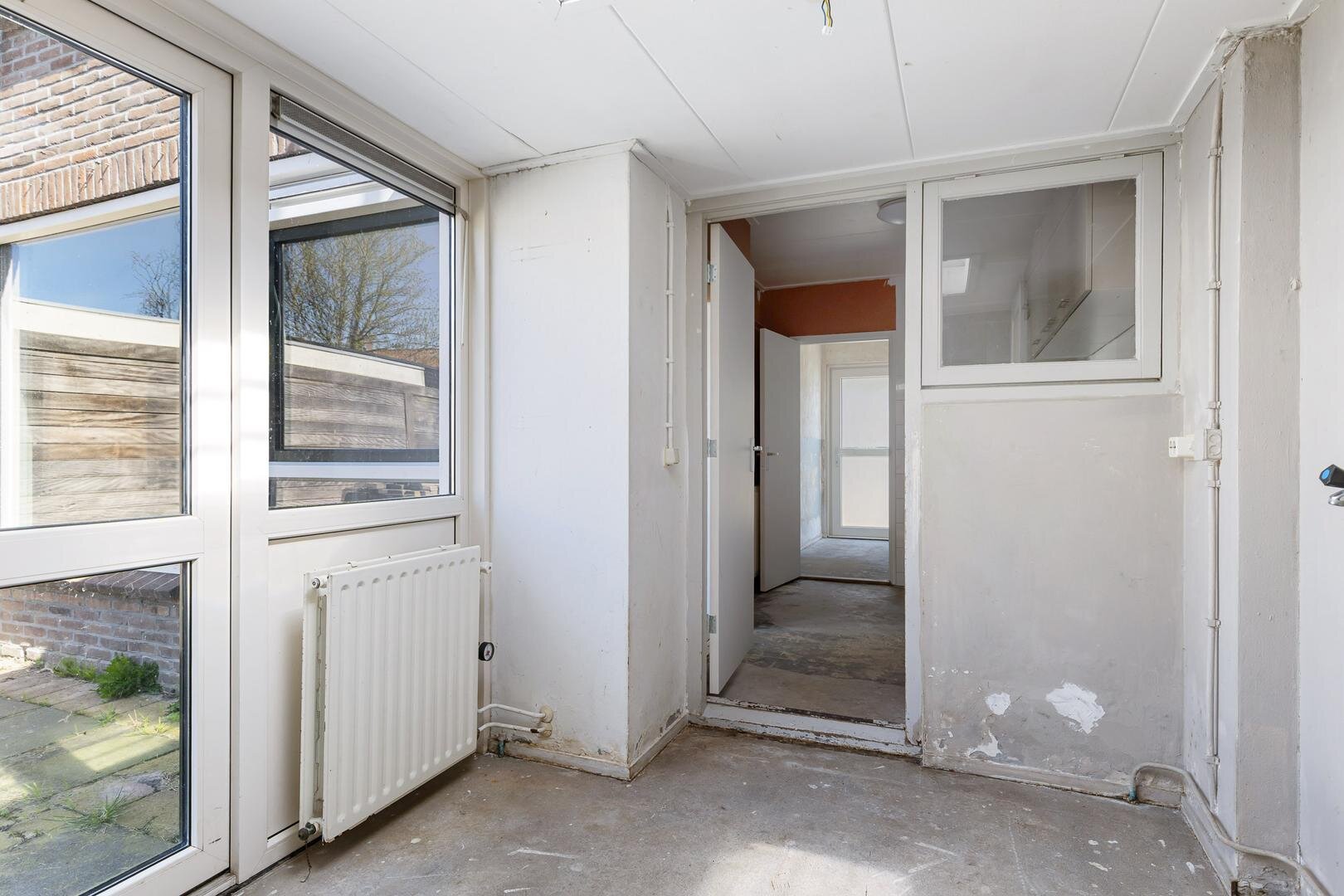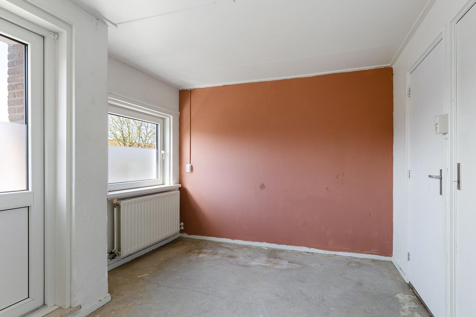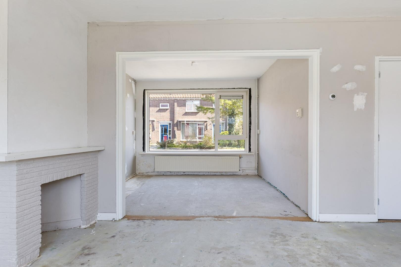 Via de entree kom je in de hal met trapopgang, meterkast en toiletruimte. De woonkamer is ruim en licht en biedt voldoende ruimte voor zowel een comfortabele zithoek als een eethoek.