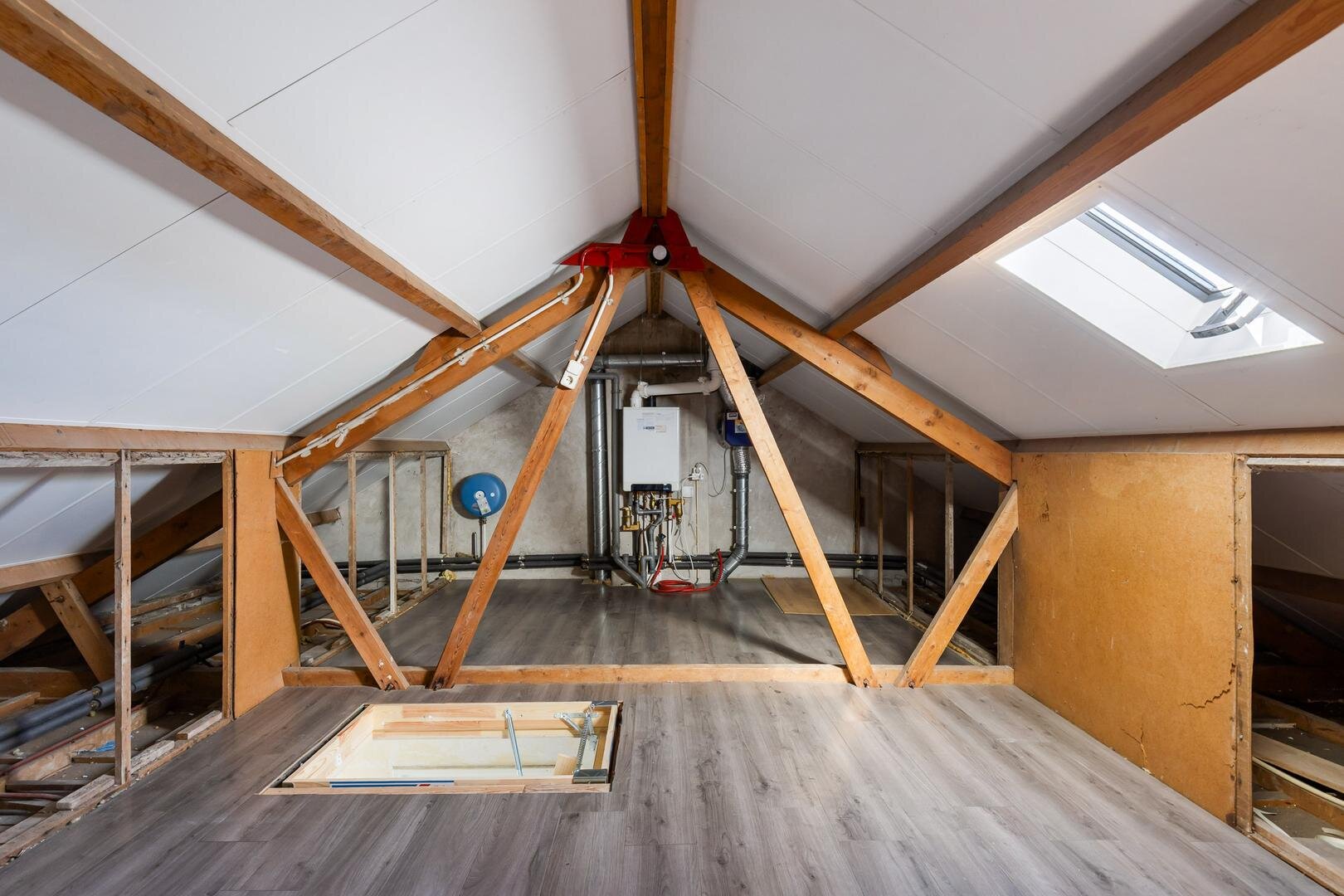 Via een vlizotrap is de vliering bereikbaar. Deze biedt volop extra bergruimte en hier bevinden zich ook installaties.