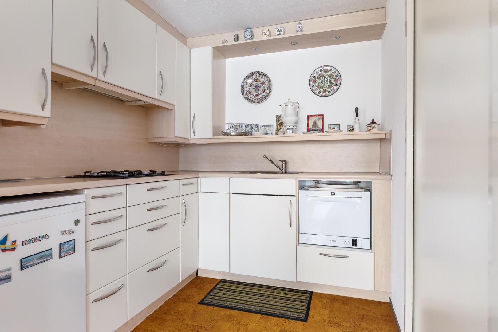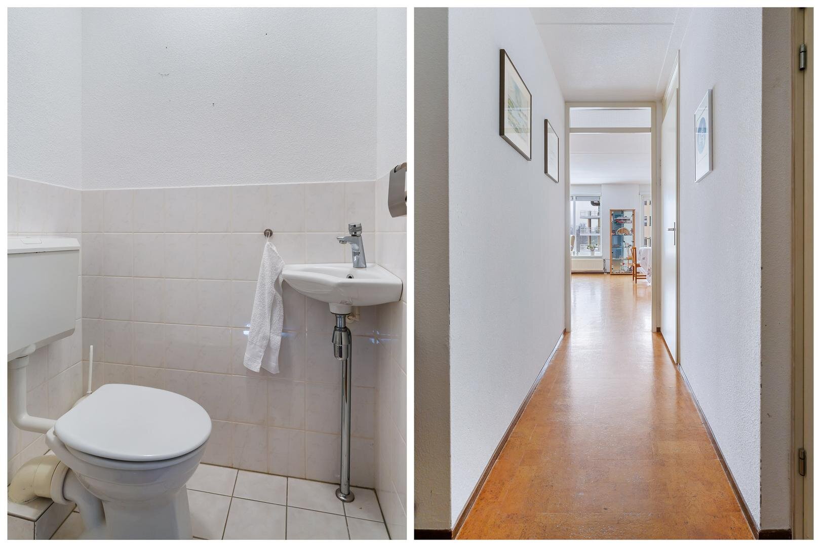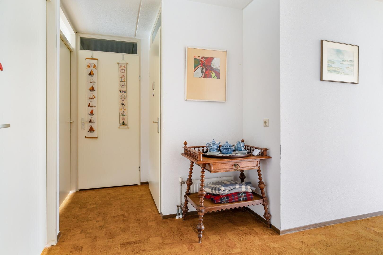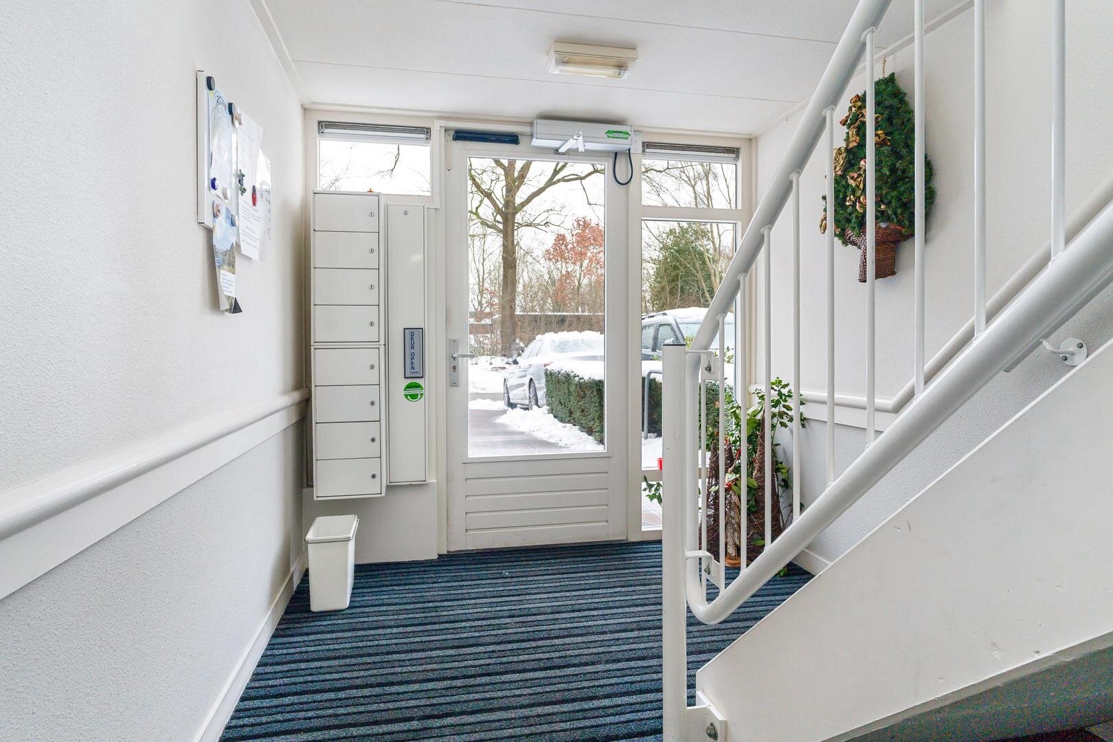 Je komt fijn binnen in een ruime hal met toegang tot praktische bergruimte onder de trap. Op deze woonlaag bevinden zich een slaapkamer en werk- of 2e slaapkamer, een toilet en de badkamer met douche en wastafel. De woonkamer is ruim opgezet en door de grote raampartijen heb je prachtig uitzicht. De keuken is uitgerust met koken op gas en een vaatwasser uit 2023. De interne berging is voorzien van aansluitingen voor witgoed en is handig voor het opbergen van spullen. Buiten heb je de beschikking over een overdekt balkon op het zuidwesten van bijna 9 m², waar je in alle privacy kunt ontspannen en uitkijkt over het groen en het water – een plek die elk seizoen aantrekkelijk is.