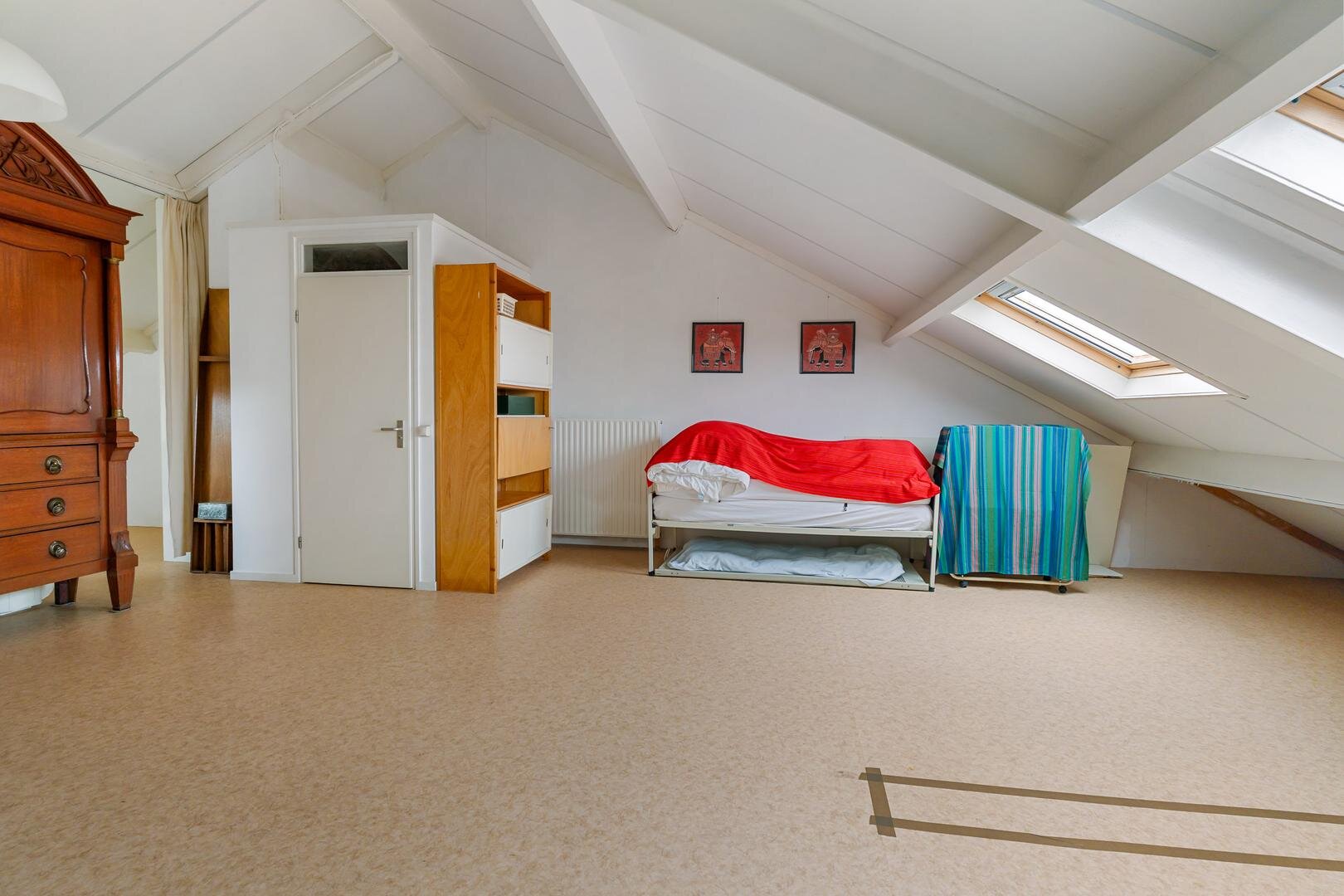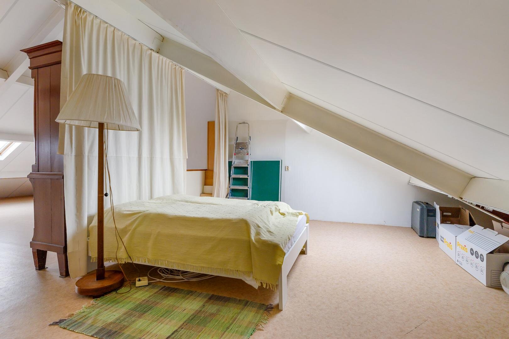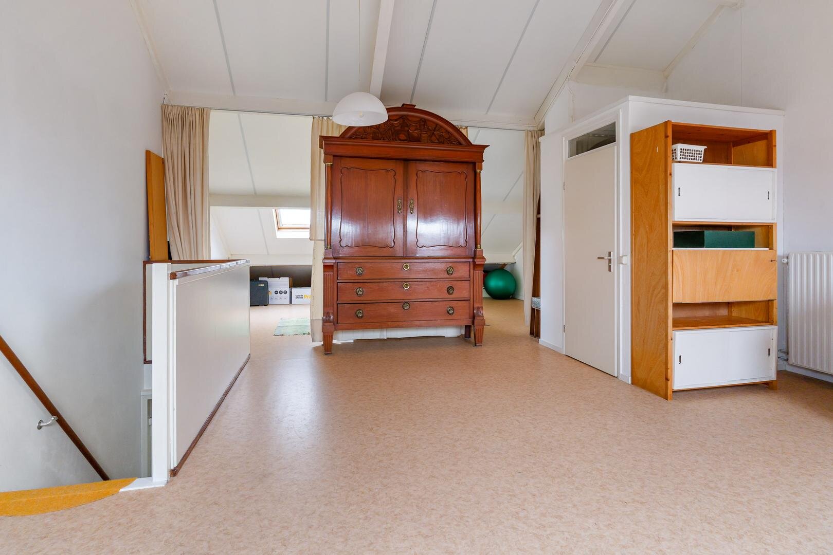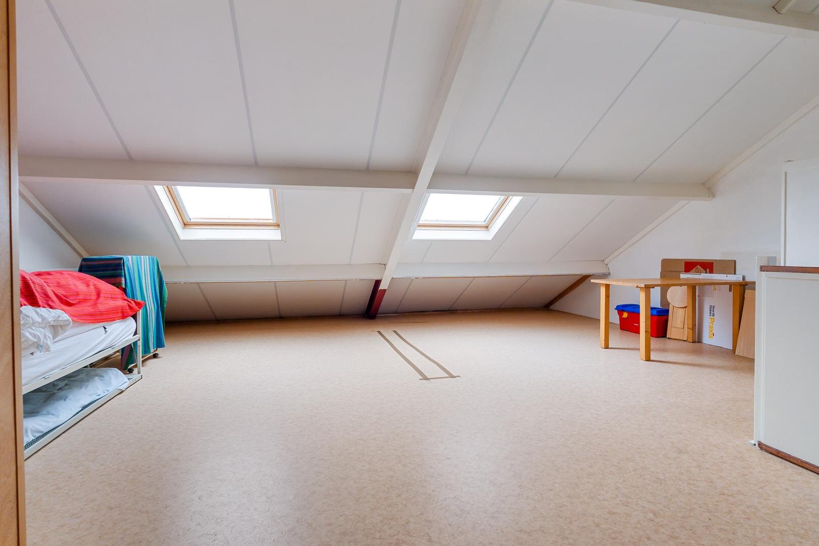 Via de trap bereik je de verdieping met een zeer royale open ruimte, perfect als extra woonkamer, werkplek of hobbyruimte. Daarnaast is hier een tweede toilet met wastafel aanwezig, wat het comfort compleet maakt.