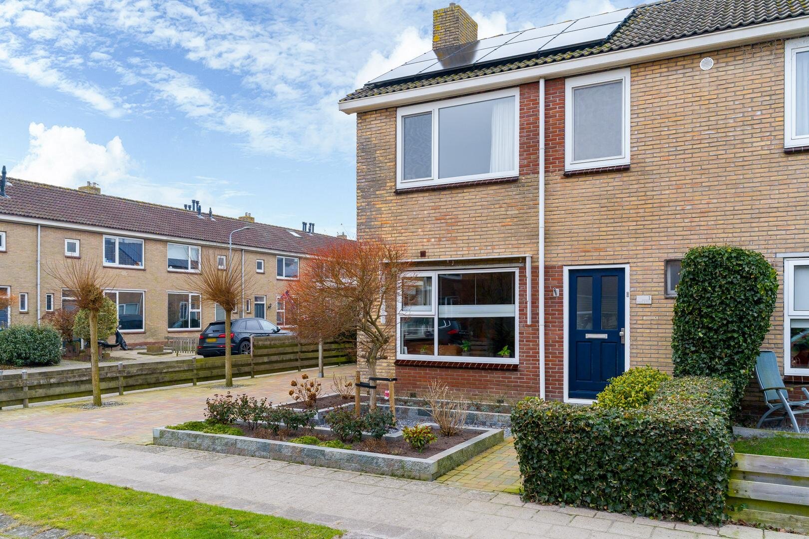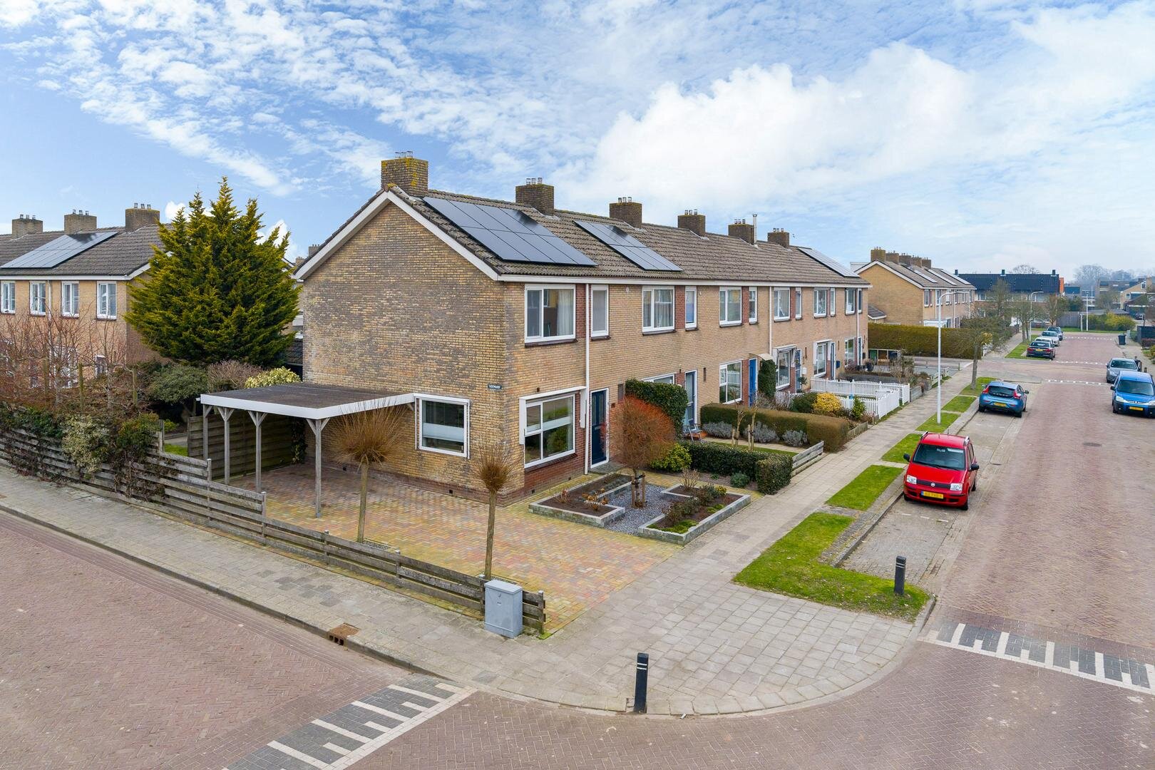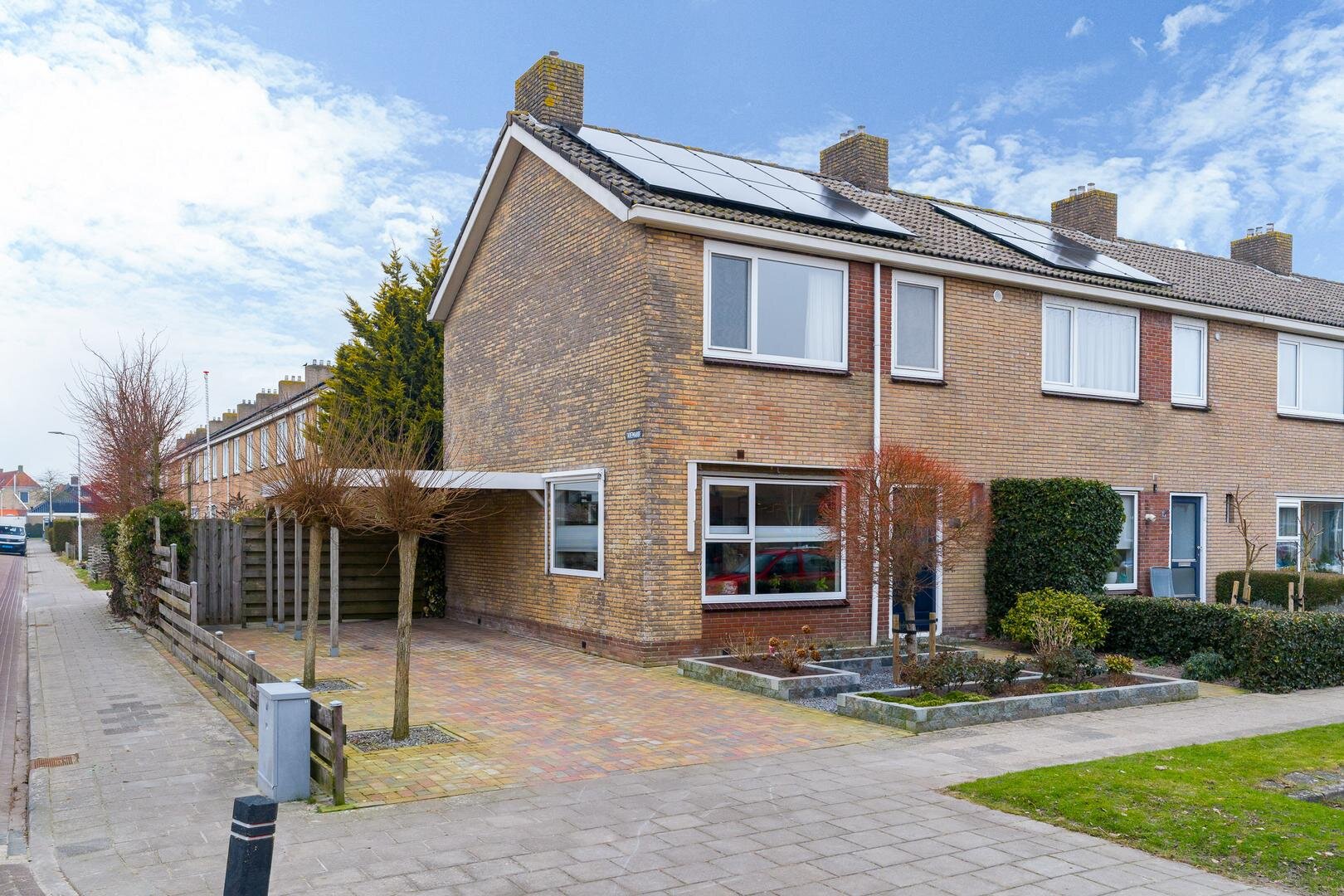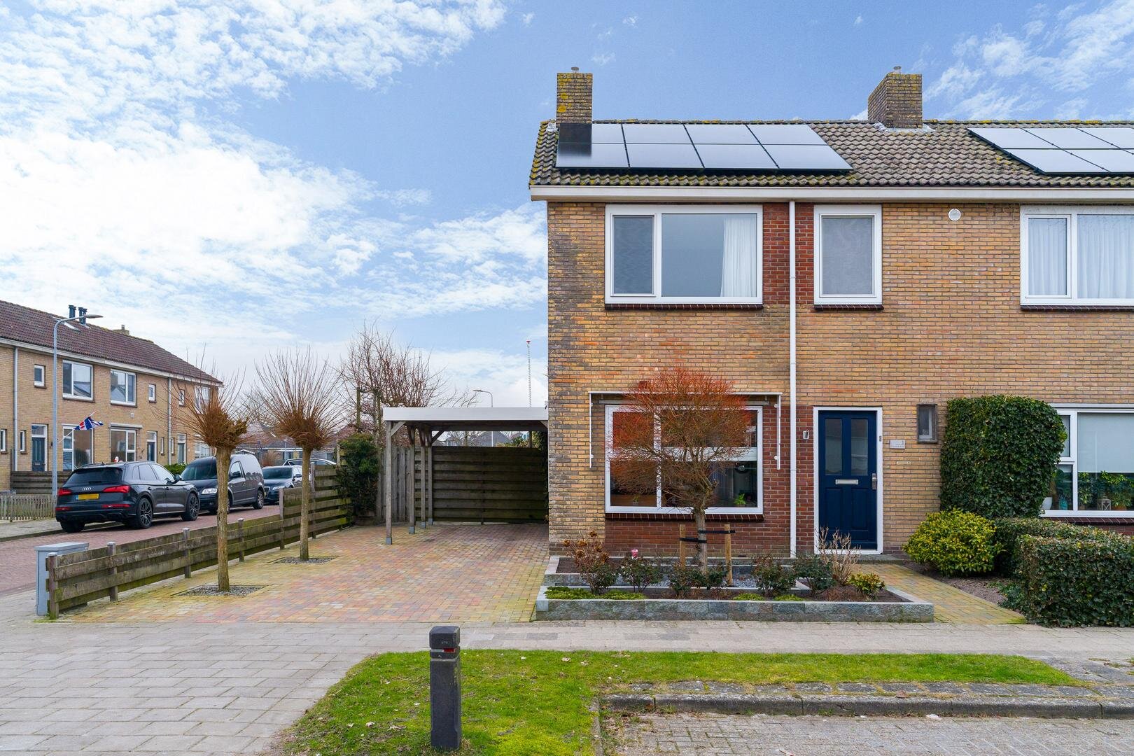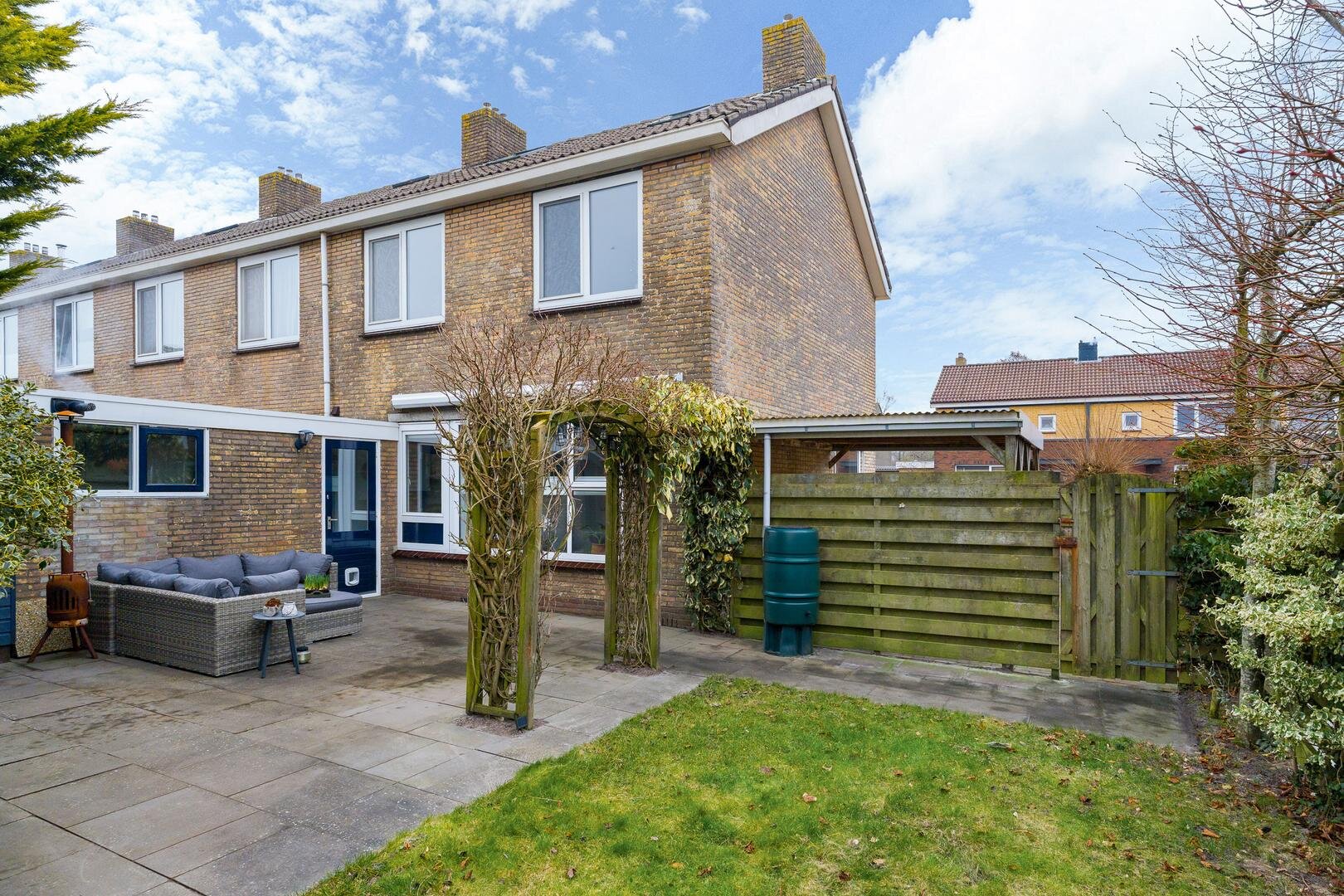 De oprit is recent opnieuw bestraat en voorzien van een carport. In de tuin staat een vrijstaand tuinschuurtje, ideaal voor fietsen of gereedschap. De combinatie van tuin, carport en oprit maakt het geheel praktisch en prettig in gebruik.