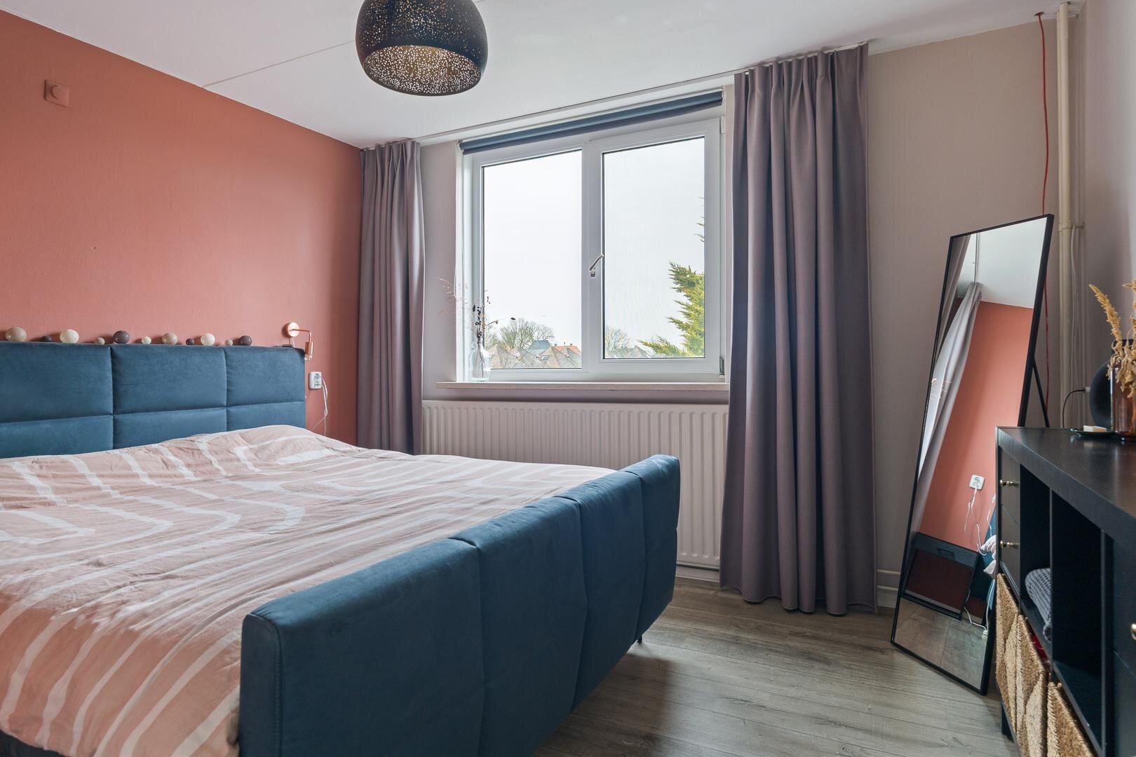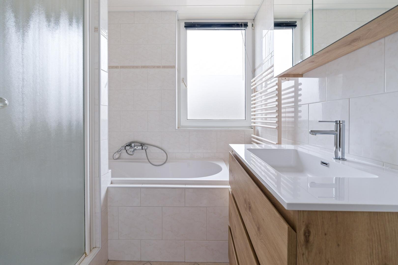 Op deze verdieping bevinden zich drie slaapkamers van goed formaat. Boven zijn overal horren geplaatst, dit zorgt voor extra comfort in de zomermaanden. De badkamer is functioneel ingericht met een douche, ligbad en wastafelmeubel. Daarnaast is er een royale inloopkast aanwezig, ideaal als extra bergruimte of om naar wens opnieuw in te delen.
