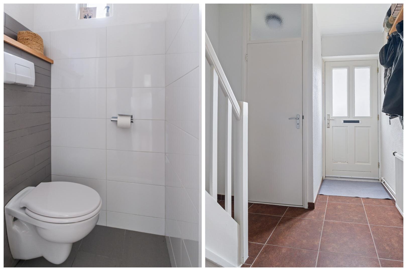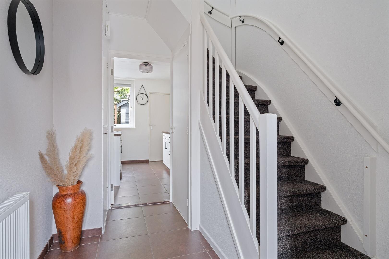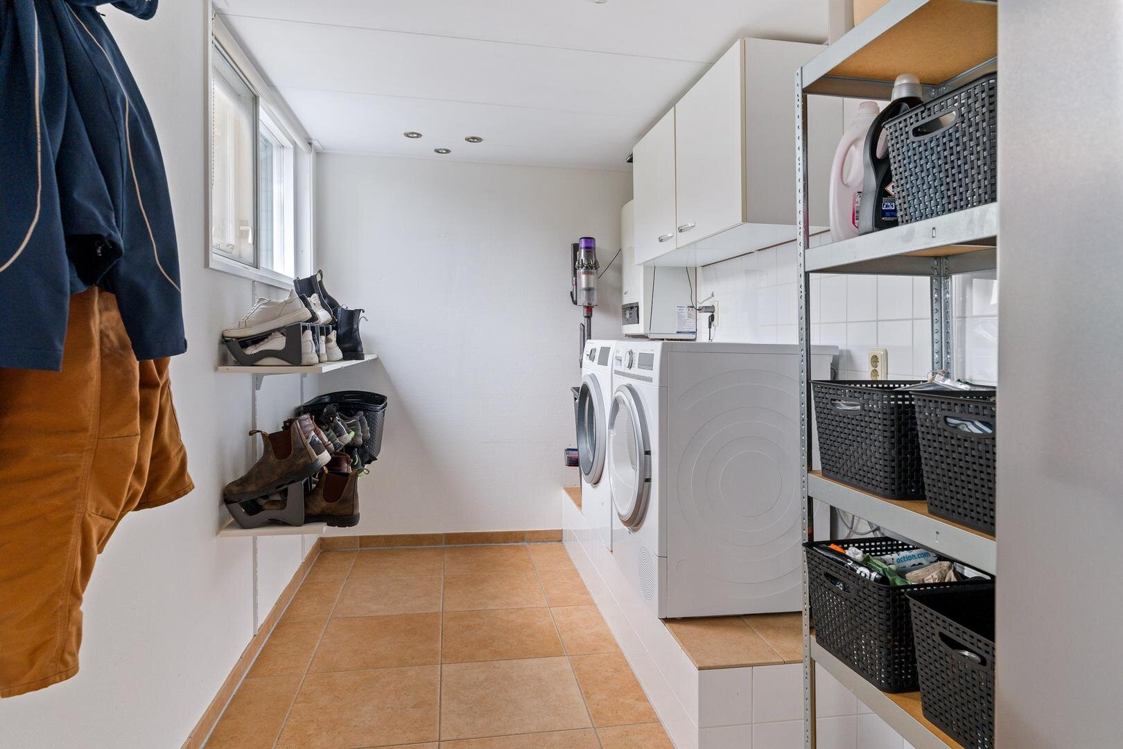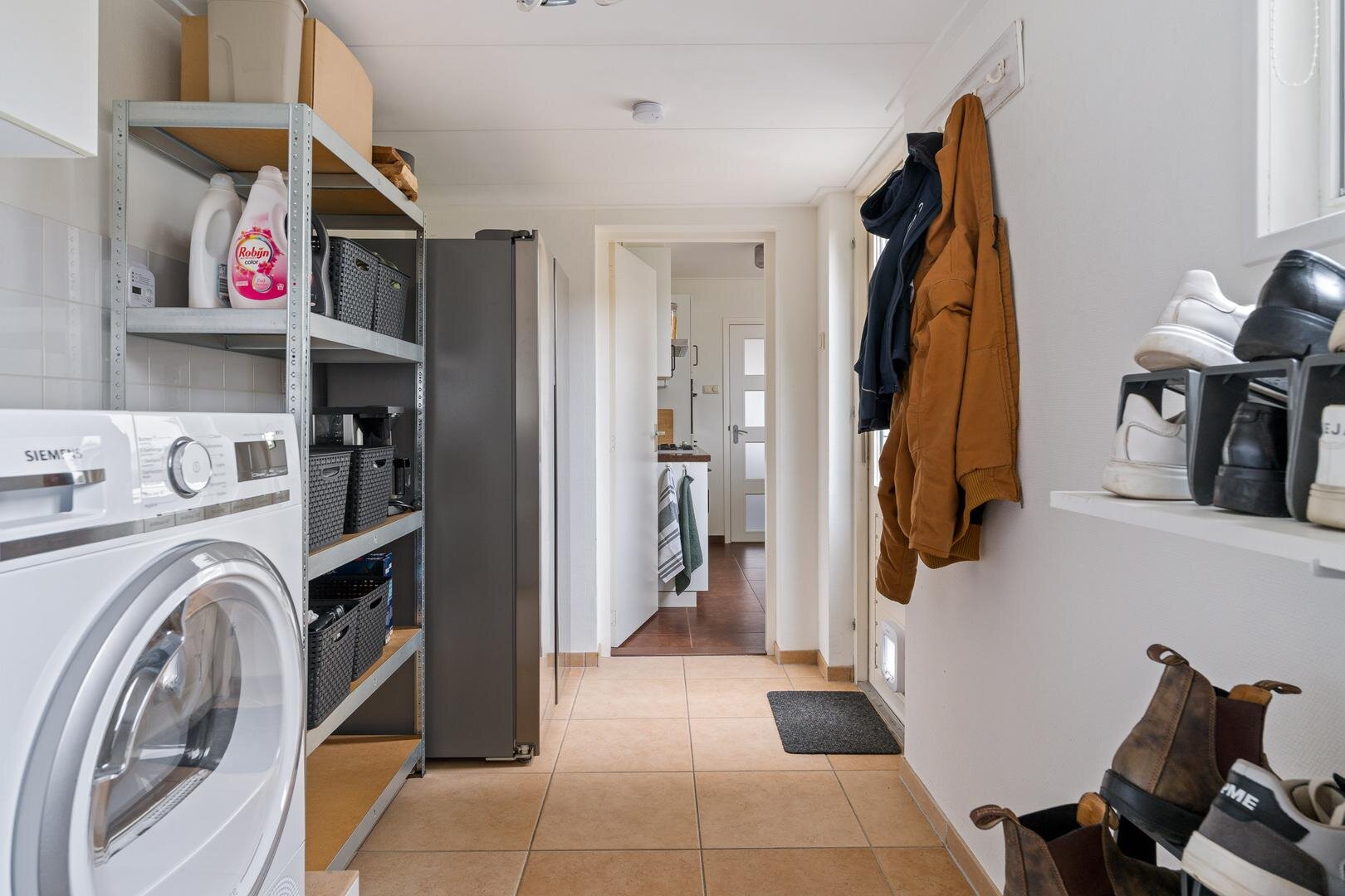 Aansluitend bevindt zich de bijkeuken. Een praktische ruimte met witgoedaansluitingen op hoogte opstelling van de cv-ketel. Vanuit de bijkeuken is er directe toegang tot de achtertuin.