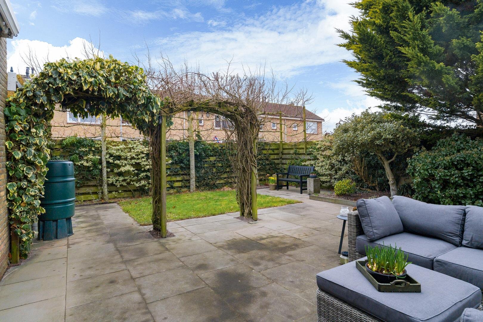 Zowel aan de voor- als achterzijde beschik je over tuin. De achtertuin ligt op het noordwesten en biedt veel privacy. Dankzij de gunstige afmetingen is er altijd wel een plek in de zon of juist in de schaduw te vinden.