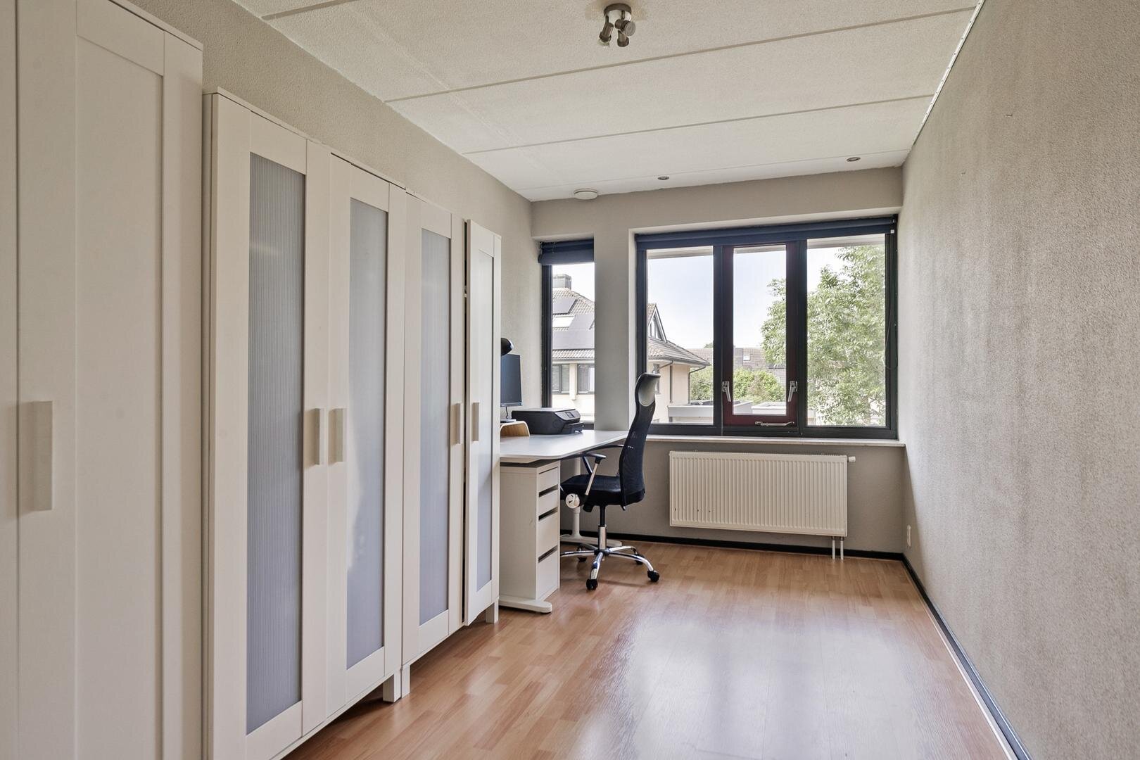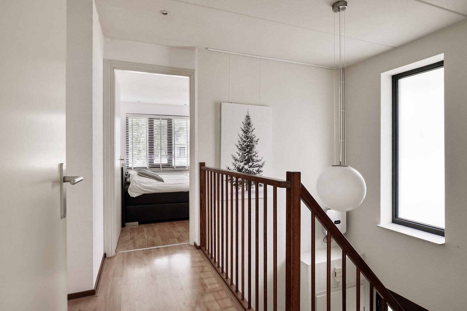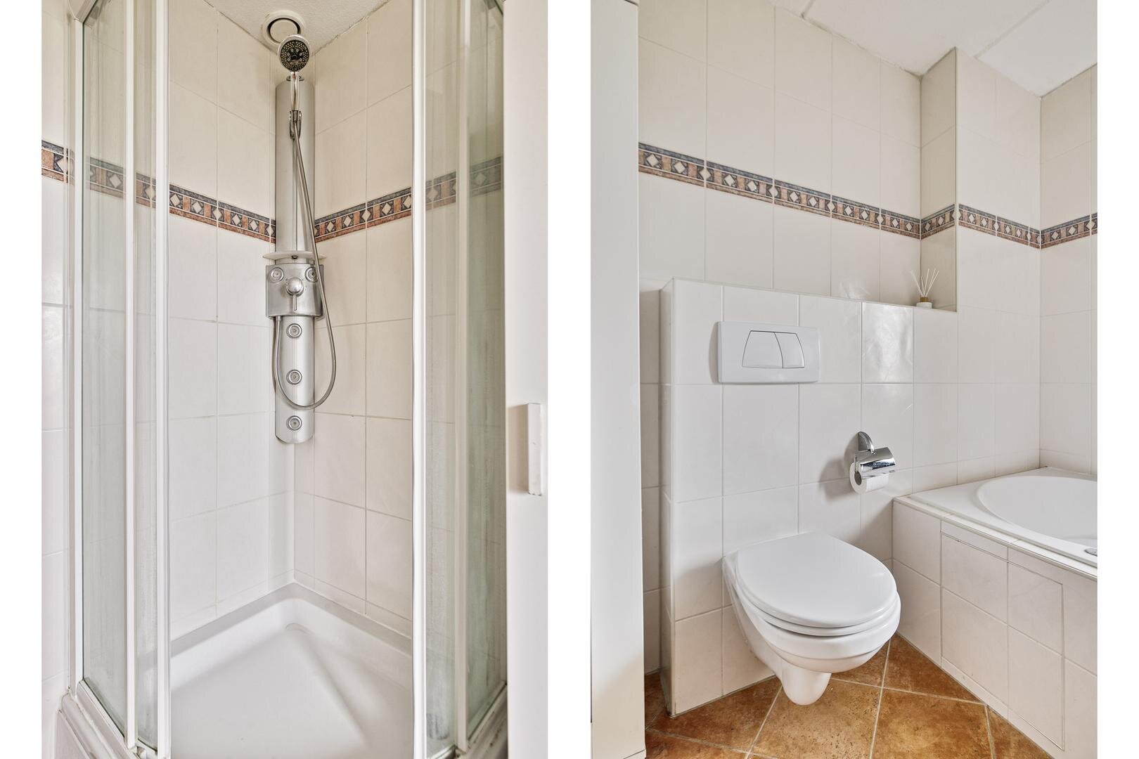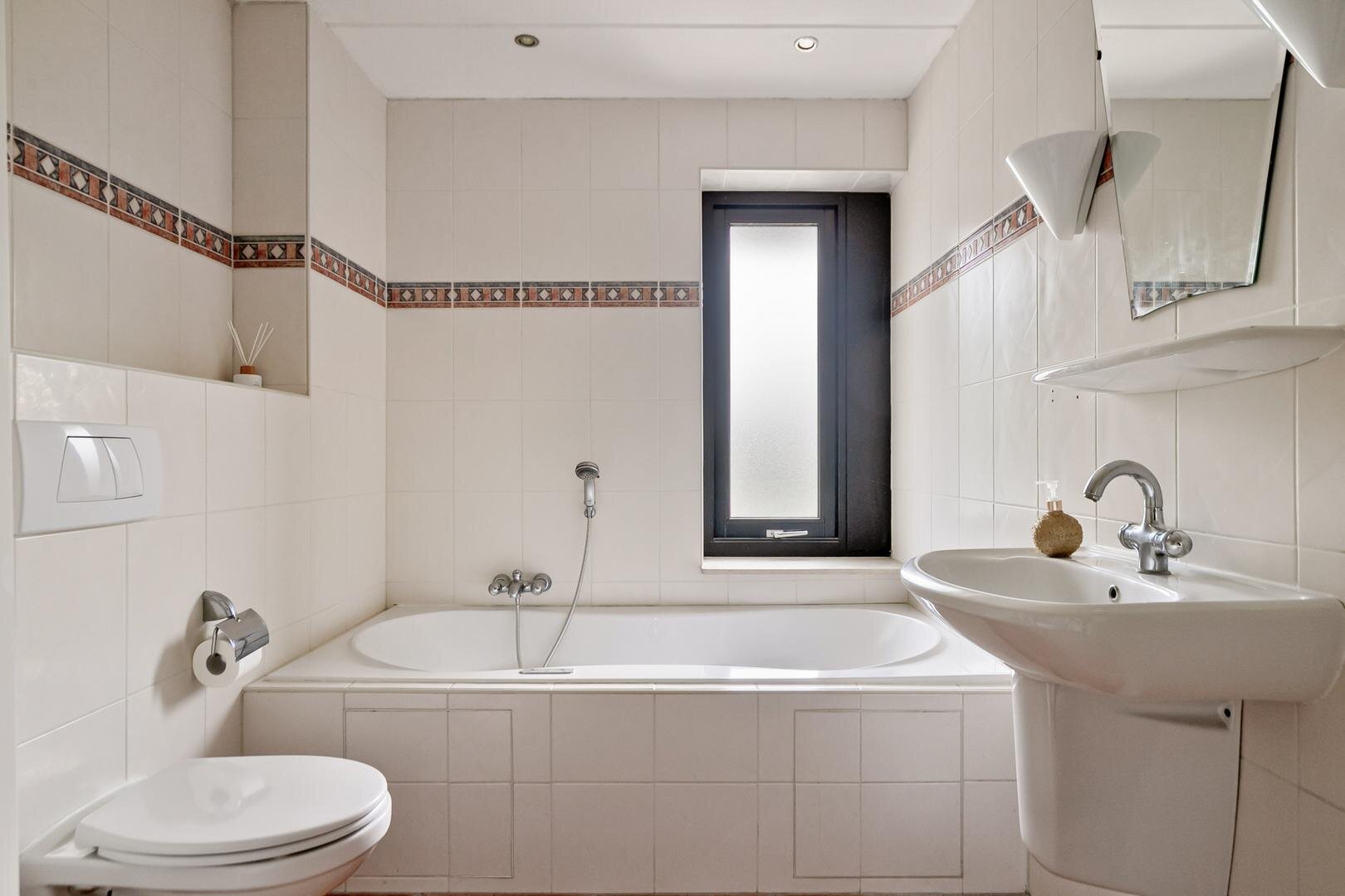 Via de vaste trap kom je op de overloop van de eerste verdieping. Hier vind je drie ruime slaapkamers. De master bedroom bevindt zich aan de achterzijde. Daarnaast vind je de keurige badkamer met een ligbad, aparte douchecabine, wastafelmeubel en het tweede toilet. Doordat de hele eerste verdieping recht opgetrokken is, zit er veel inhoud in alle vertrekken.