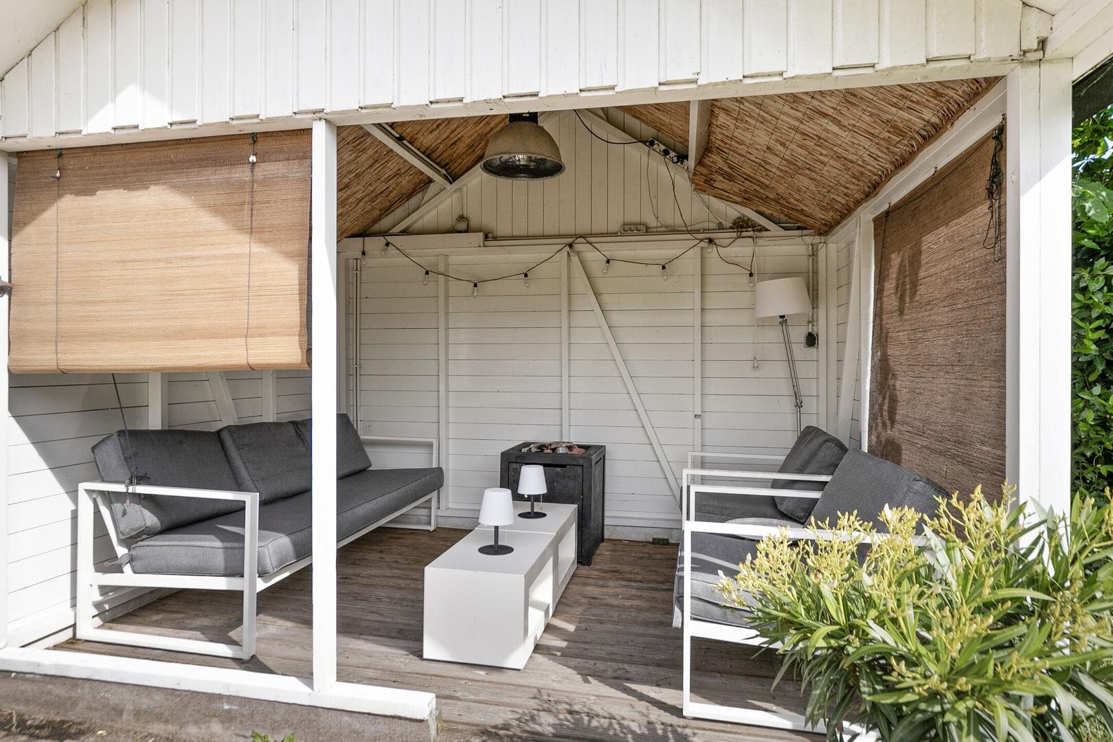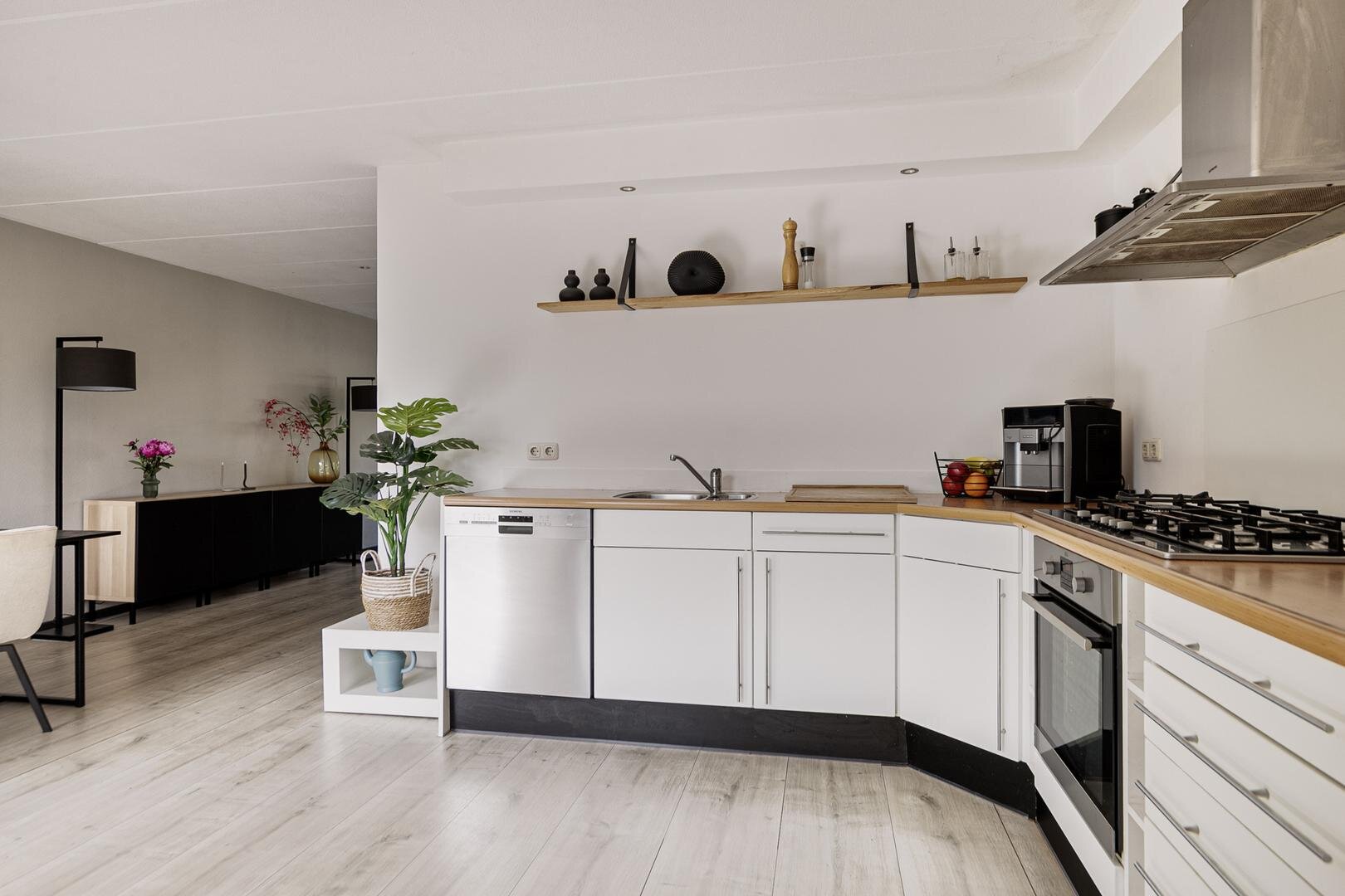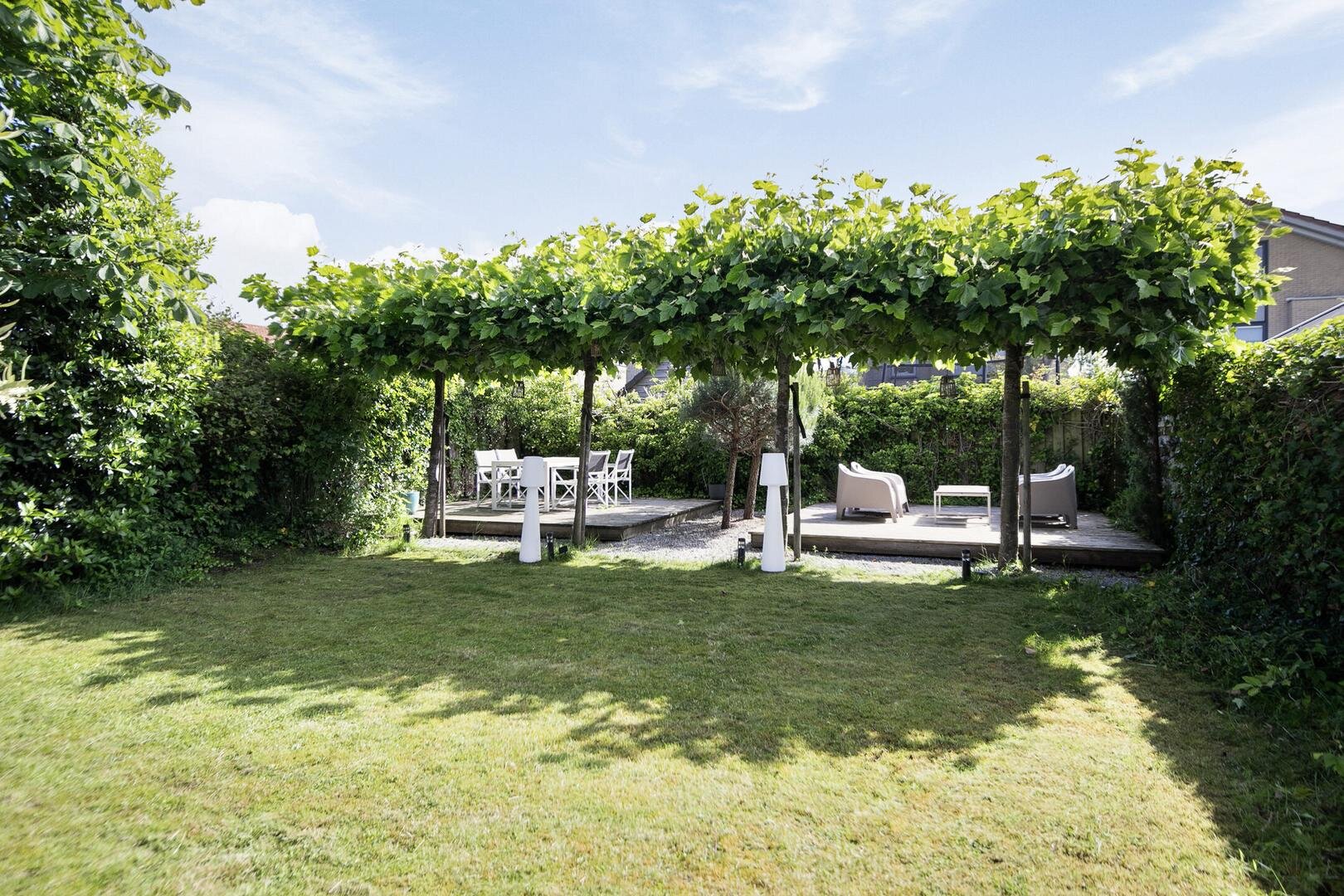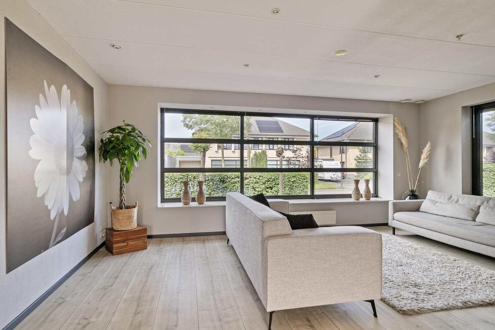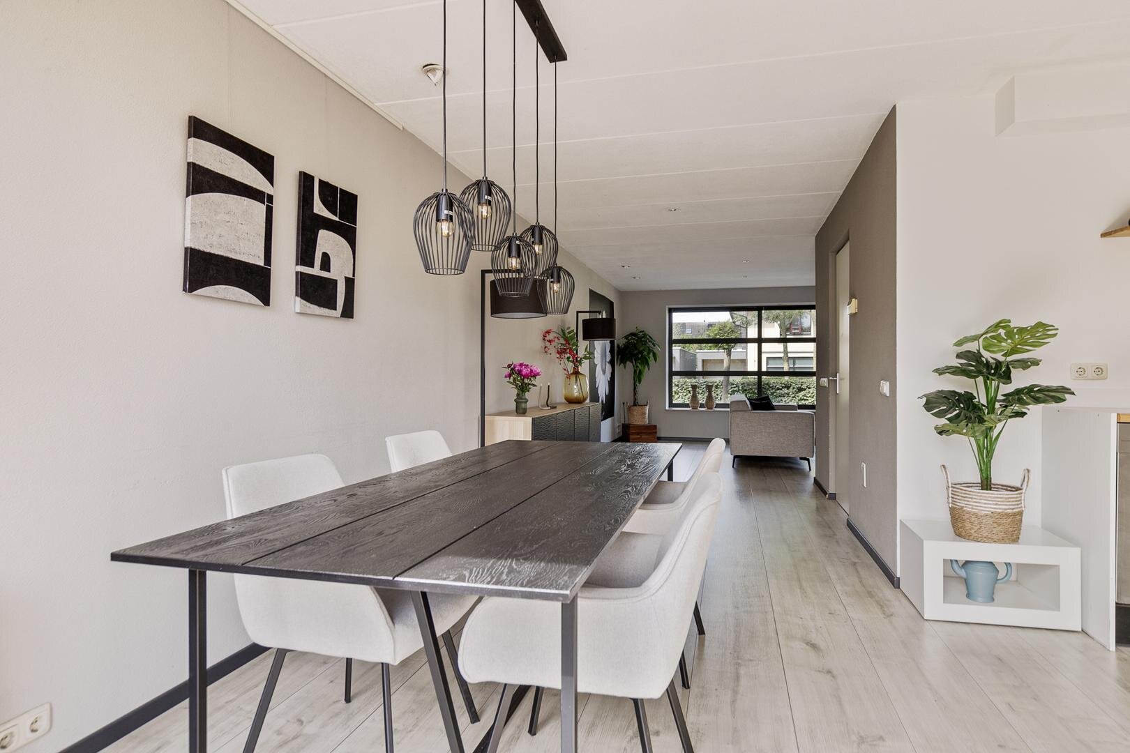 Je komt binnen in de ruime hal met vide. Hier bevindt zich een garderobe, meterkast en het eerste toilet. De woonkamer heeft door de hoge raampartijen een prachtige lichtinval en is voorzien van een lichte hardhouten vloer. De open keuken is voorzien van de nodige inbouwapparatuur zoals een vaatwasser, combi-oven, 5-pits gasfornuis, afzuigkap en koelkast. Via de aangrenzende bijkeuken is er een directe toegang tot de garage en ook tot de tuin. De openslaande deuren in de woonkamer zorgen voor een prachtige verbinding met de tuin. De prachtig aangelegde tuin heeft meerdere zitjes en zo is er op ieder moment van de dag wel een plekje in de zon of in de schaduw te vinden. In de tuin staat mooie overkapping waar het zomerdag heerlijk toeven is. Parkeergelegenheid is er te over op de oprit maar ook in de inpandige garage kun je de auto kwijt.