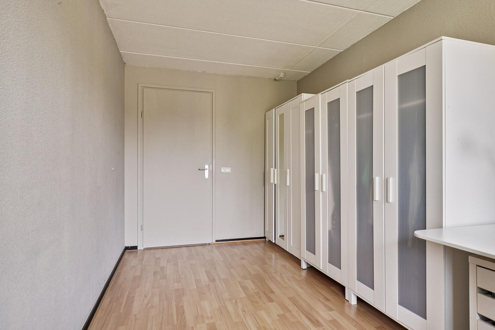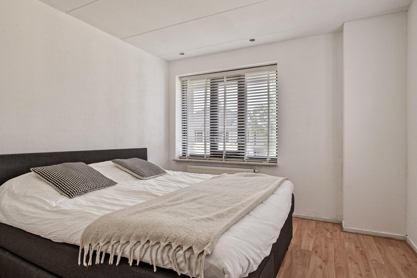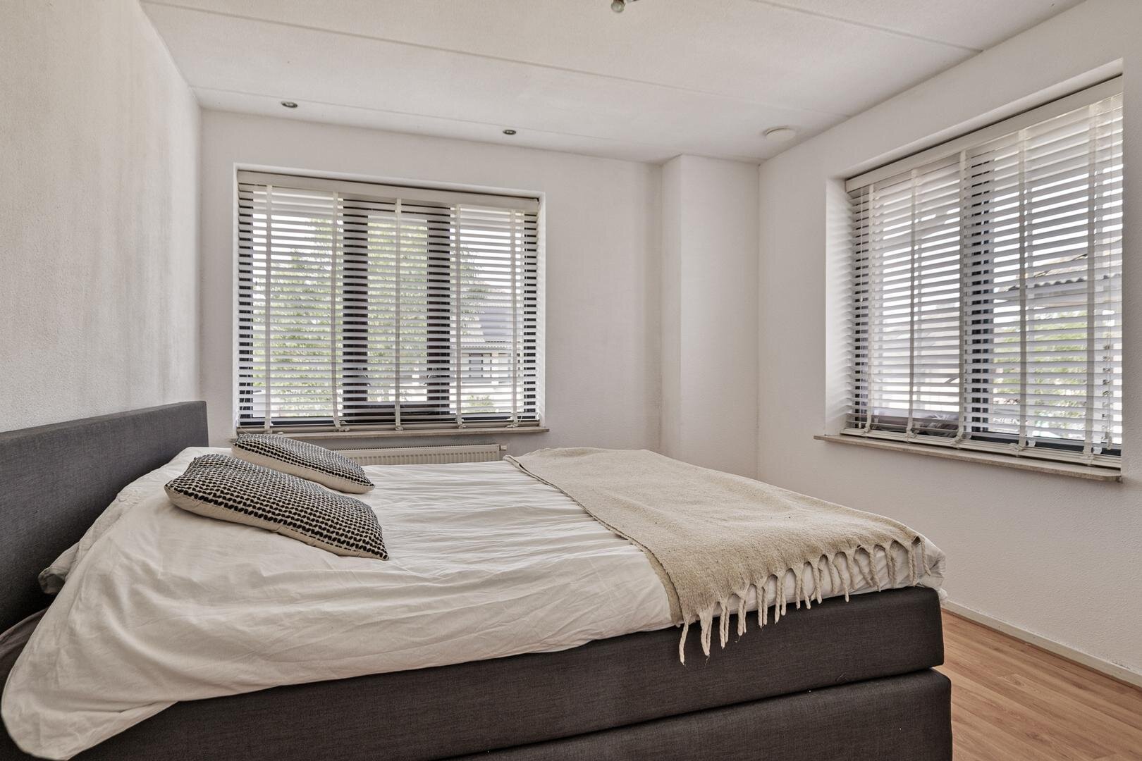 Via weer een vaste trap bereik je de tweede verdieping. Dit is een enorme ruimte die nu als slaapkamer in gebruik is. Met een kleine aanpassing is deze ruimte eenvoudig aan te passen naar twee slaapkamers. De grote raampartijen in de dakkapel zorgen voor een aangename ruimte met een mooie lichtinval.