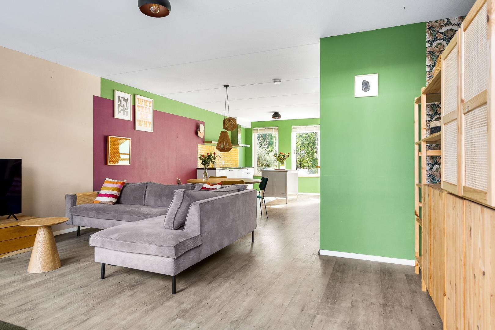 Gezellige en lichte woonkamer met PVC vloer en vloerverwarming