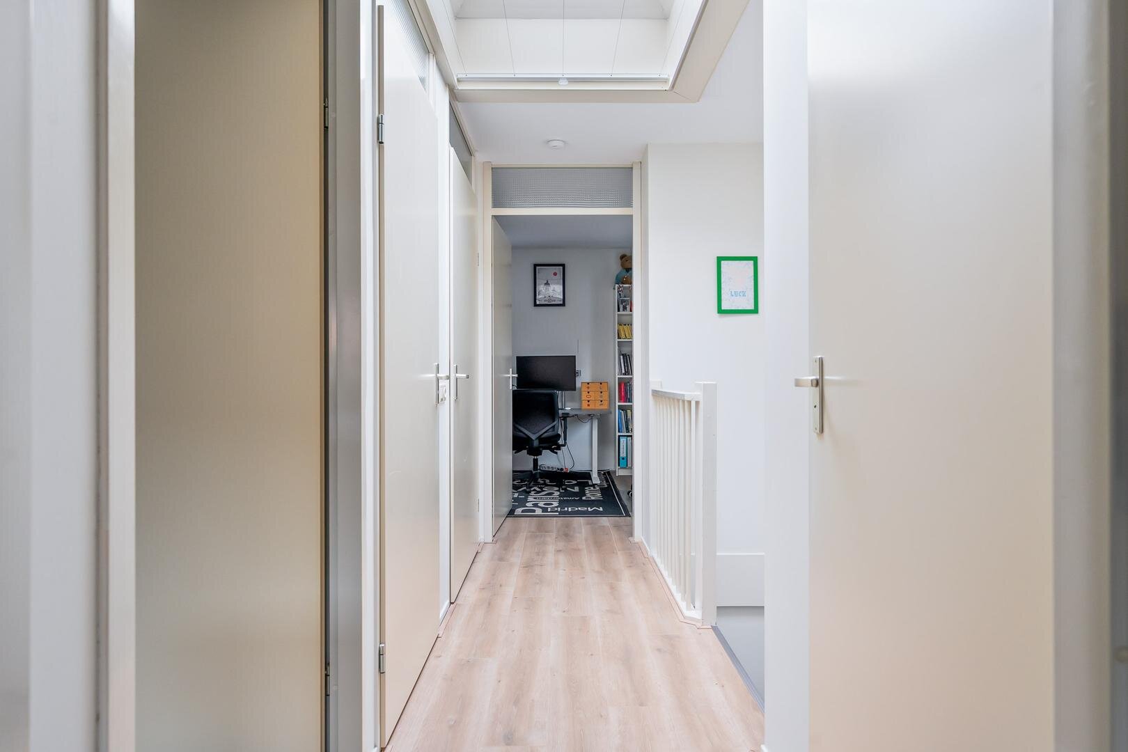 De ruime overloop beschikt over een lichtkoepel die zorgt voor extra daglicht. Hier bevinden zich ook een apart toilet met fonteintje en een praktische kast met de opstelling van de cv-ketel (Remeha, 2020), mechanische ventilatie en wasmachineaansluiting.