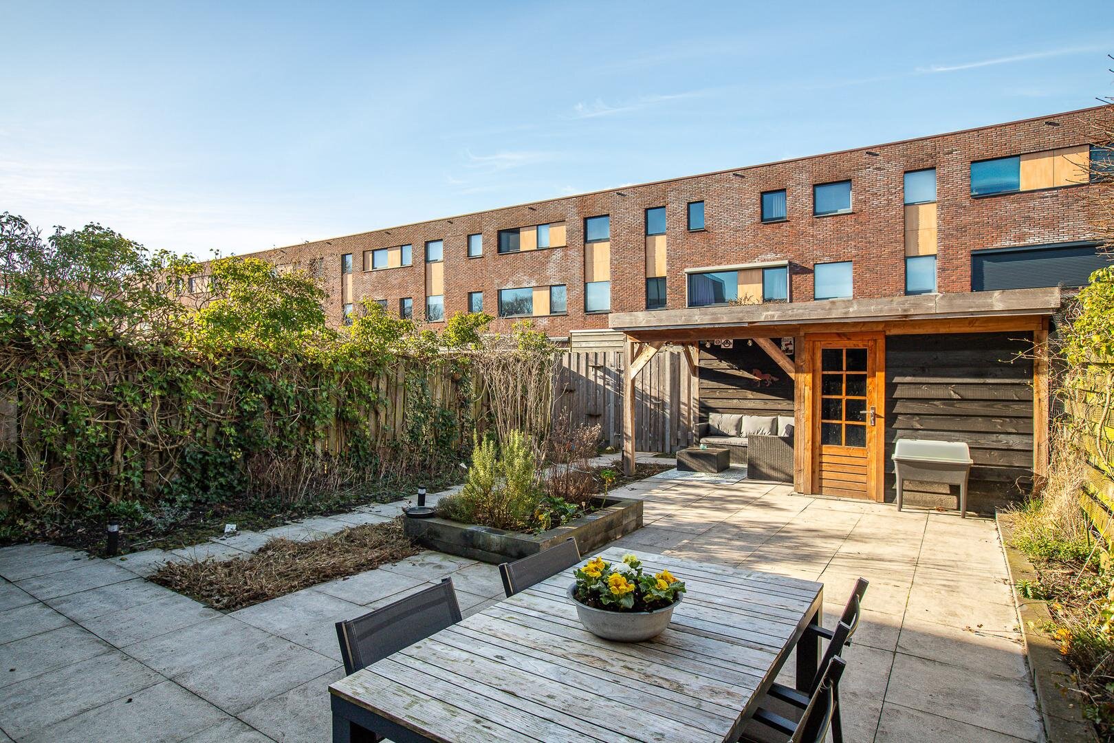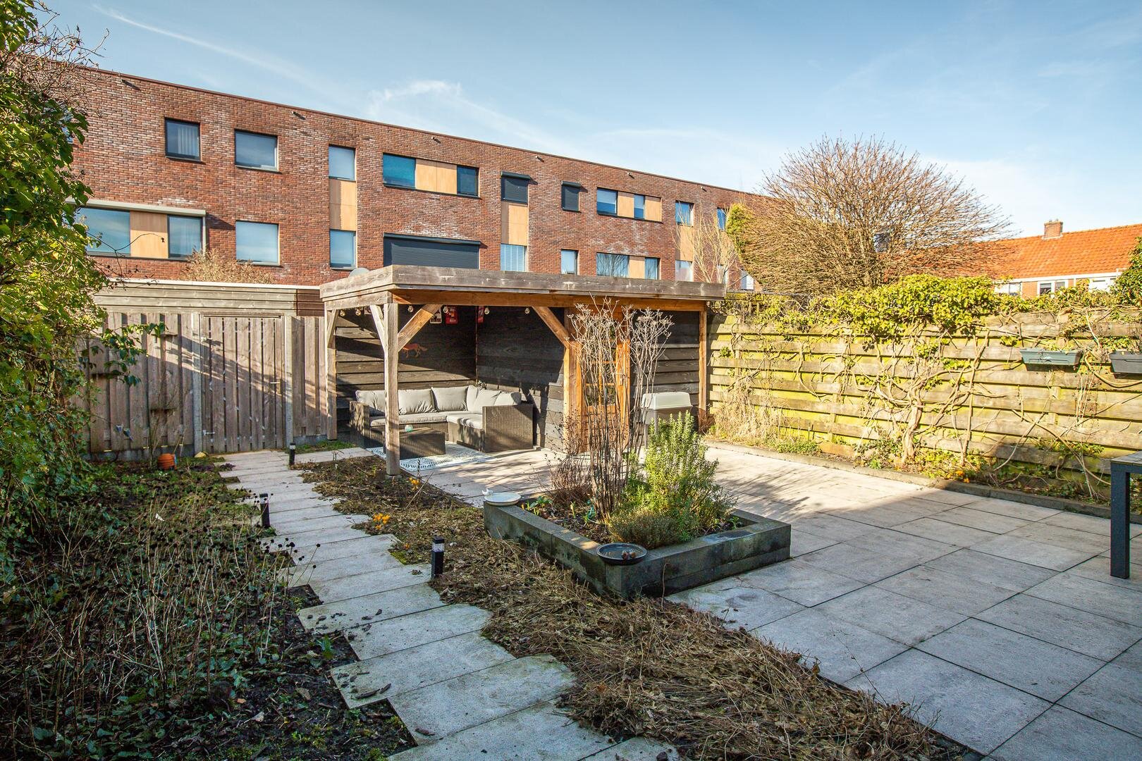 De achtertuin is circa 12 meter diep en 8 meter breed en biedt veel privacy. Dankzij de ligging op het noordwesten kun je hier in de middag en avond heerlijk van de zon genieten. De tuin is recent aangepakt en beschikt over meerdere zitplekken, een overdekt terras en een praktische achterom.