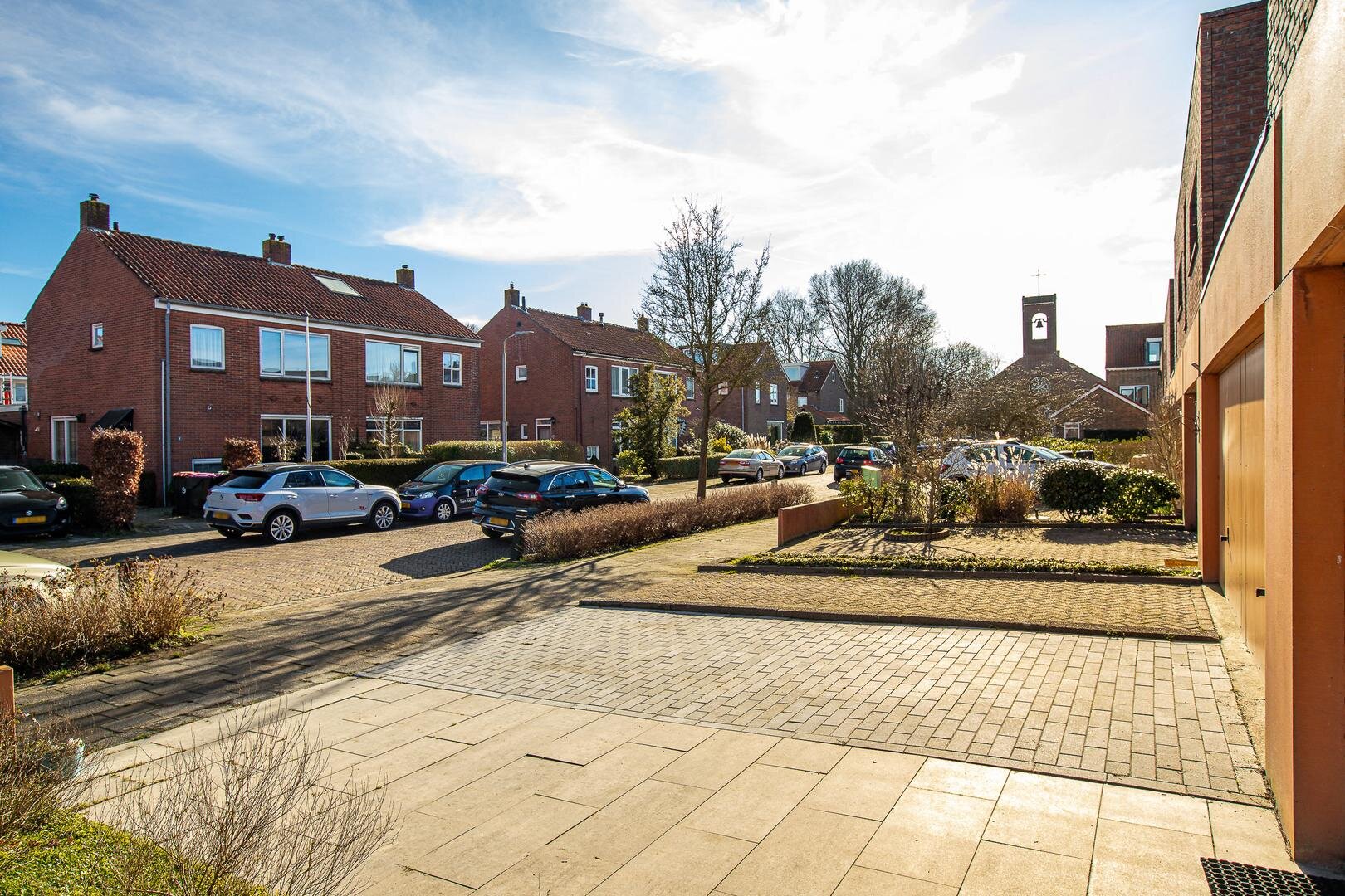 Aan de voorzijde ligt een verzorgde voortuin met oprit waar ruimte is om één of twee auto’s op eigen terrein te parkeren. Daarnaast is er in de straat voldoende openbare parkeergelegenheid.