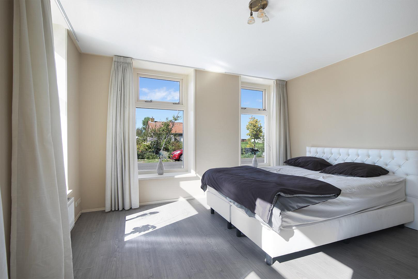 Op de overloop bevinden zich 2 ruime slaapkamers, elk met een deur naar het op het zuiden gelegen platte dak (dakterras). De badkamer op deze verdieping is onlangs gerenoveerd in 2022 en beschikt over een douche, een tweede toilet en een wastafelmeubel.
